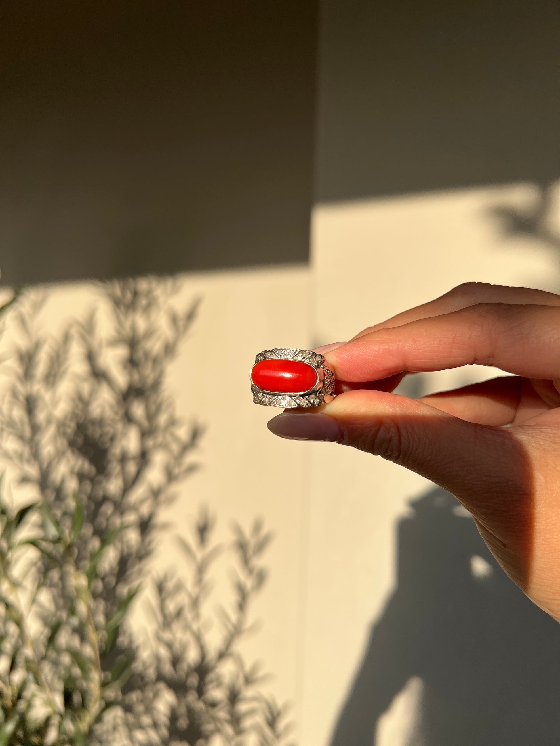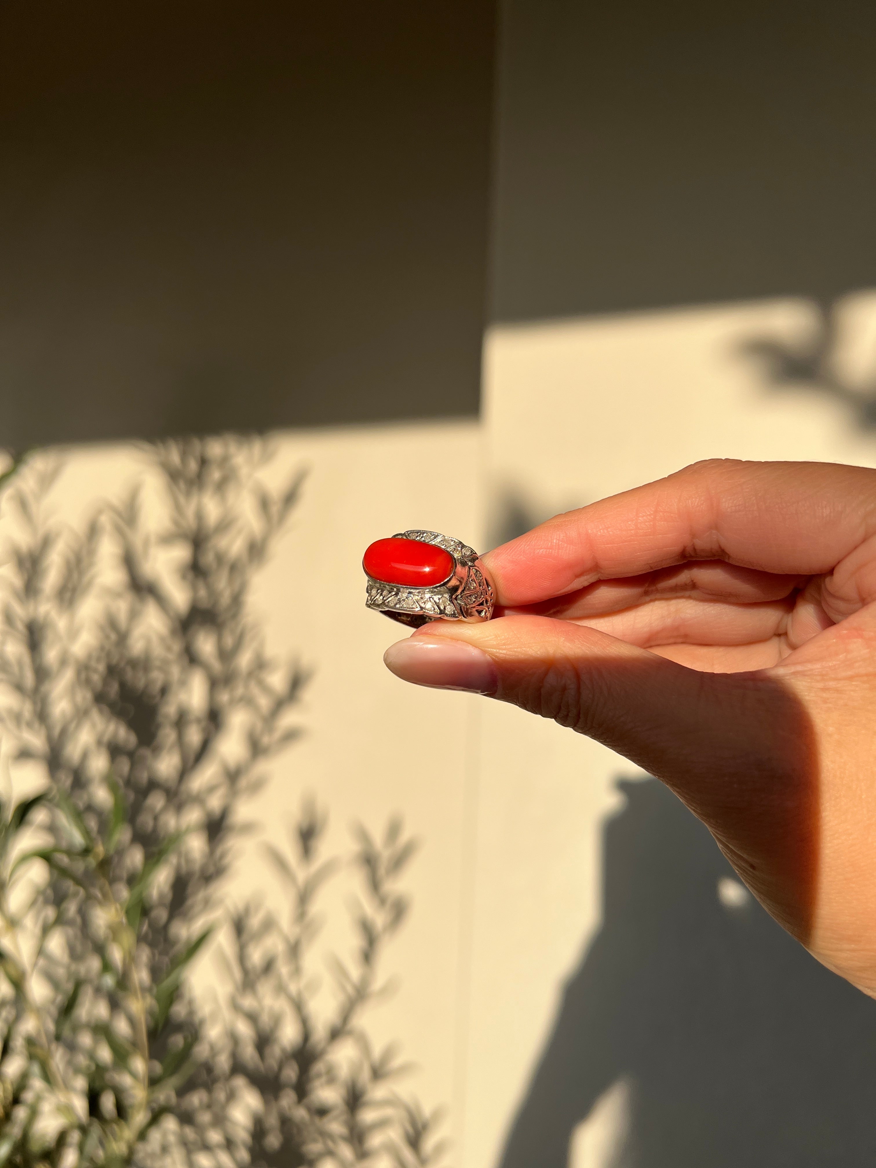 - Stone weight: coral-2.4 g diamond- 0.8ct total