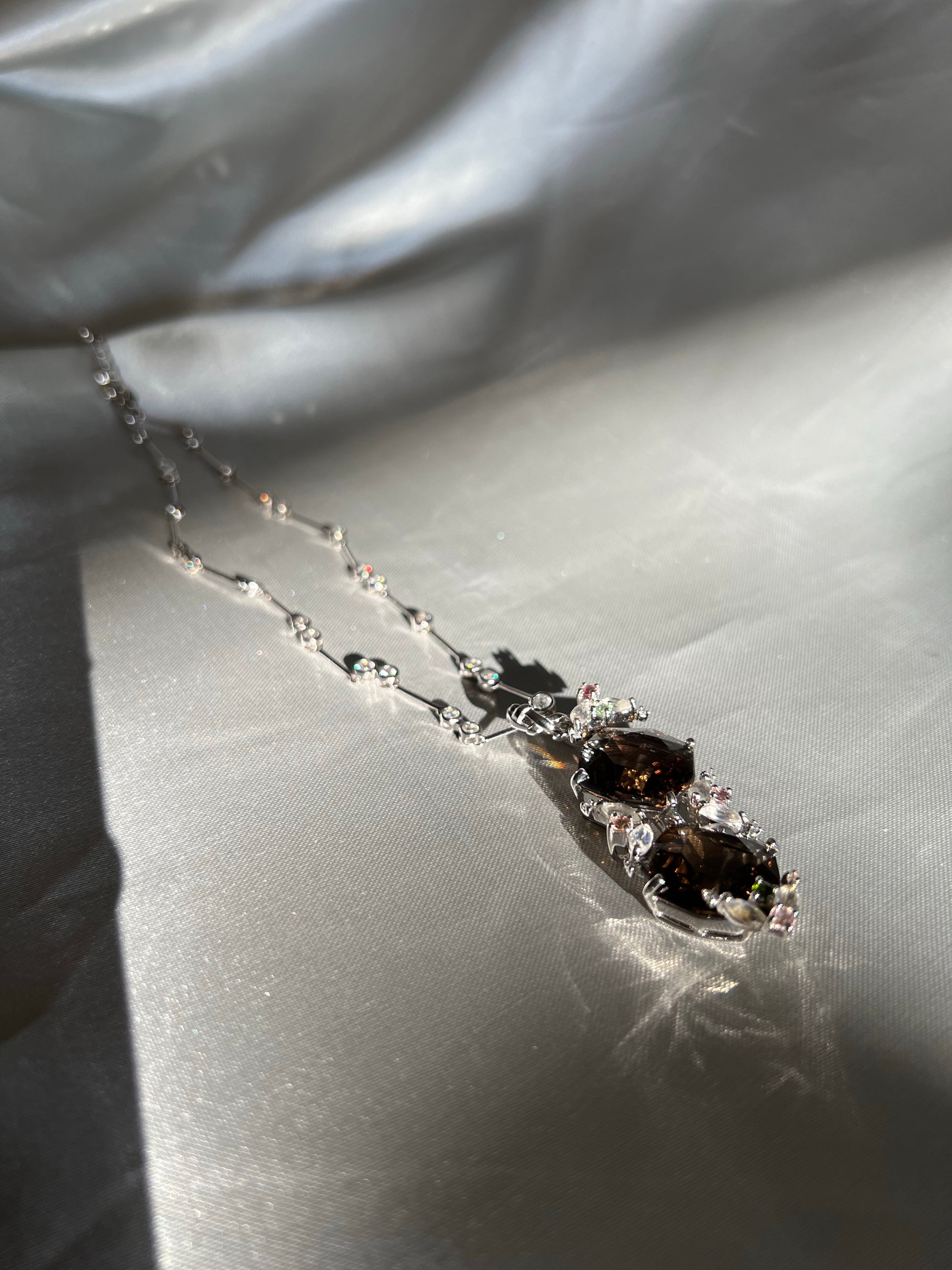 Kaleidoscope Smoky Quartz & Moonstone Pendant Necklace