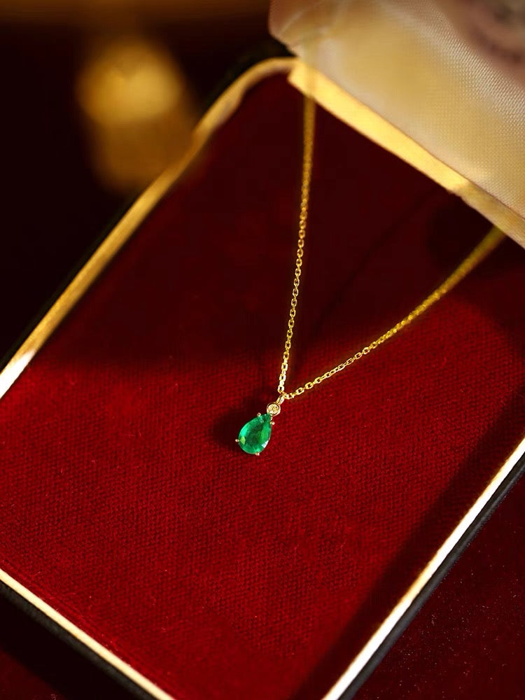 Little Jardin Natural Emerald Drop 18k Gold Pendant Necklace