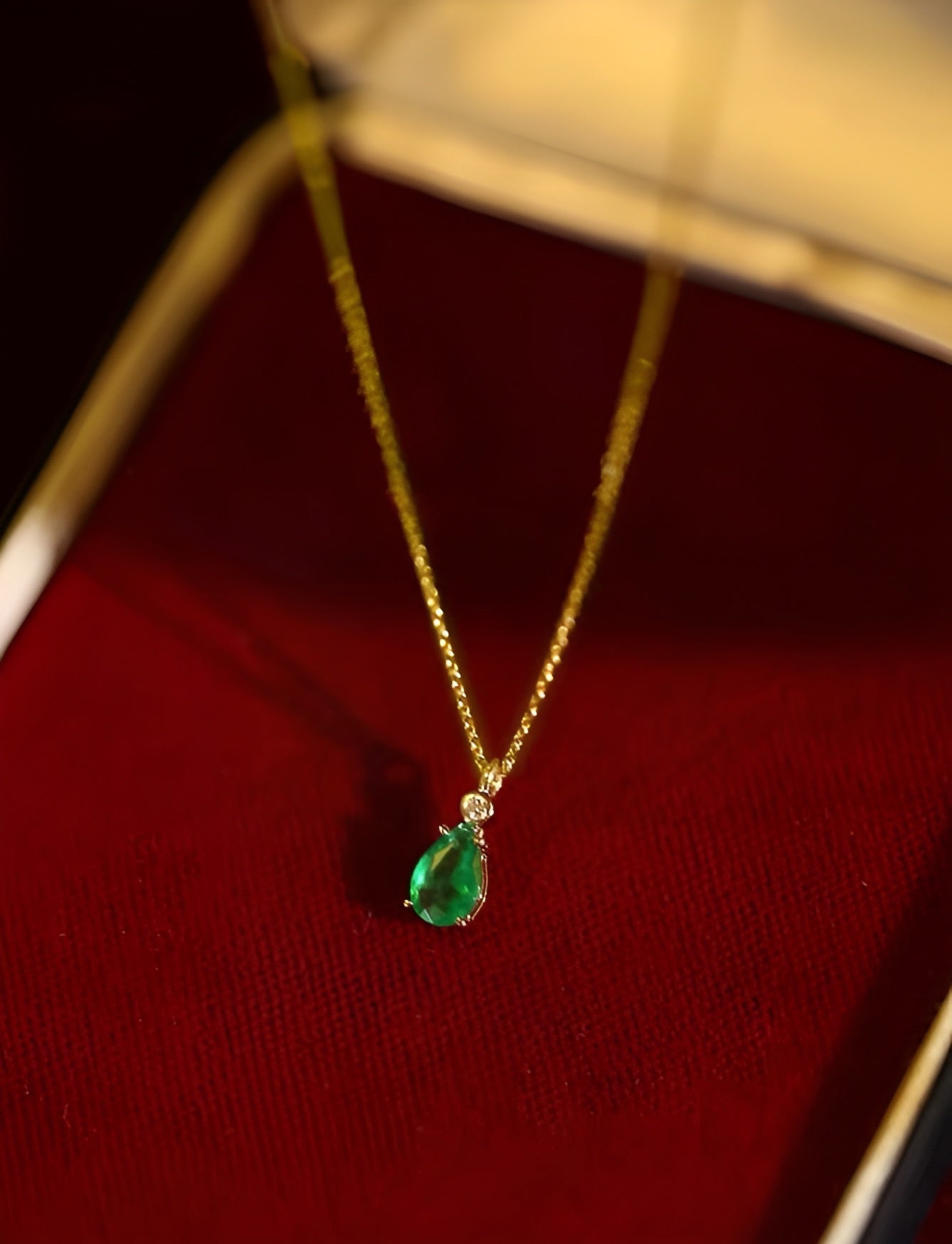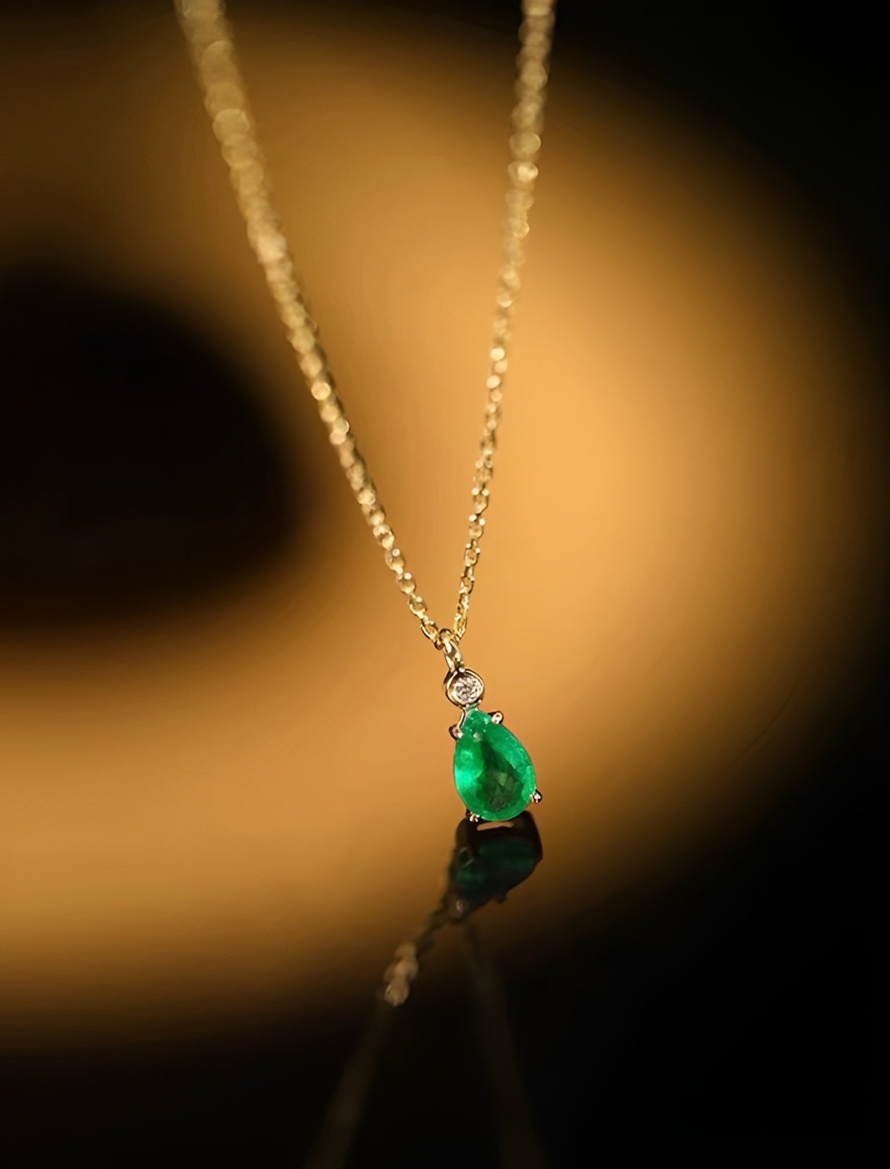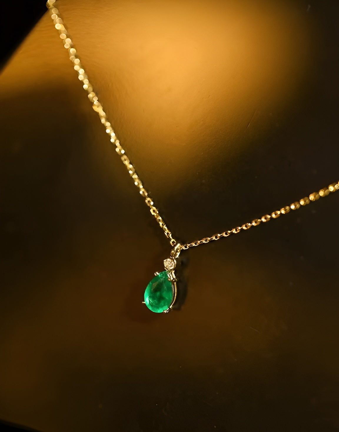 Radiant embodiment of sophistication. Meticulously crafted in solid 18k yellow gold, this necklace features a captivating natural emerald, gracefully add a touch of grace to your neckline. Whether worn alone for a subtle statement or layered for a bolder look, this piece effortlessly blends modernity with the timeless beauty of genuine gemstones.