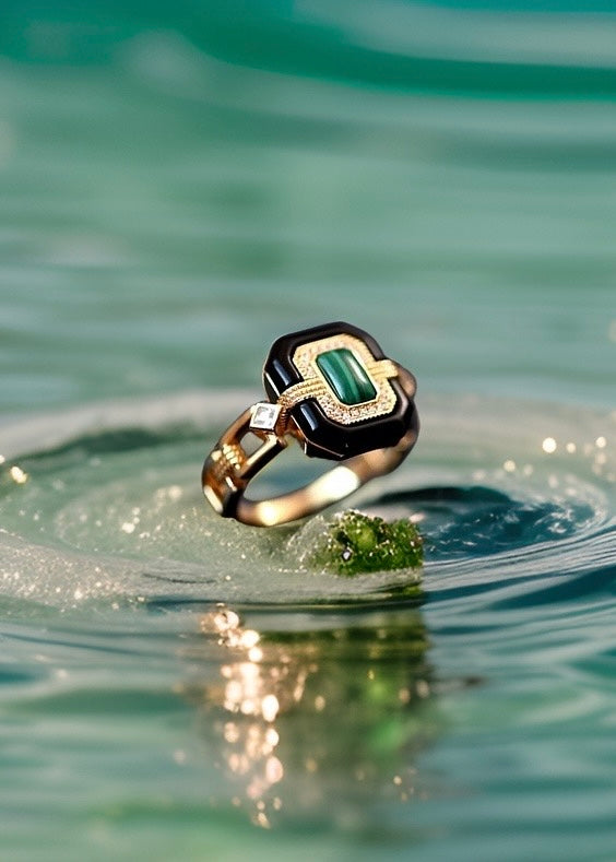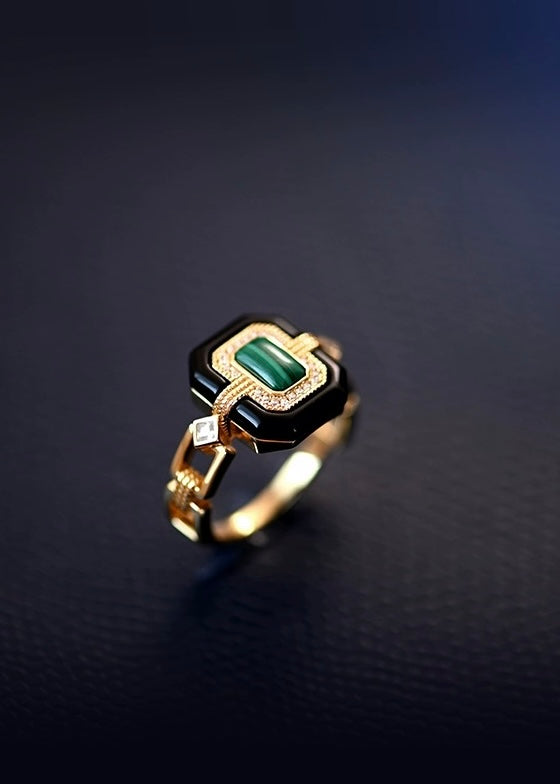 Elevate your style with this luxurious Malachite 18K Gold Ring, inspired by iconic Art Deco design. Featuring a vibrant green malachite gemstone set in gleaming 18K gold, this statement piece is perfect for everyday elegance or special occasions. Handcrafted for timeless sophistication.