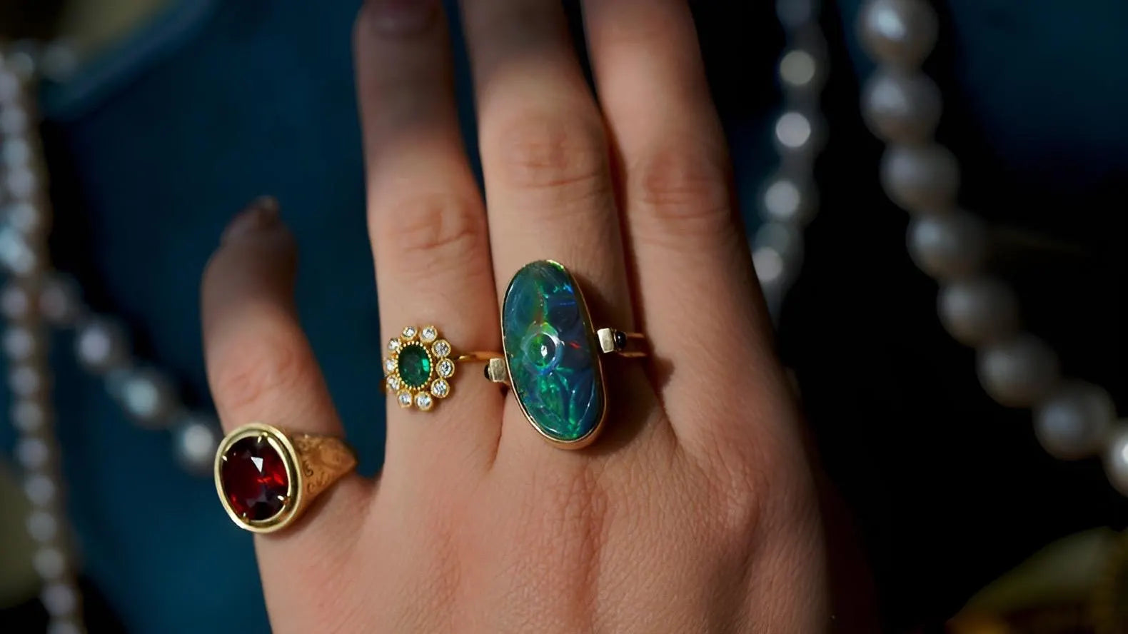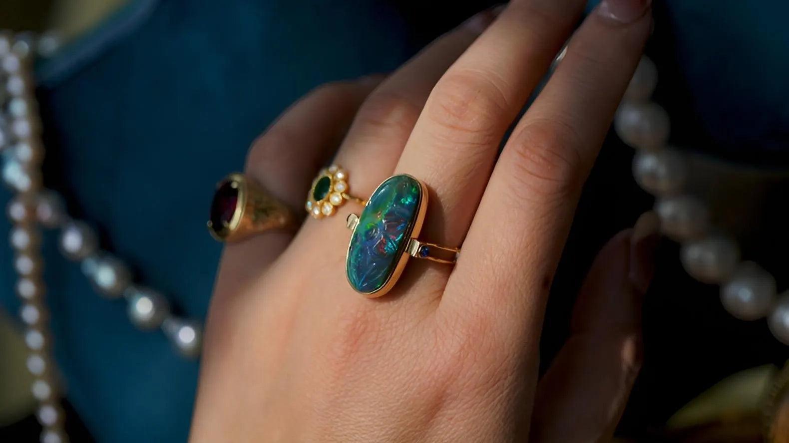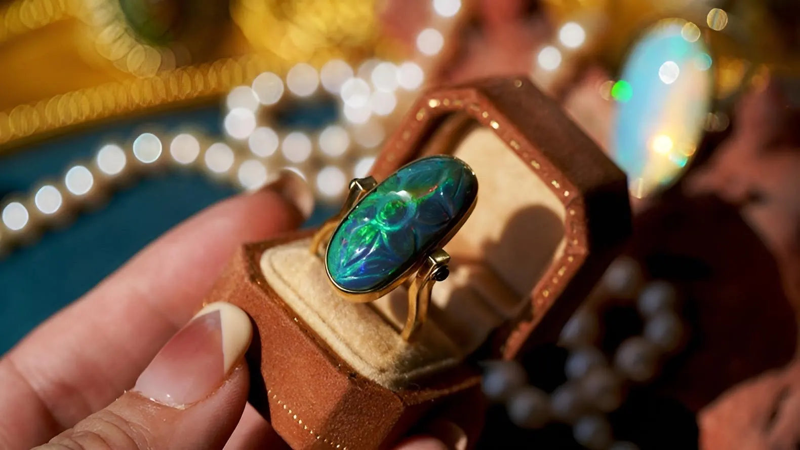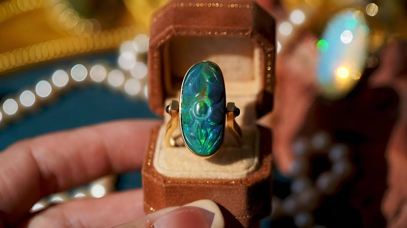 - Features: Reversible design (opal on one side, detailed gold floral pattern on the other)