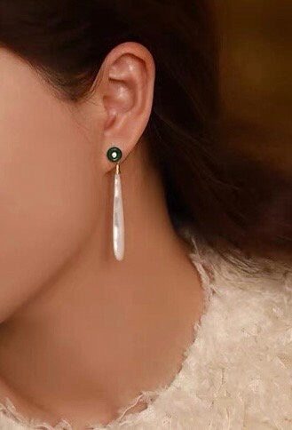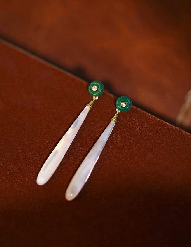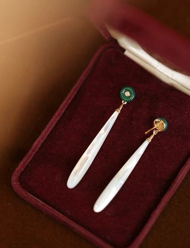 - Materials: 18k gold vermeil , natural mother of pearl, green agate and 5A zircon