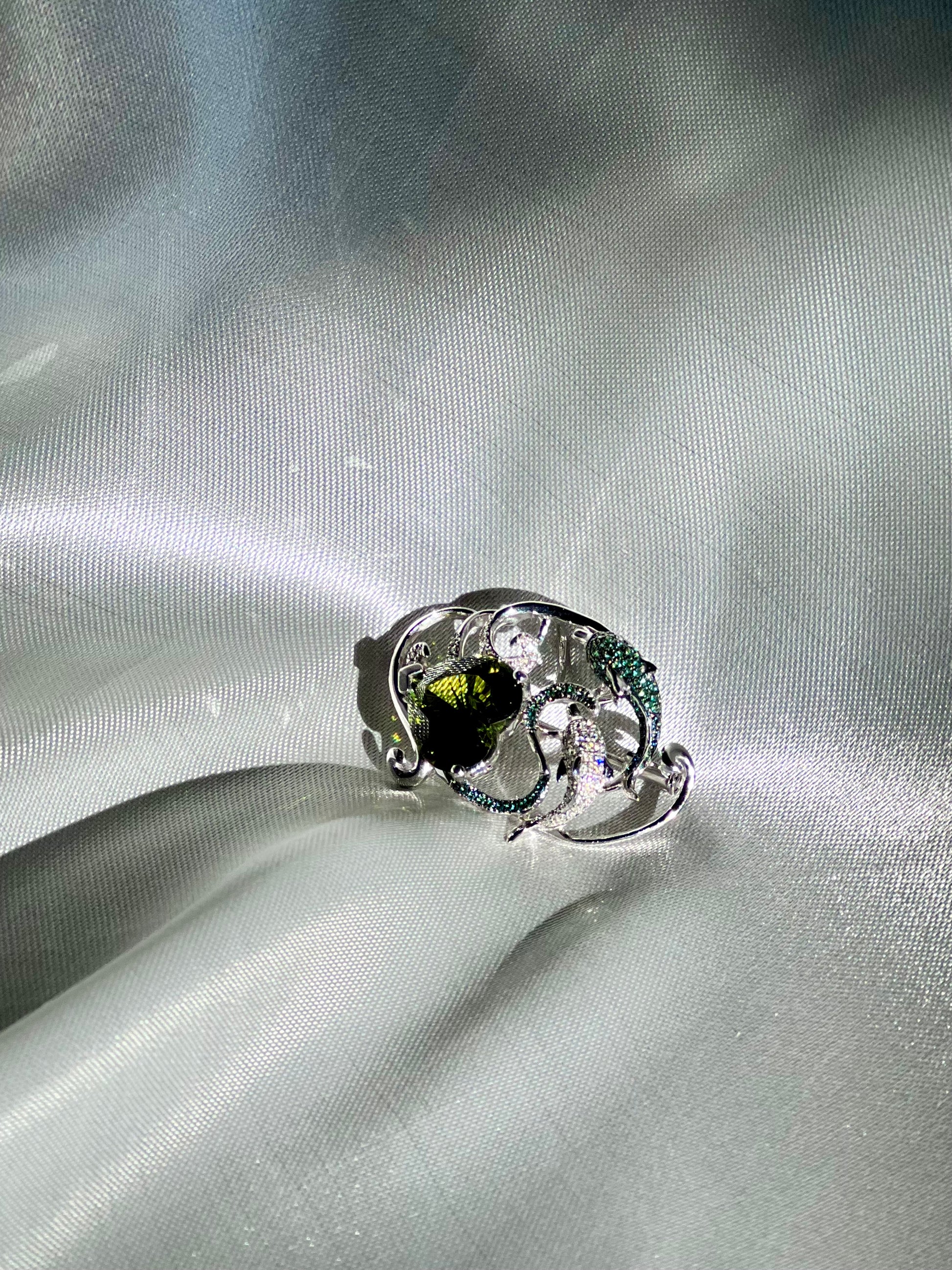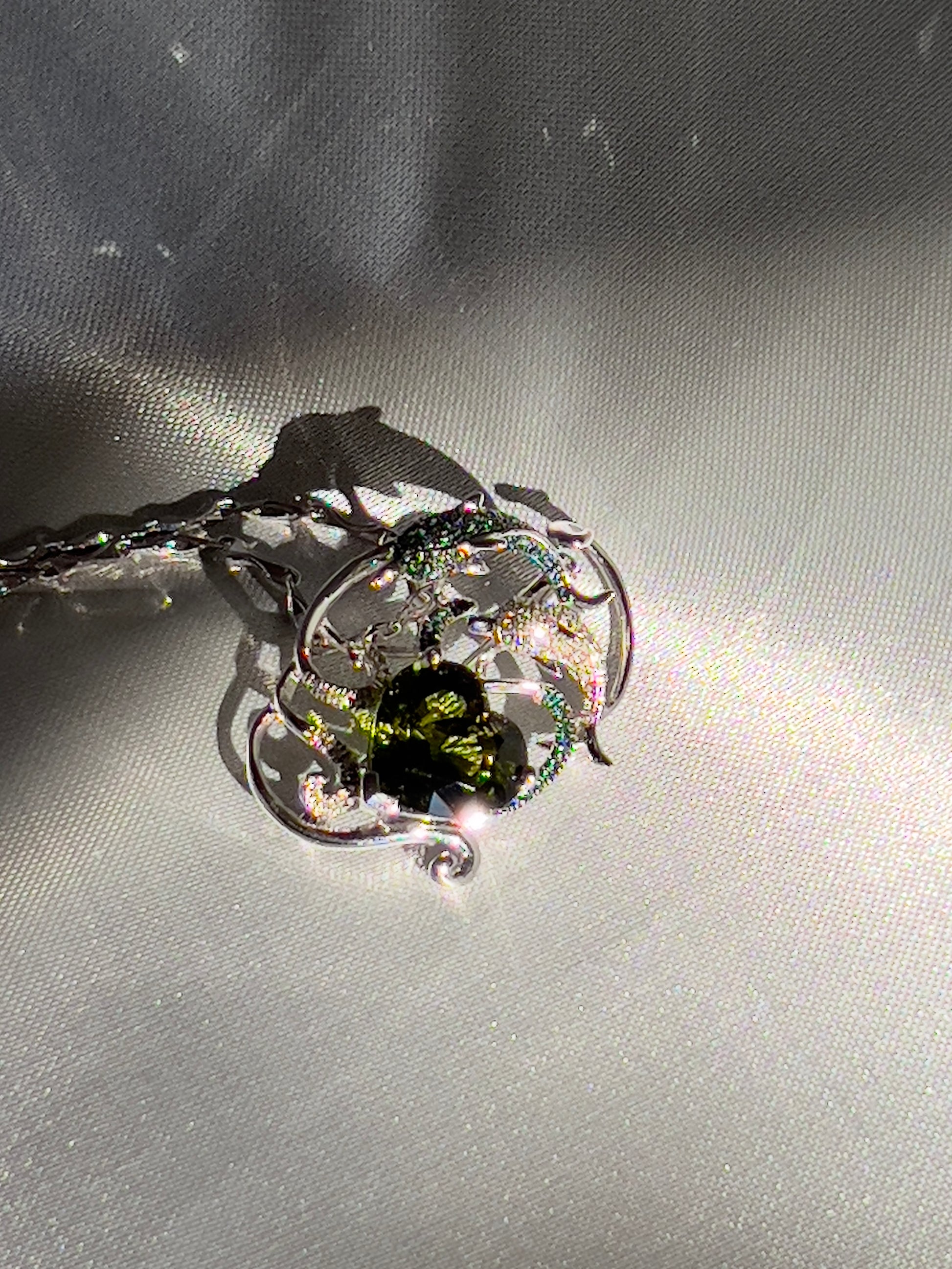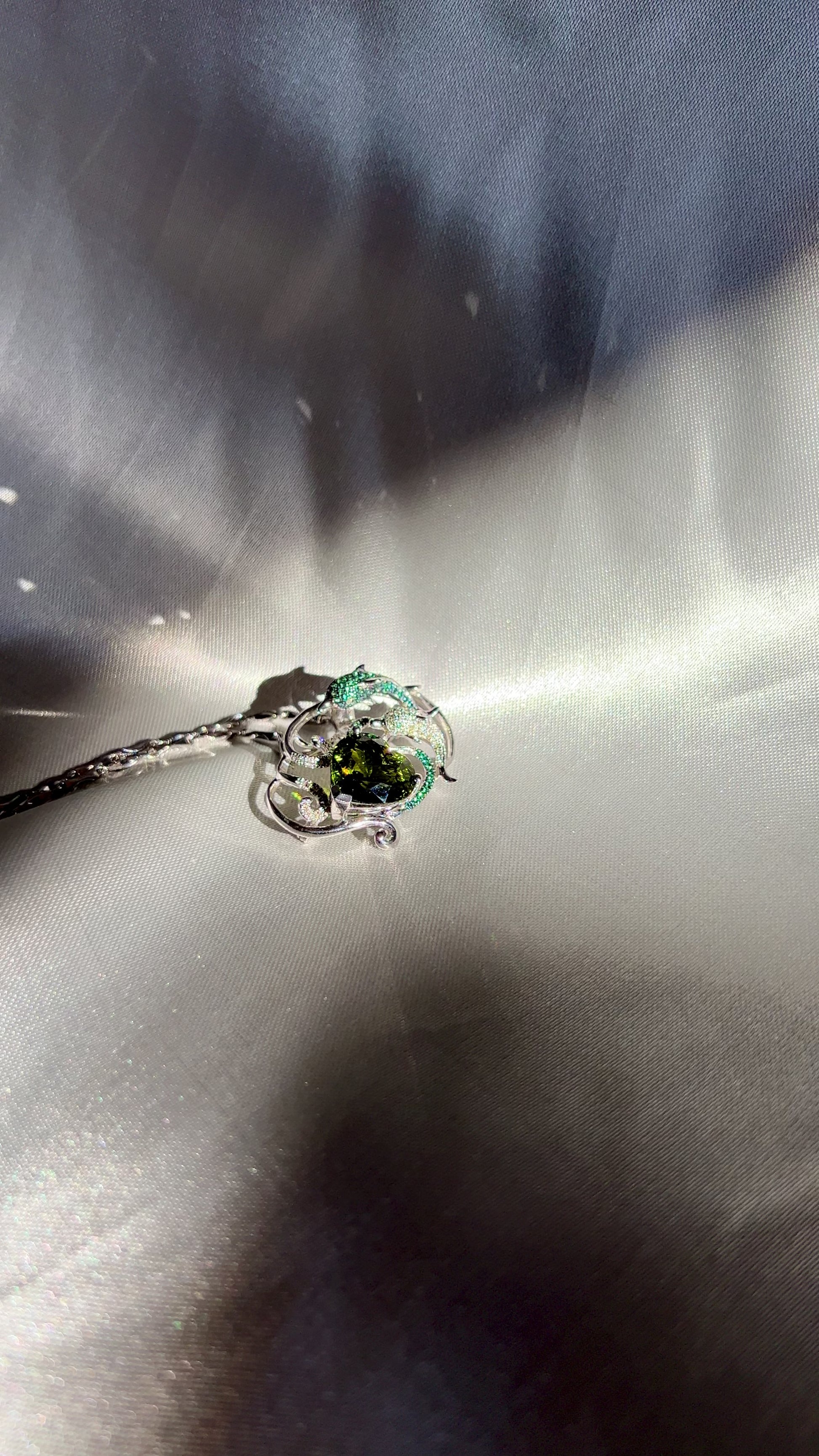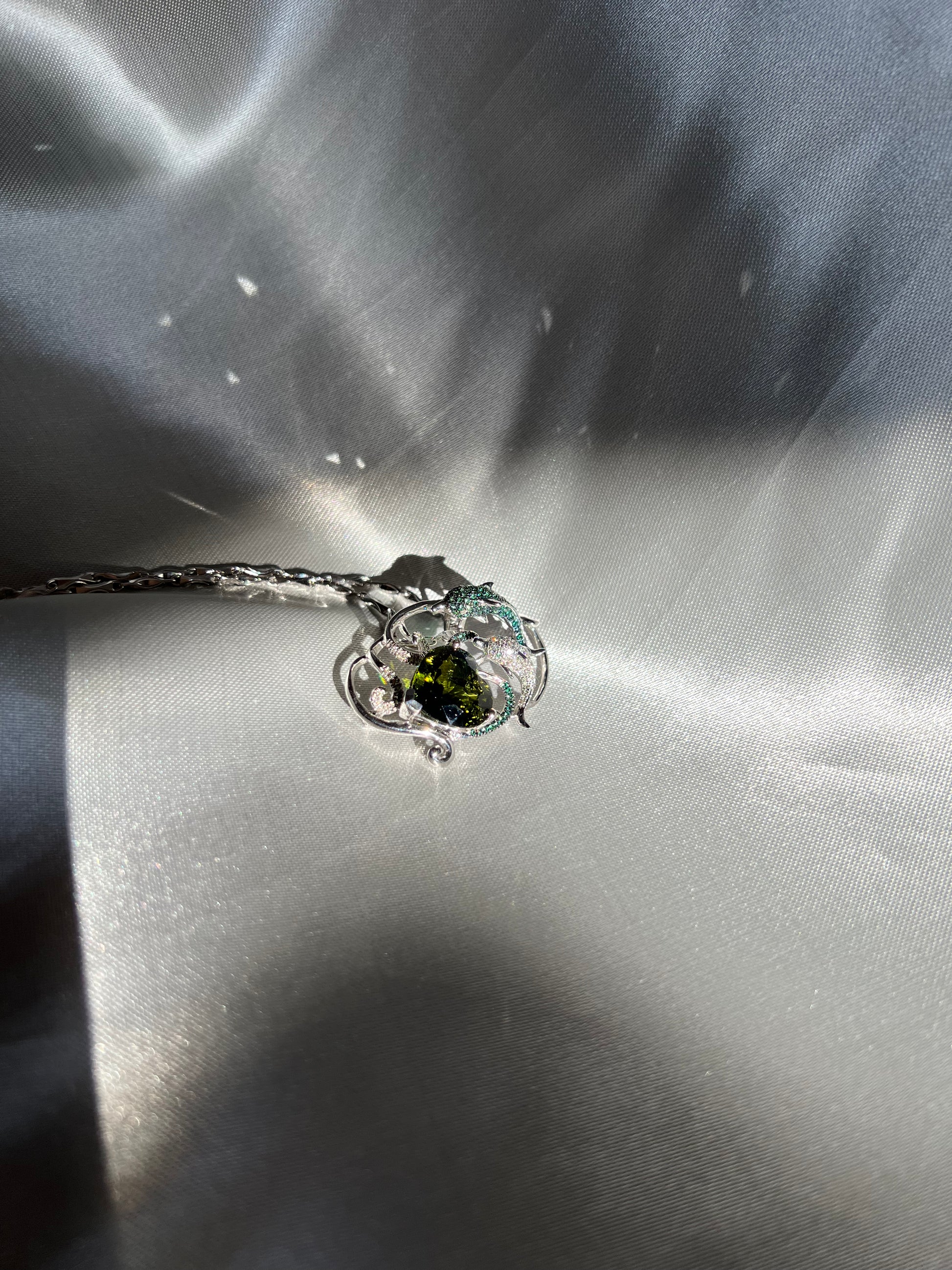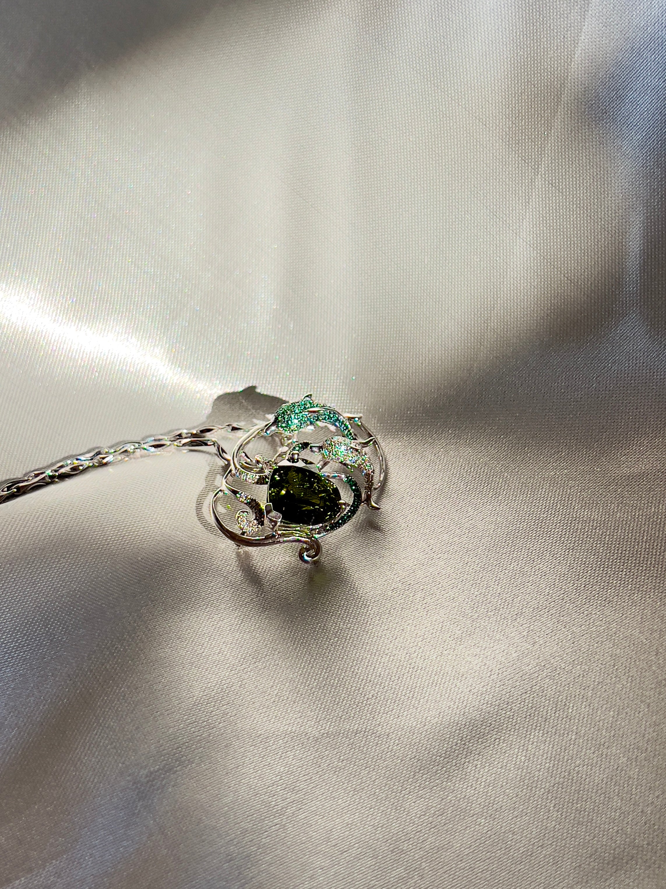 - Gemstone: natural Green Tourmaline, natural Tsavorites, natural Diamonds