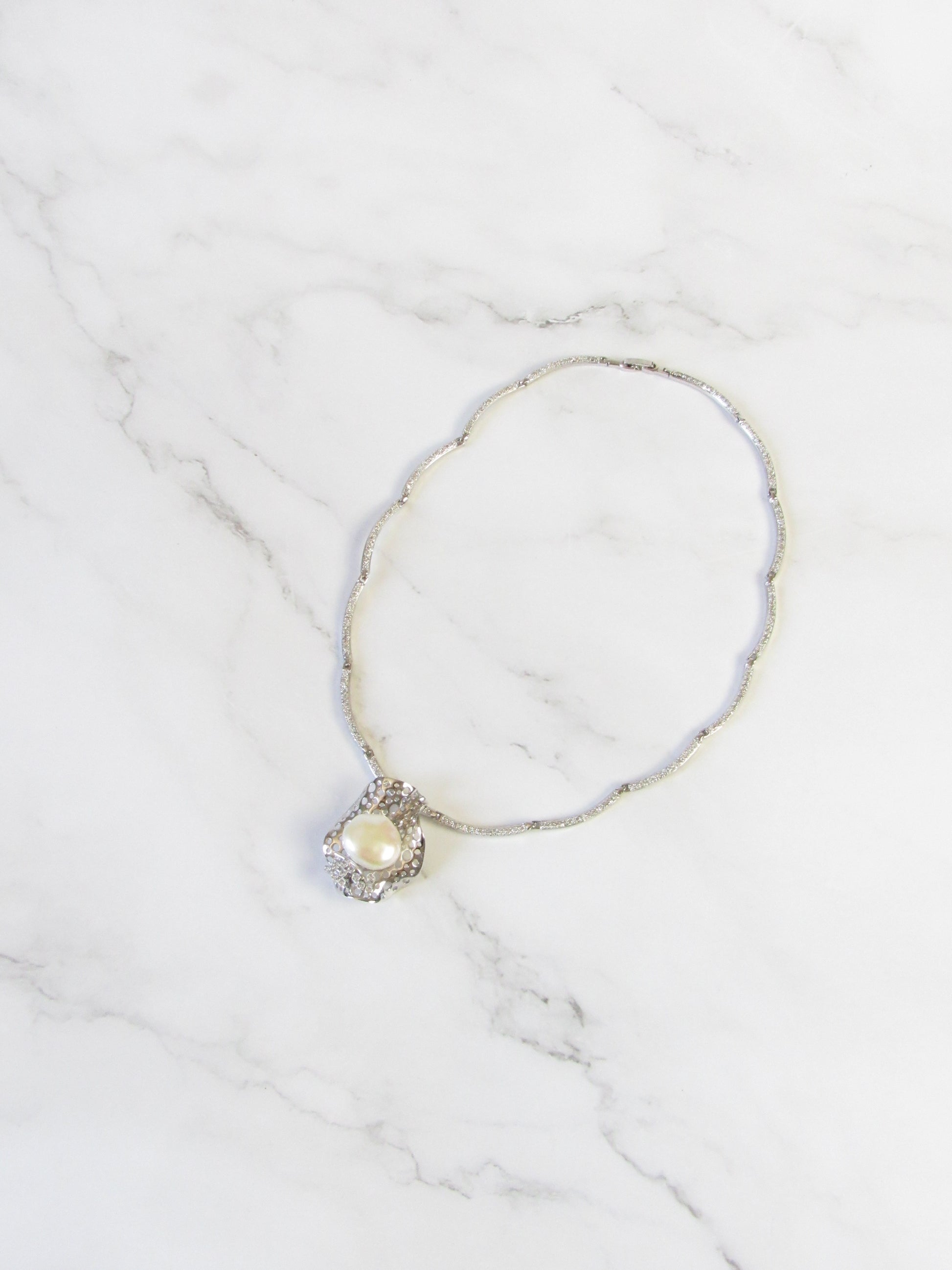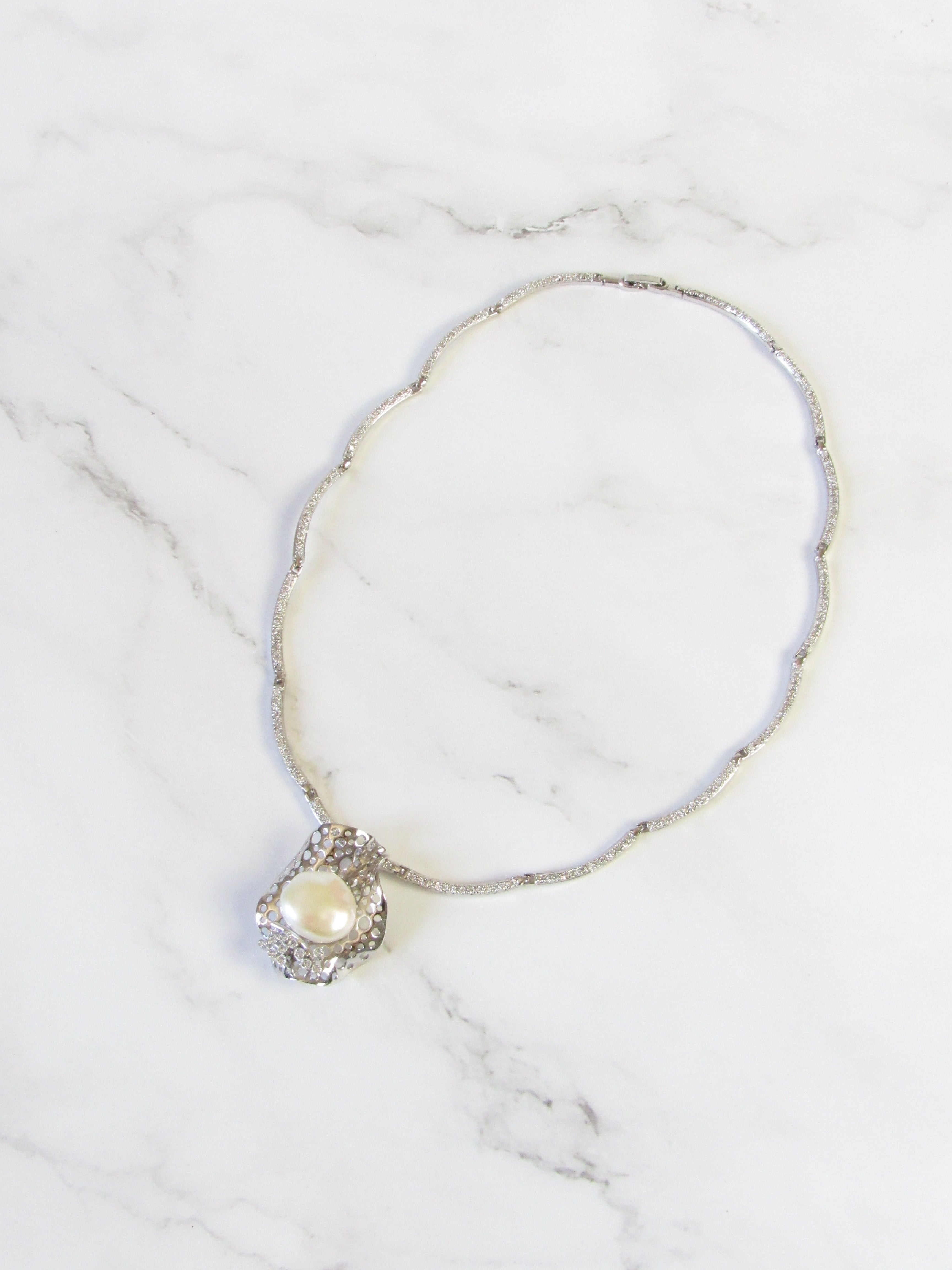 Natural Baroque Pearl 18K White Gold Pendant Necklace