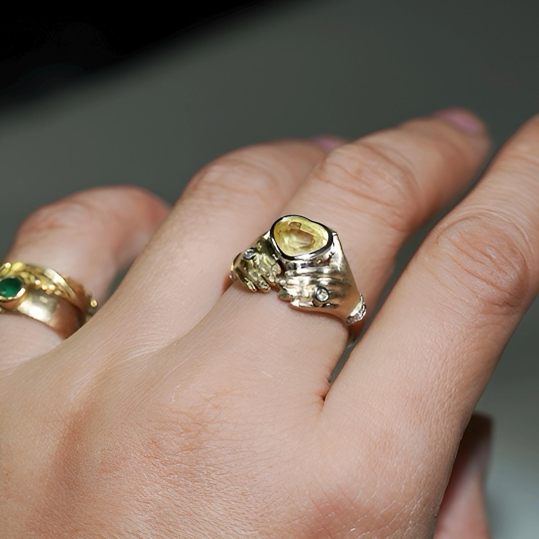 • Golden Sapphire: 2.3ct, warm and radiant, embodying joy and steadfast love. (US size 7)