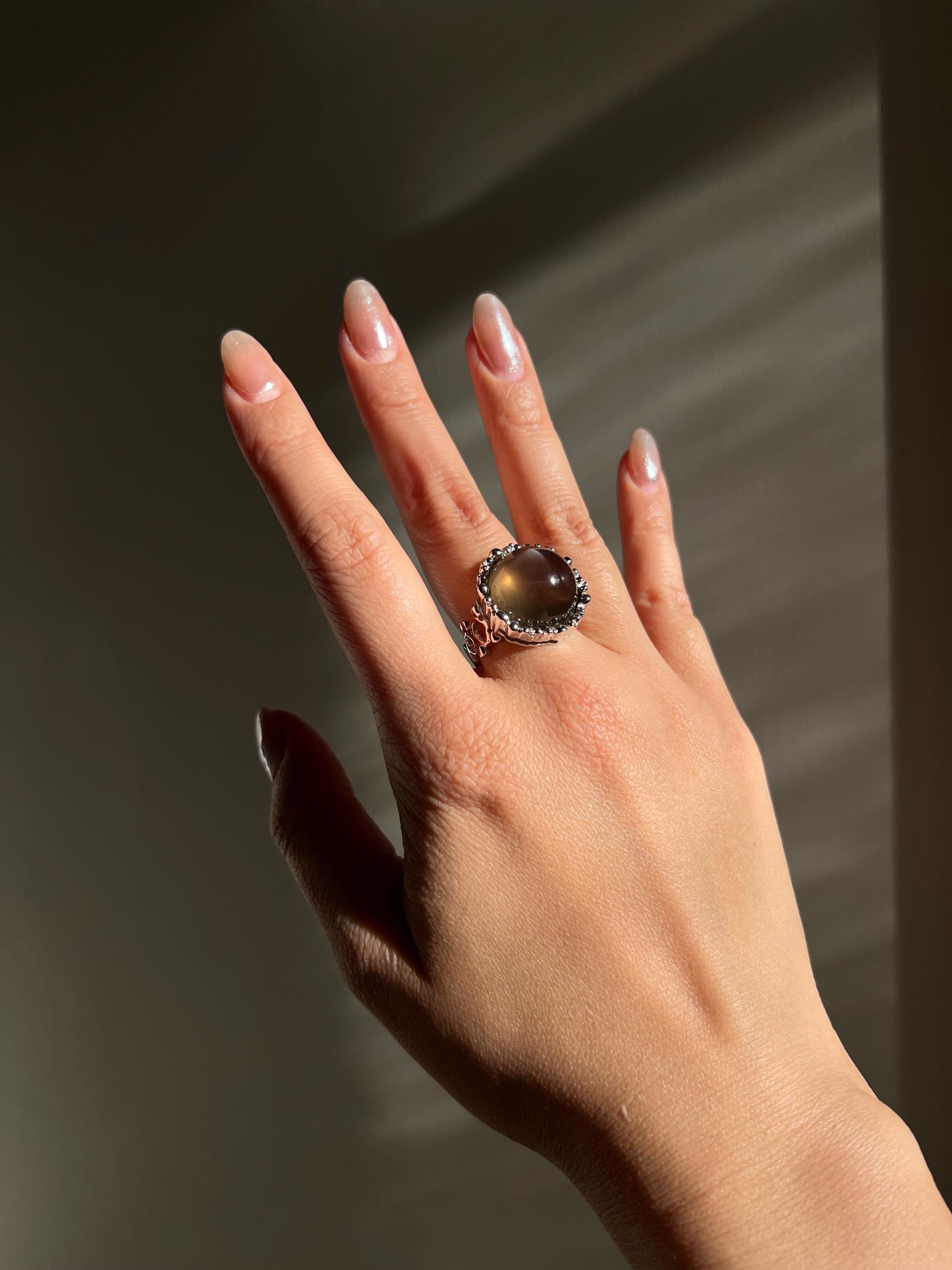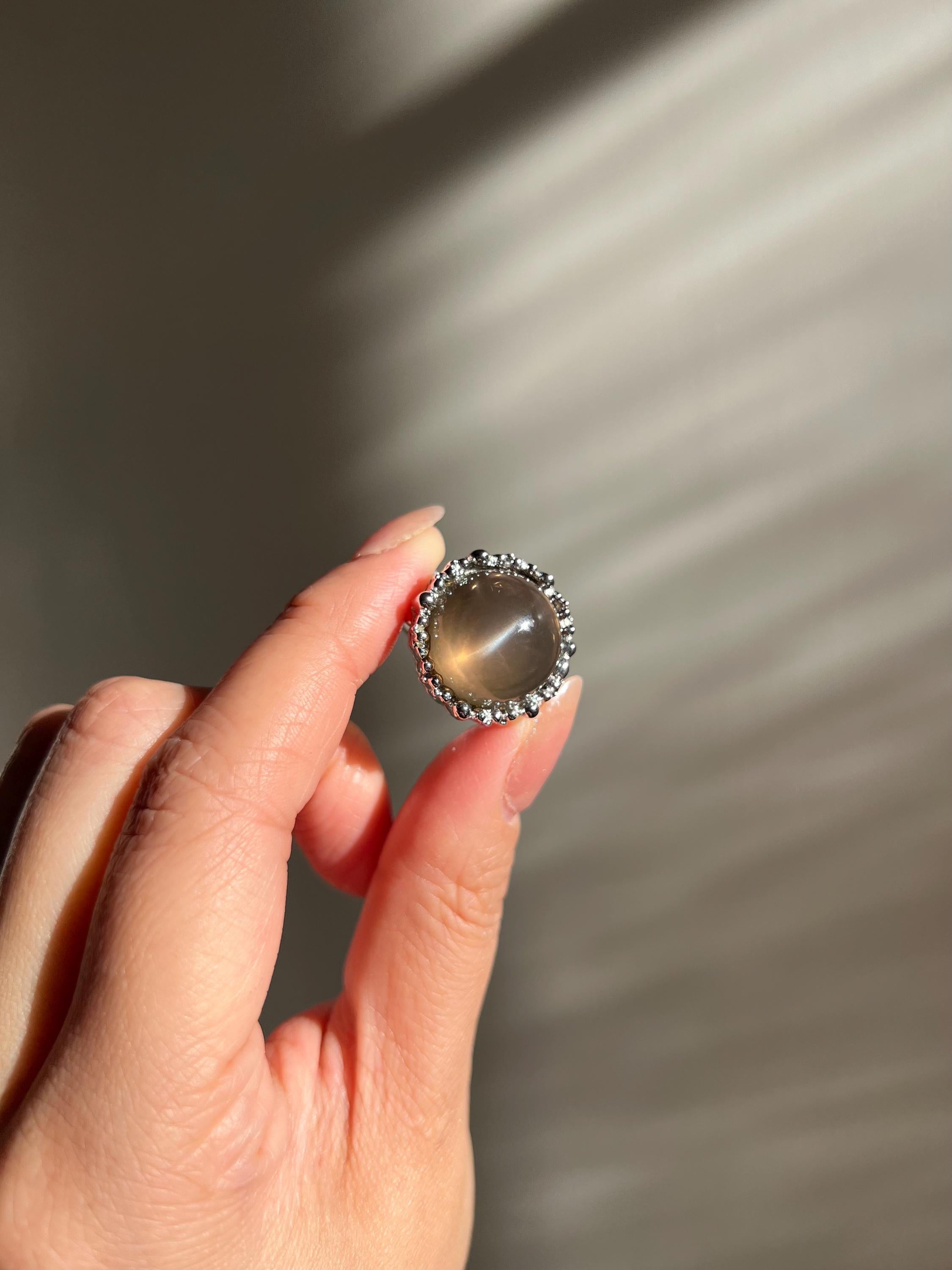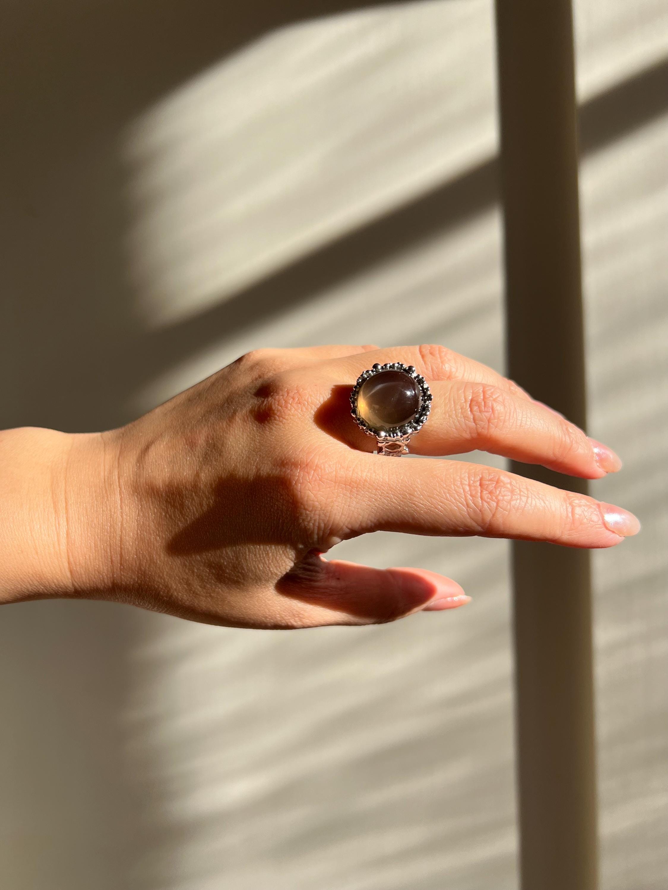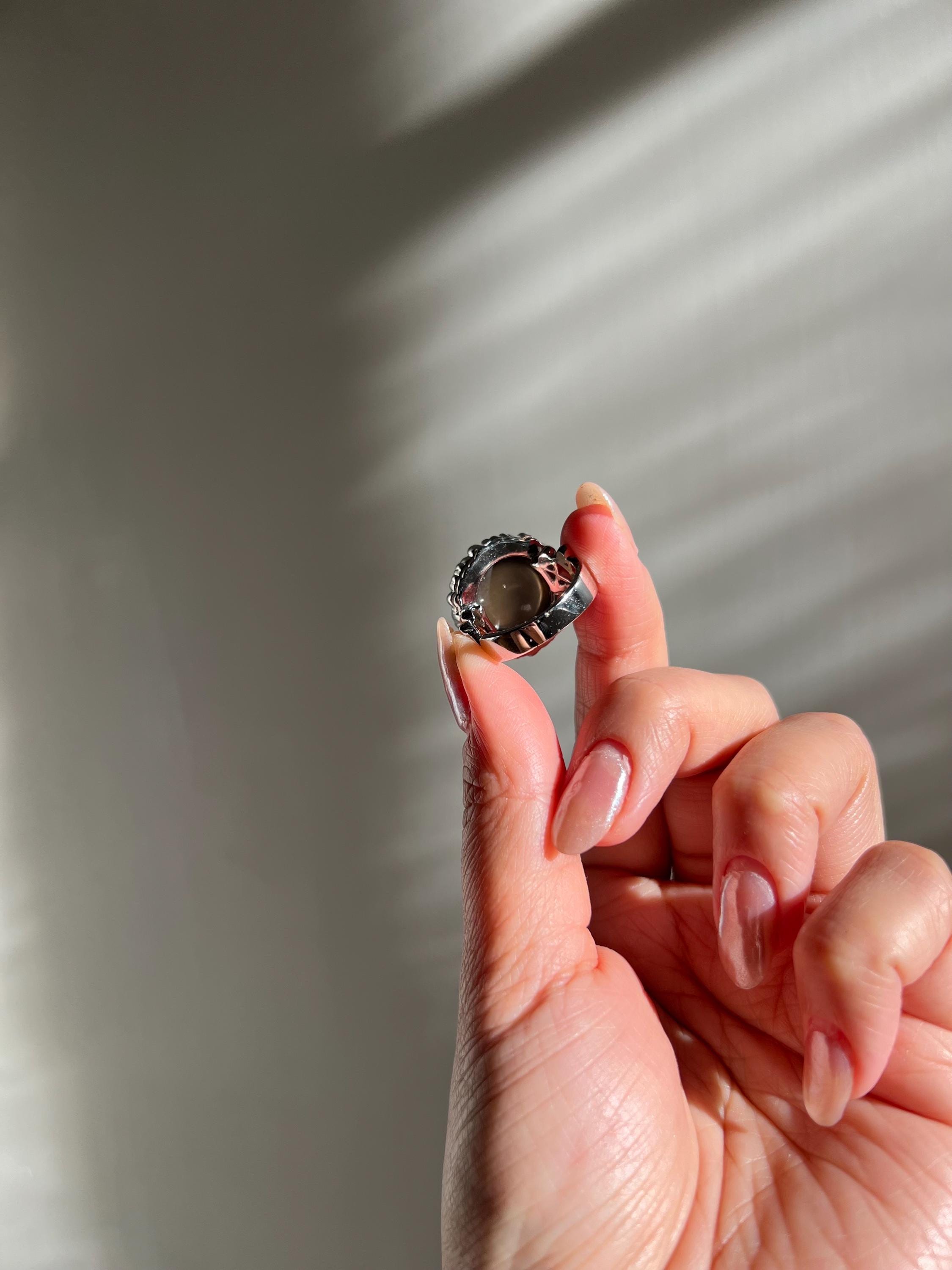 Natural Cat’s Eye Moonstone Ring | Sterling Silver Artisan Jewelry | One-of-a-Kind Gemstone Ring | Statement Gift for Her | June Birthstone