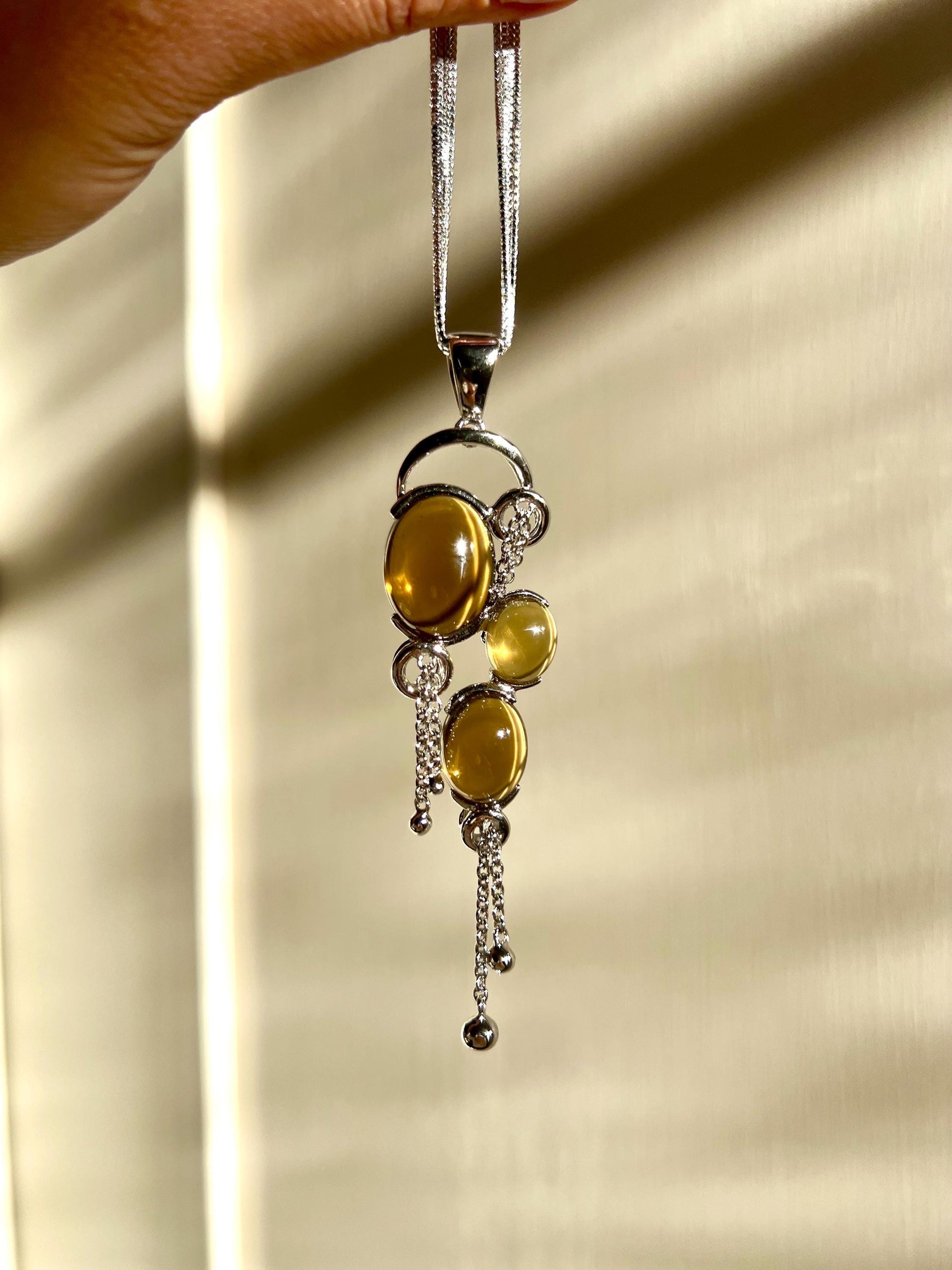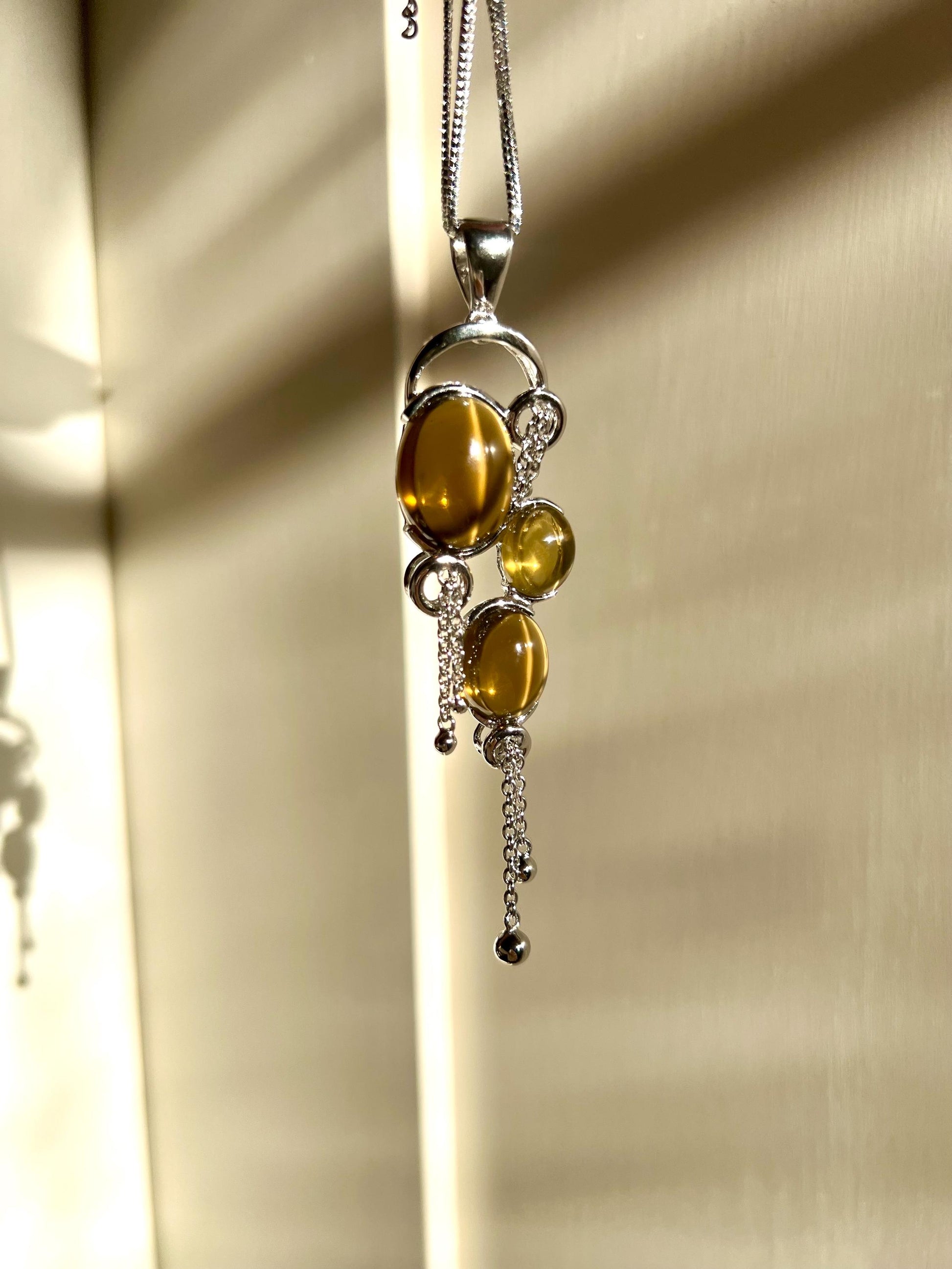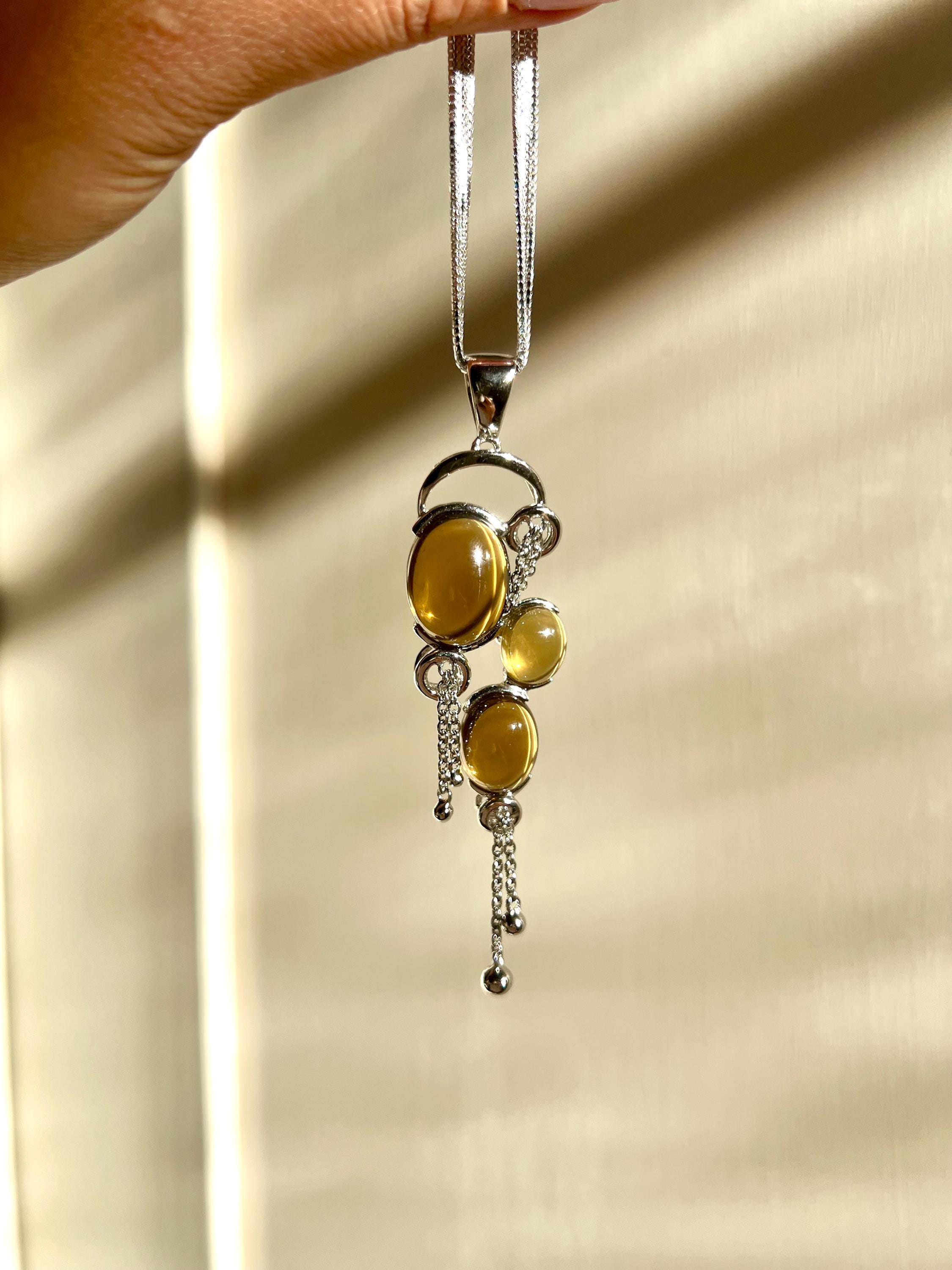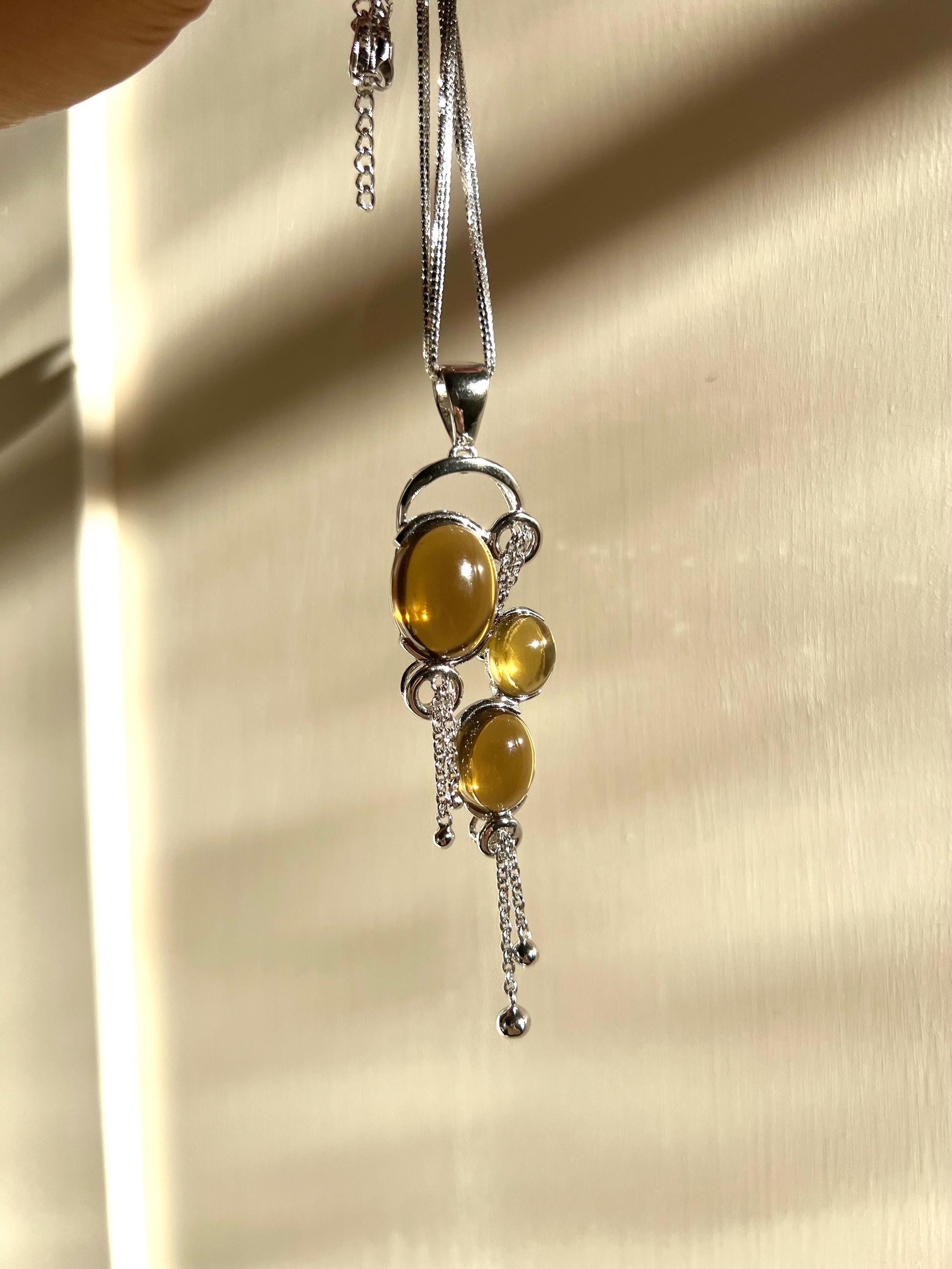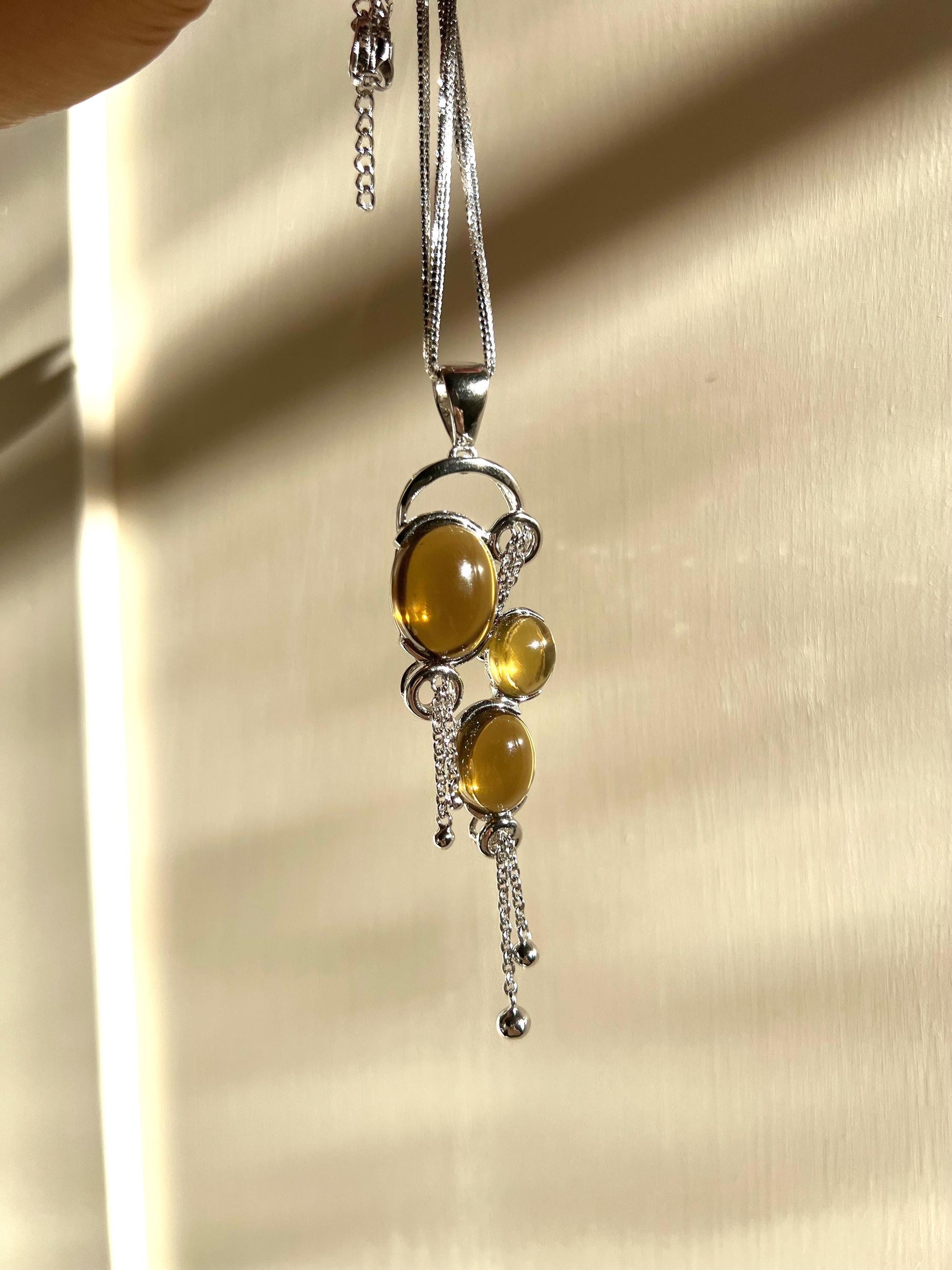 This one-of-a-kind citrine necklace features 45 carats of natural, untreated golden citrine, hand-set in solid sterling silver. Each cabochon reveals a honeyed depth that catches light beautifully against the skin.