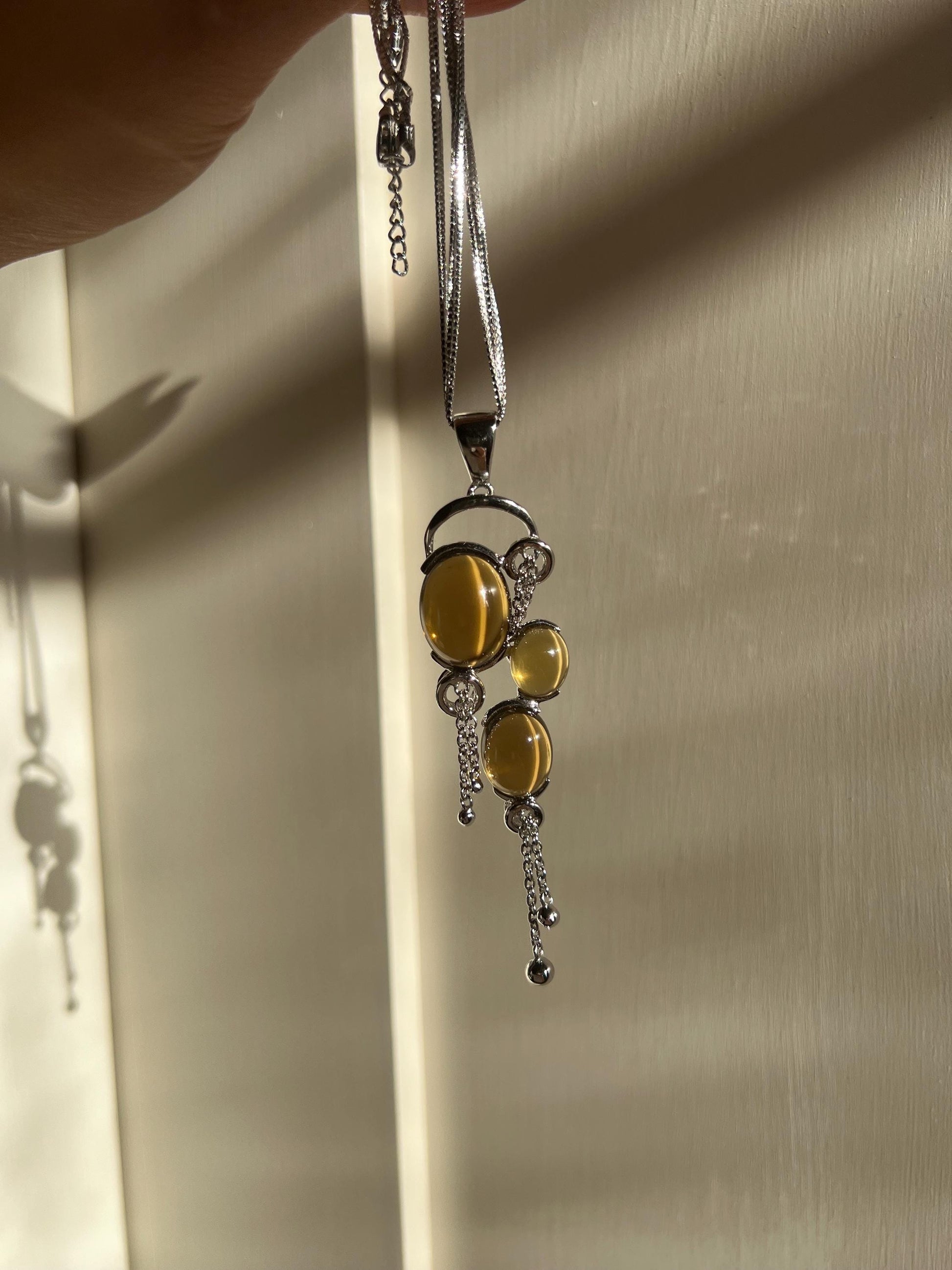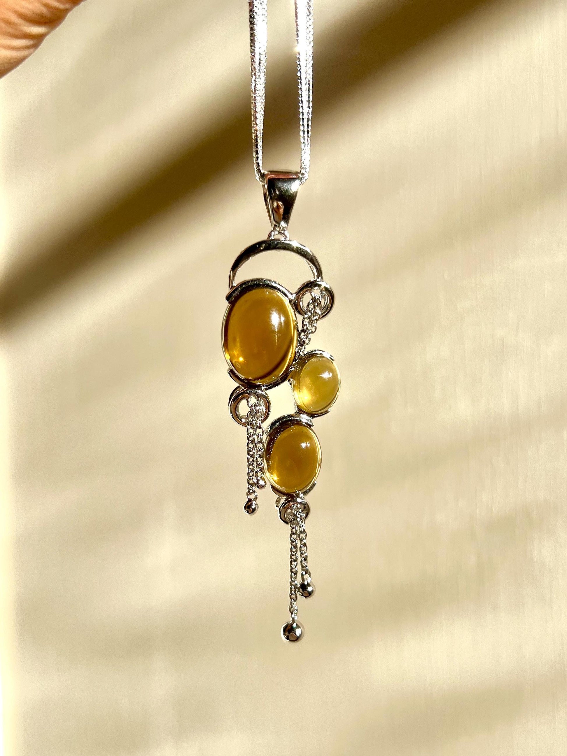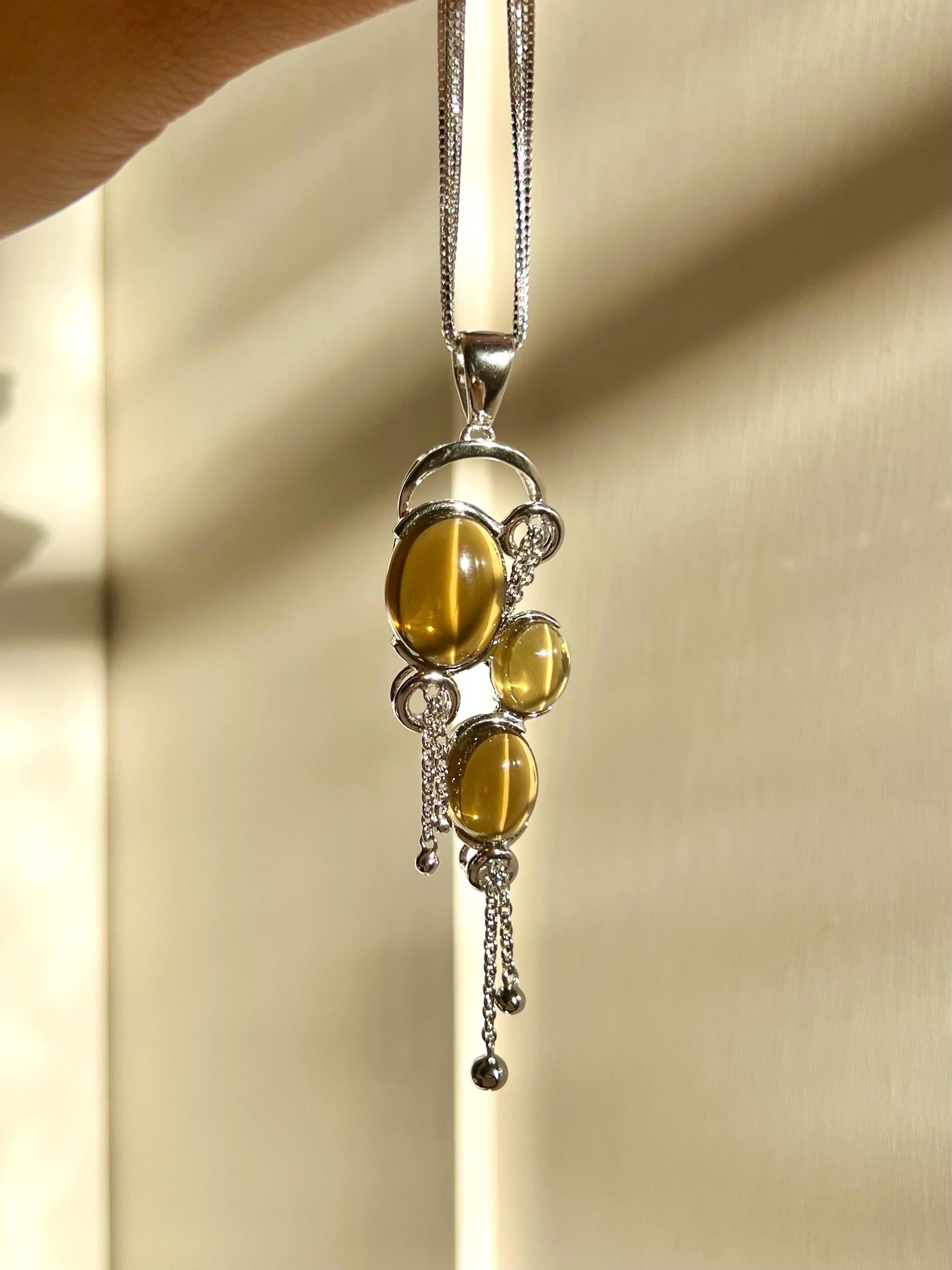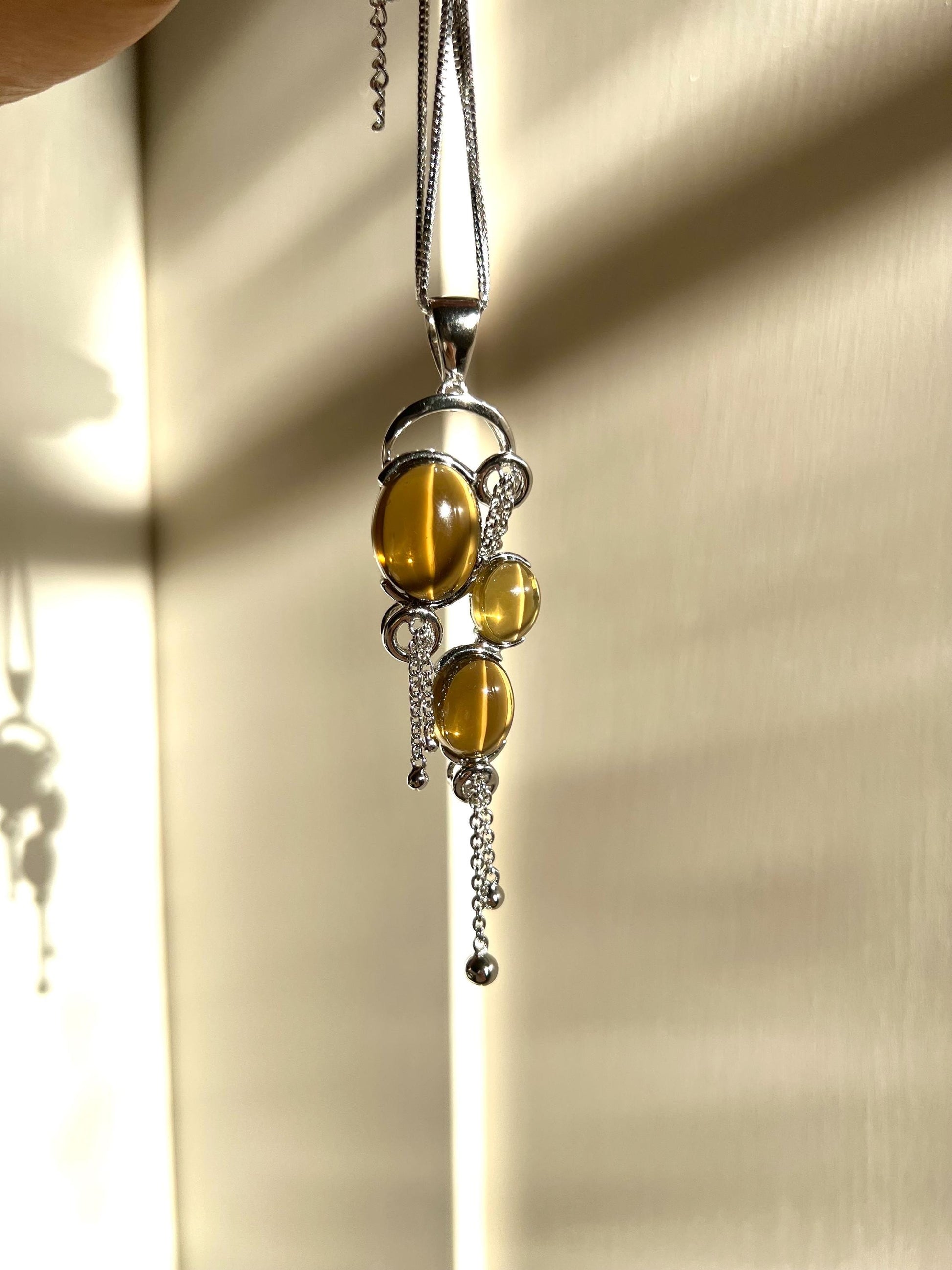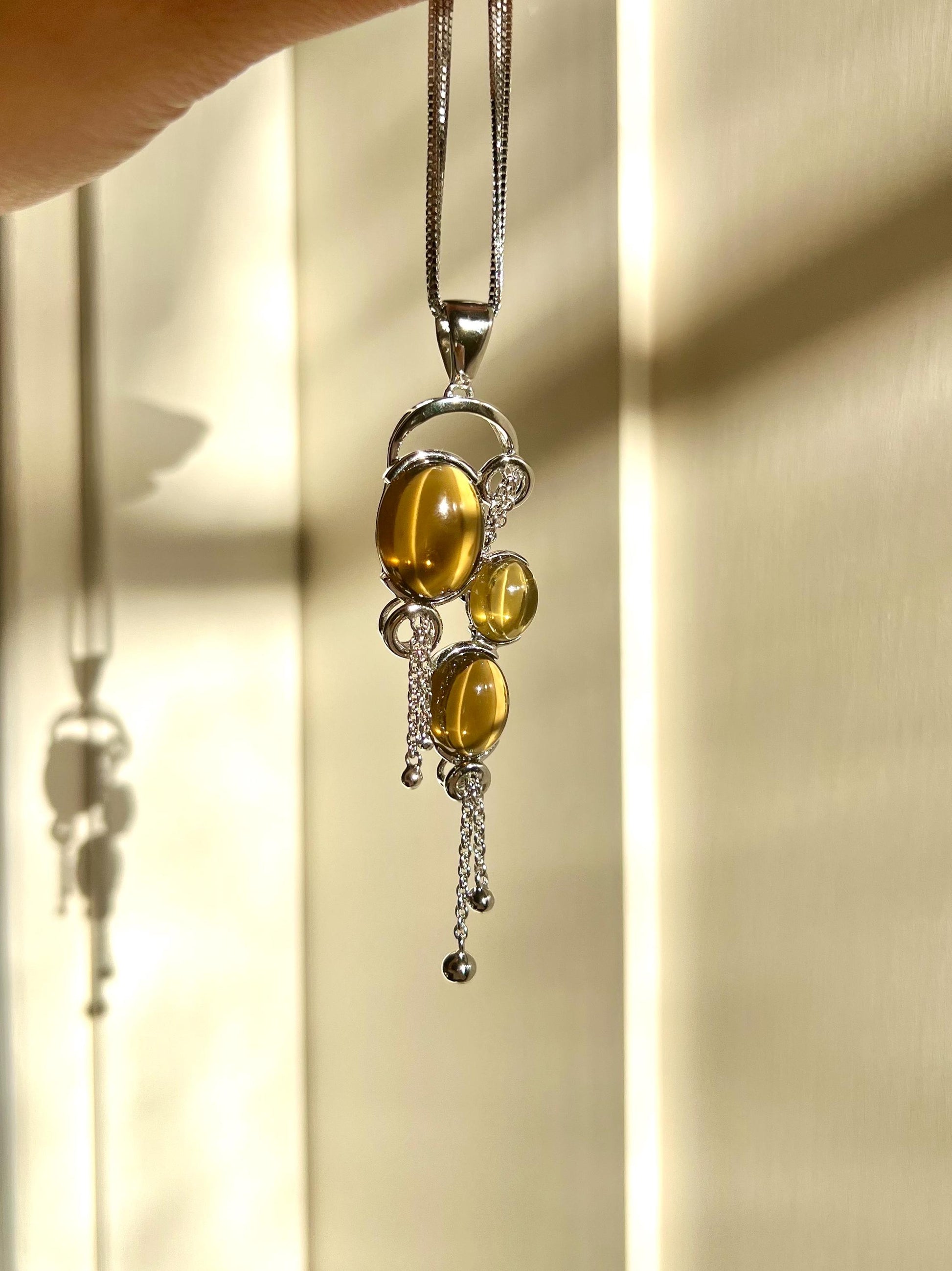 This one-of-a-kind citrine necklace features 45 carats of natural, untreated golden citrine, hand-set in solid sterling silver. Each cabochon reveals a honeyed depth that catches light beautifully against the skin.