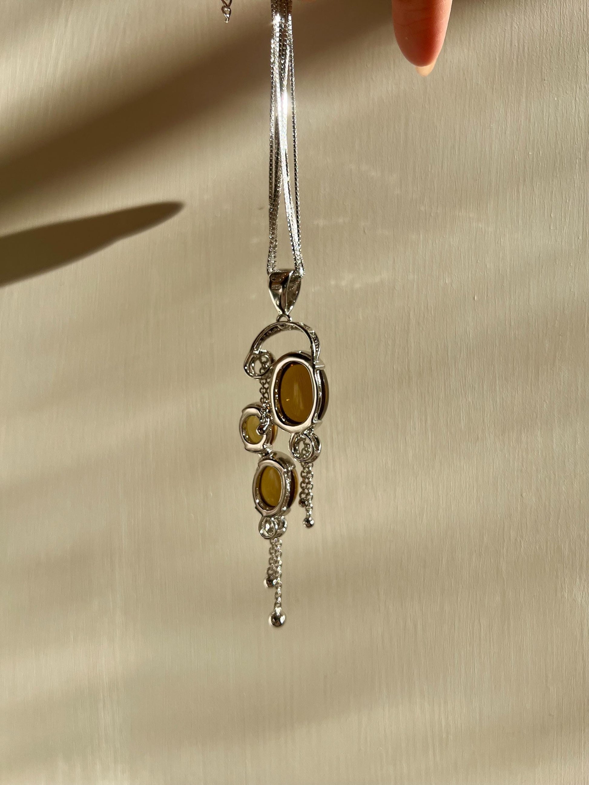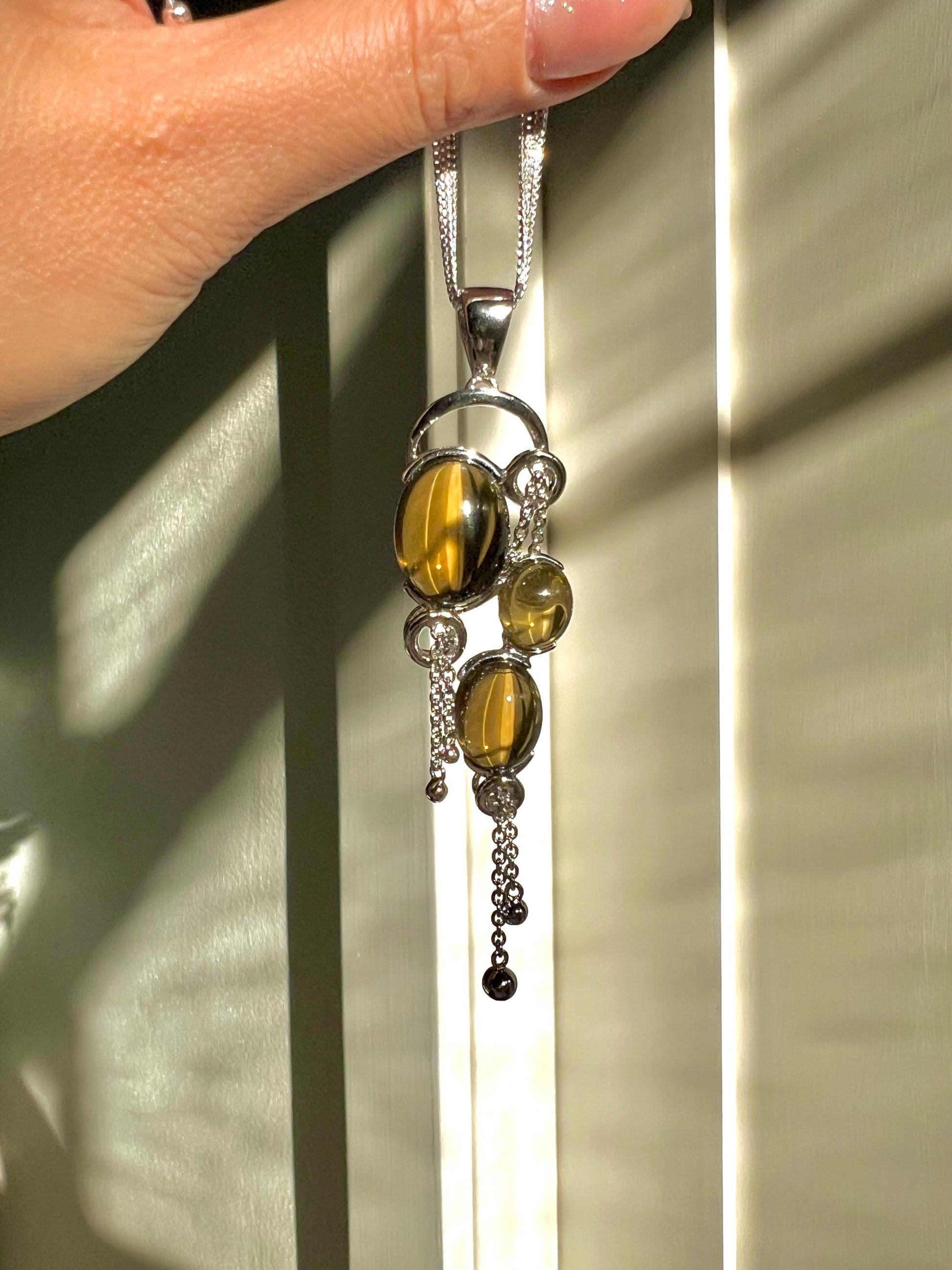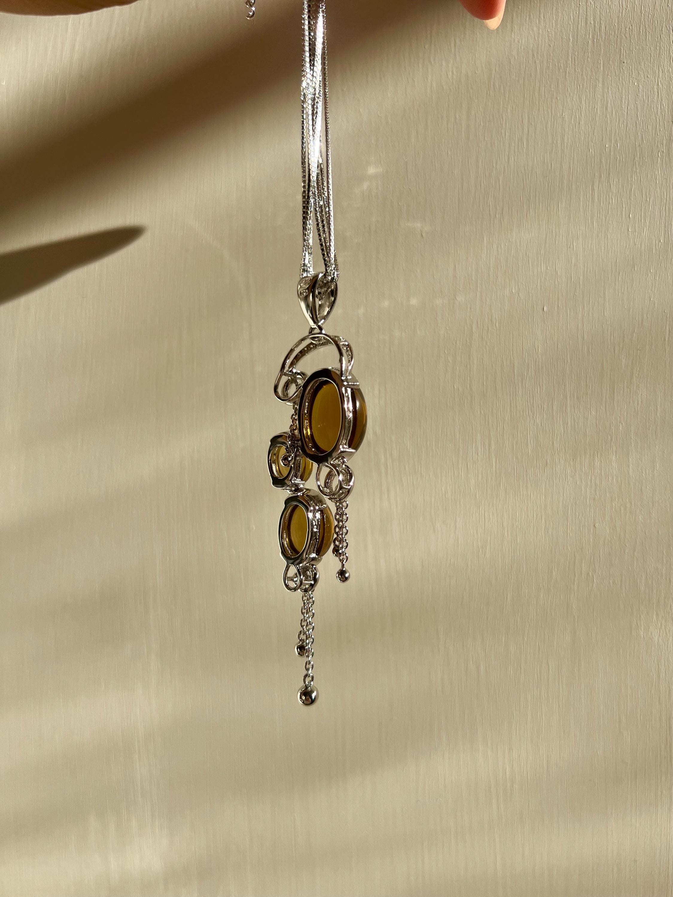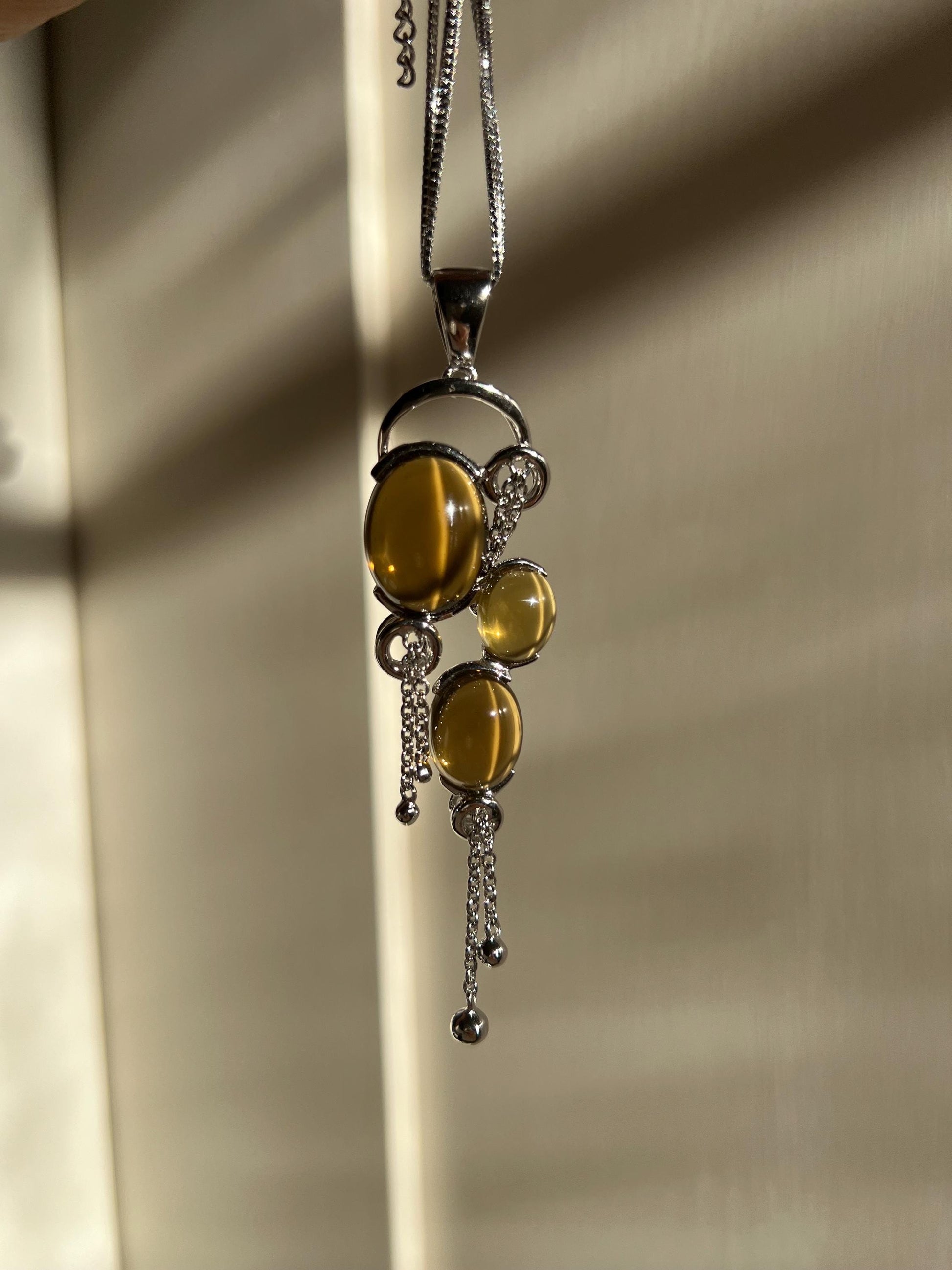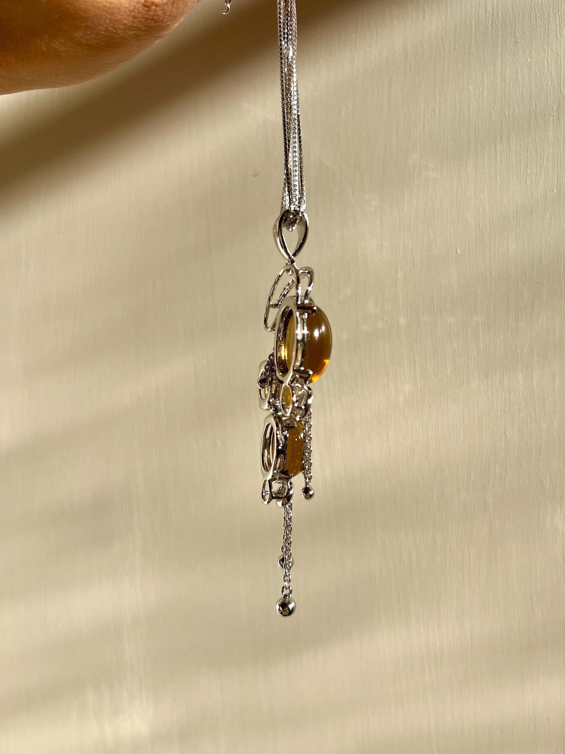 This one-of-a-kind citrine necklace features 45 carats of natural, untreated golden citrine, hand-set in solid sterling silver. Each cabochon reveals a honeyed depth that catches light beautifully against the skin.