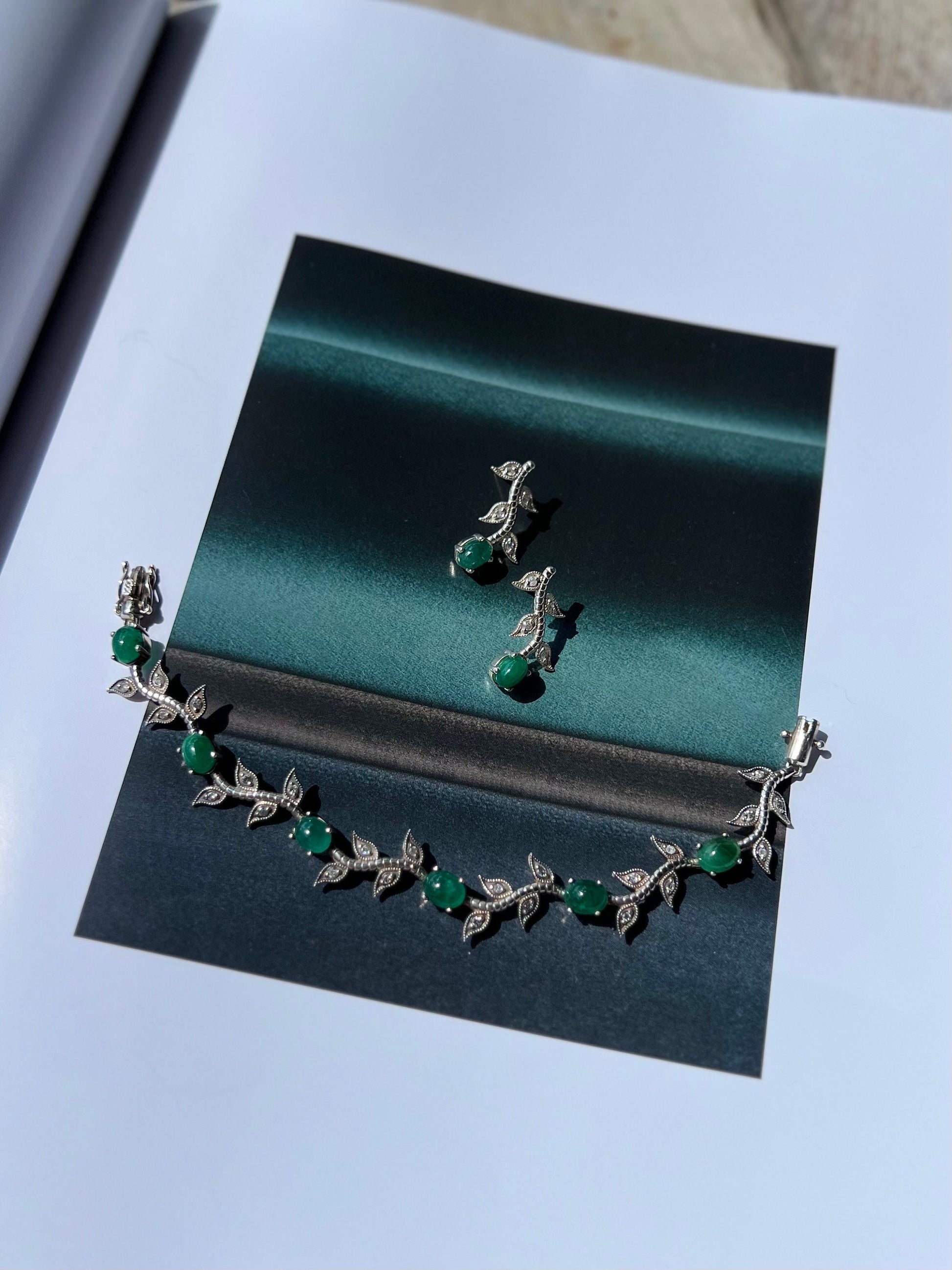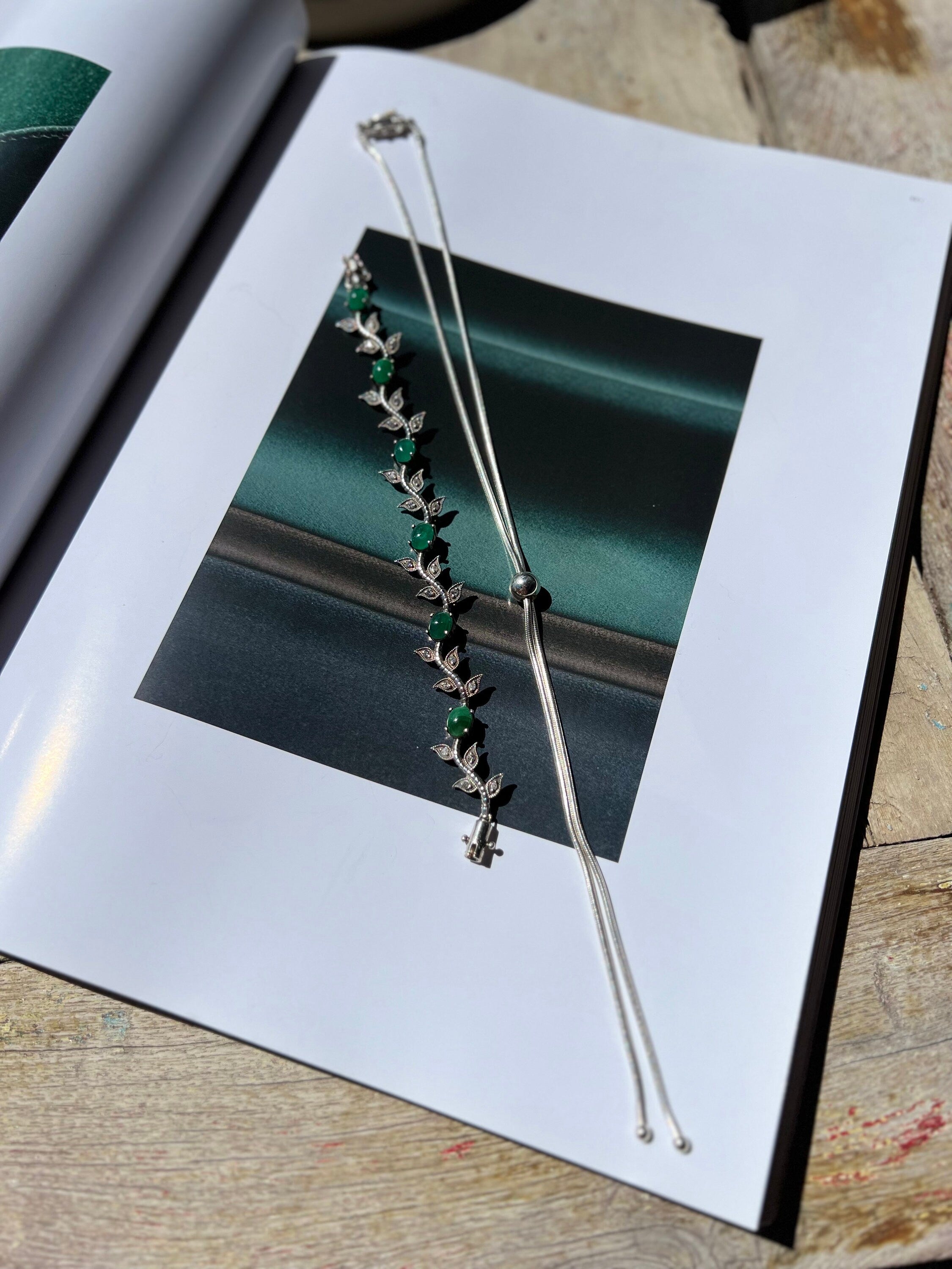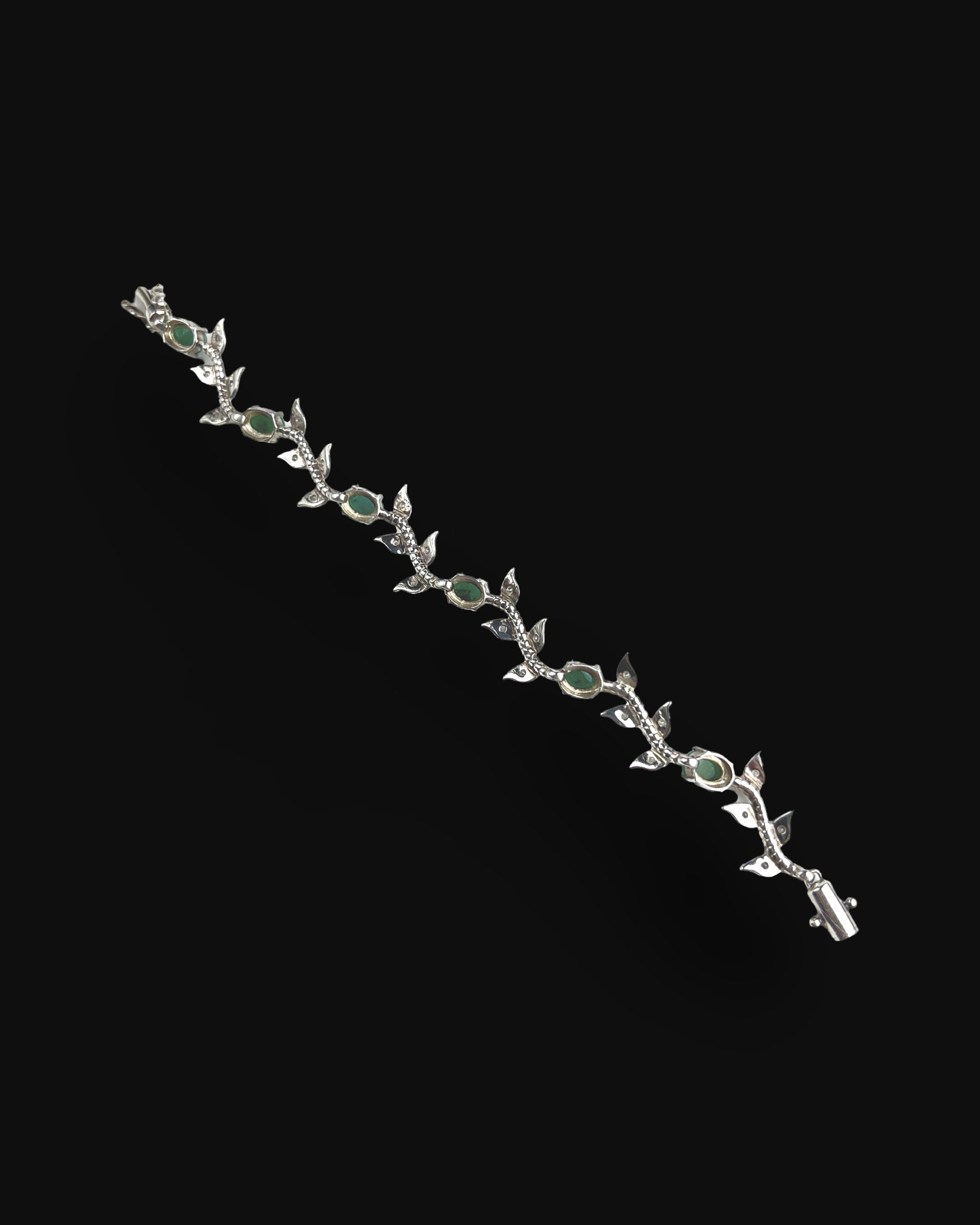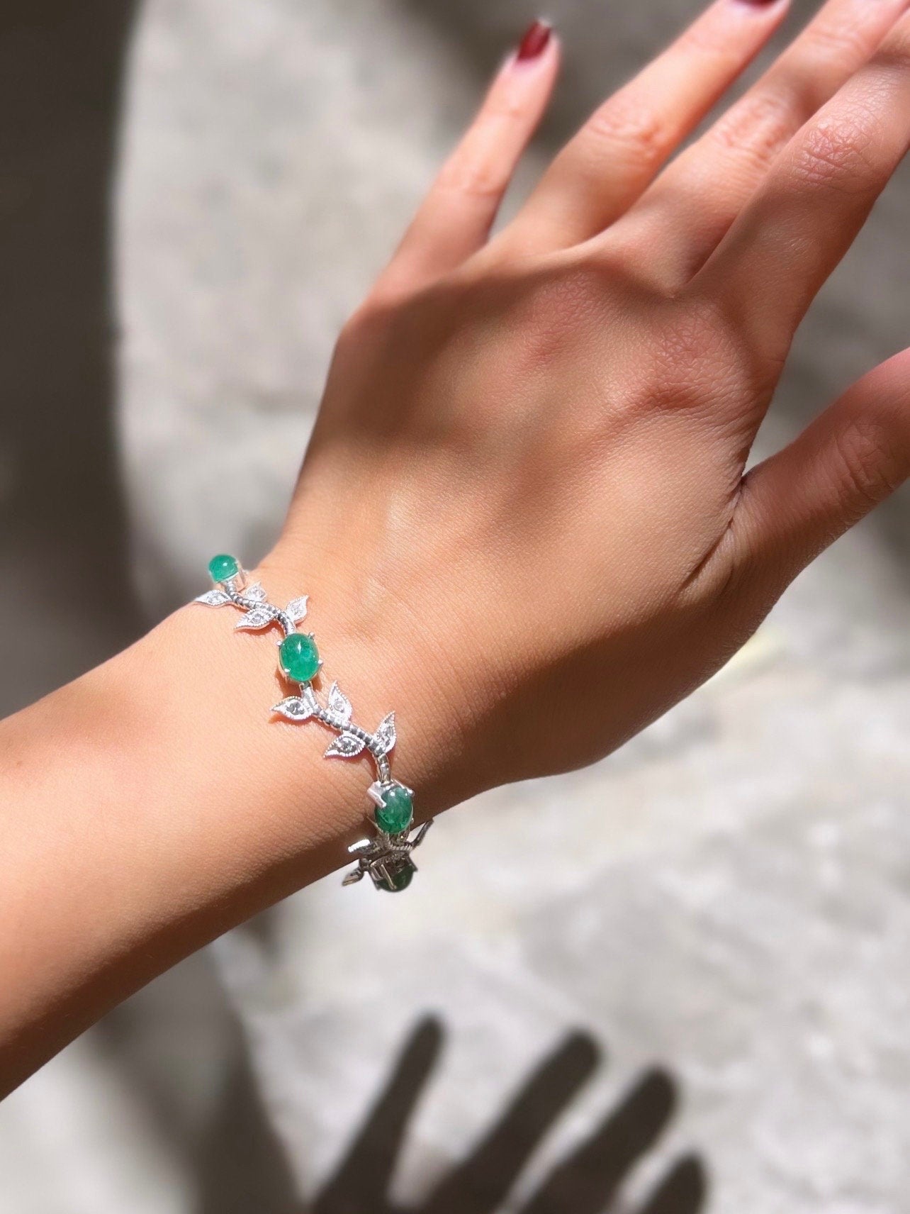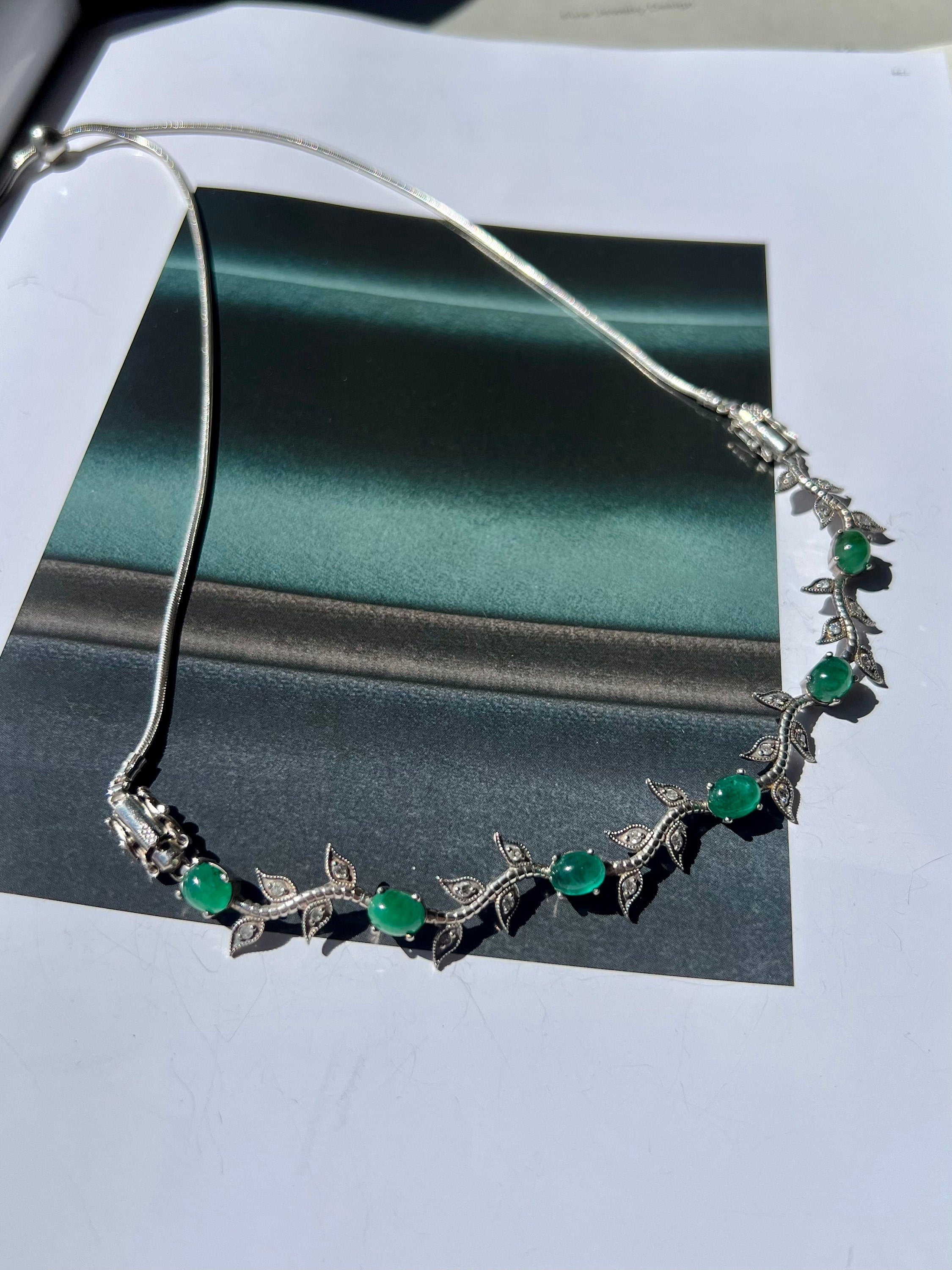Introducing our new design beautiful and elegant Natural Zambian Emerald and Diamonds Bracelet . This piece features 6 carats of vibrant natural Zambian emeralds and 0.75 carats of sparkling G/SI diamonds. Its unique design includes a mirror slider bead chain, allowing it to convert effortlessly into a necklace. The wine bottle-inspired clasp adds a whimsical touch to this sophisticated jewelry. Perfect for any occasion, this bracelet exudes timeless beauty and elegance.