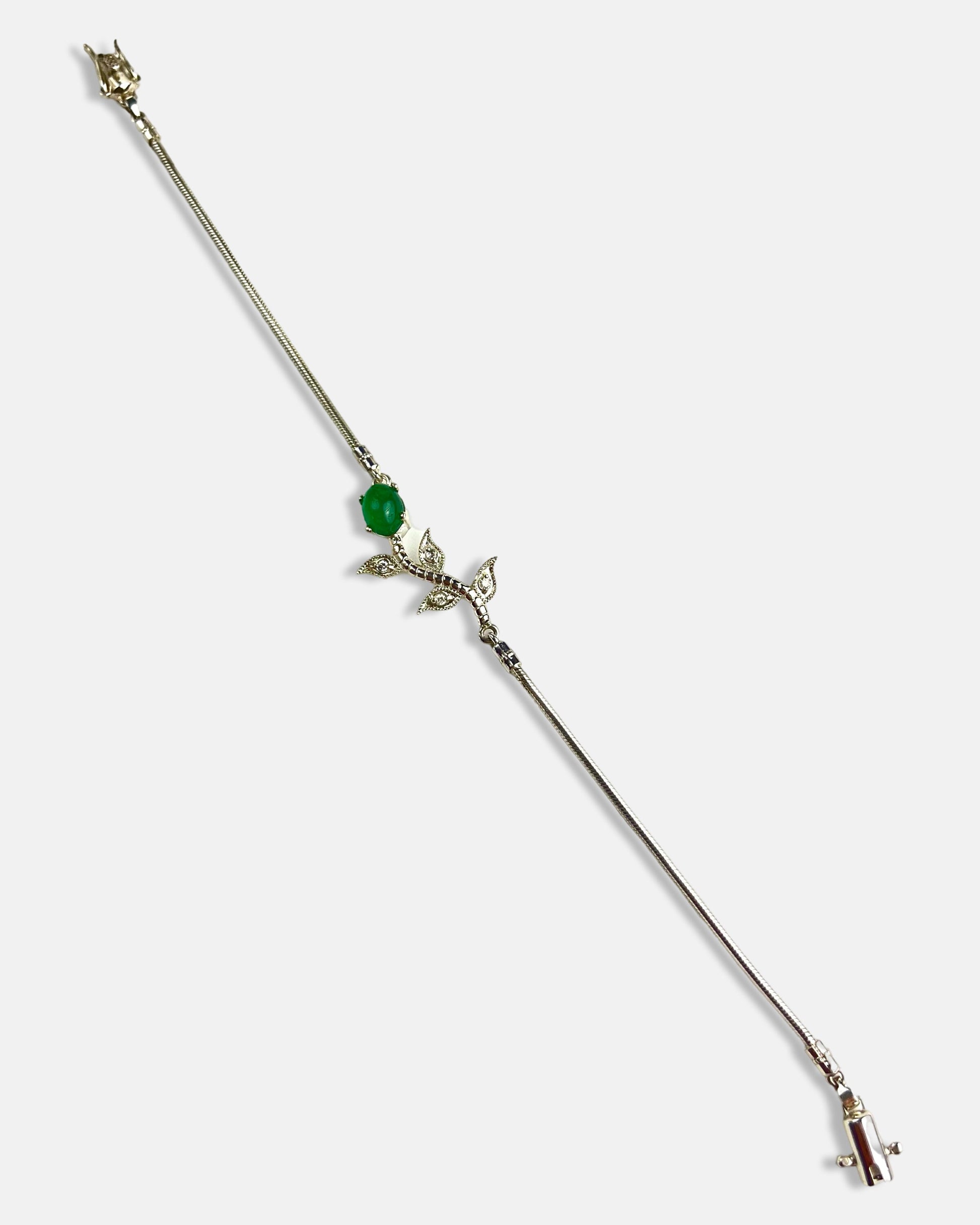 Introducing our new design beautiful and elegant Natural Zambian Emerald and Diamonds Bracelet . This piece features 1 carat of vibrant natural Zambian emeralds and 0.15 carats of sparkling G/SI diamonds. The special vintage wine bottle-inspired clasp adds a whimsical touch to this bracelet. Perfect for any occasion, this bracelet exudes timeless beauty and elegance.