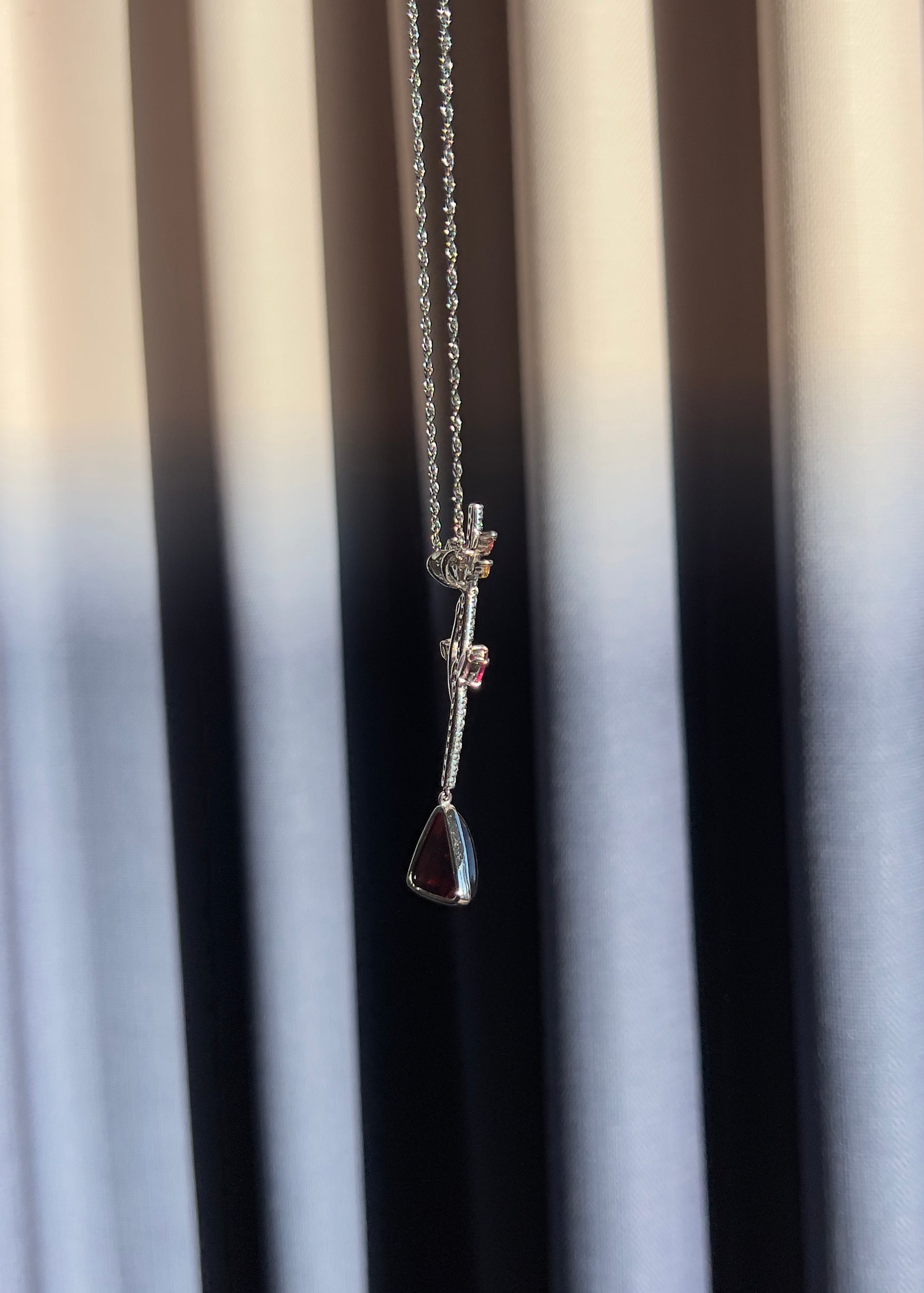 The pendant hangs elegantly from a matching chain, making it perfect for any occasion. Embrace the magic of nature and beauty with this captivating necklace—a timeless treasure for yourself or a loved one.