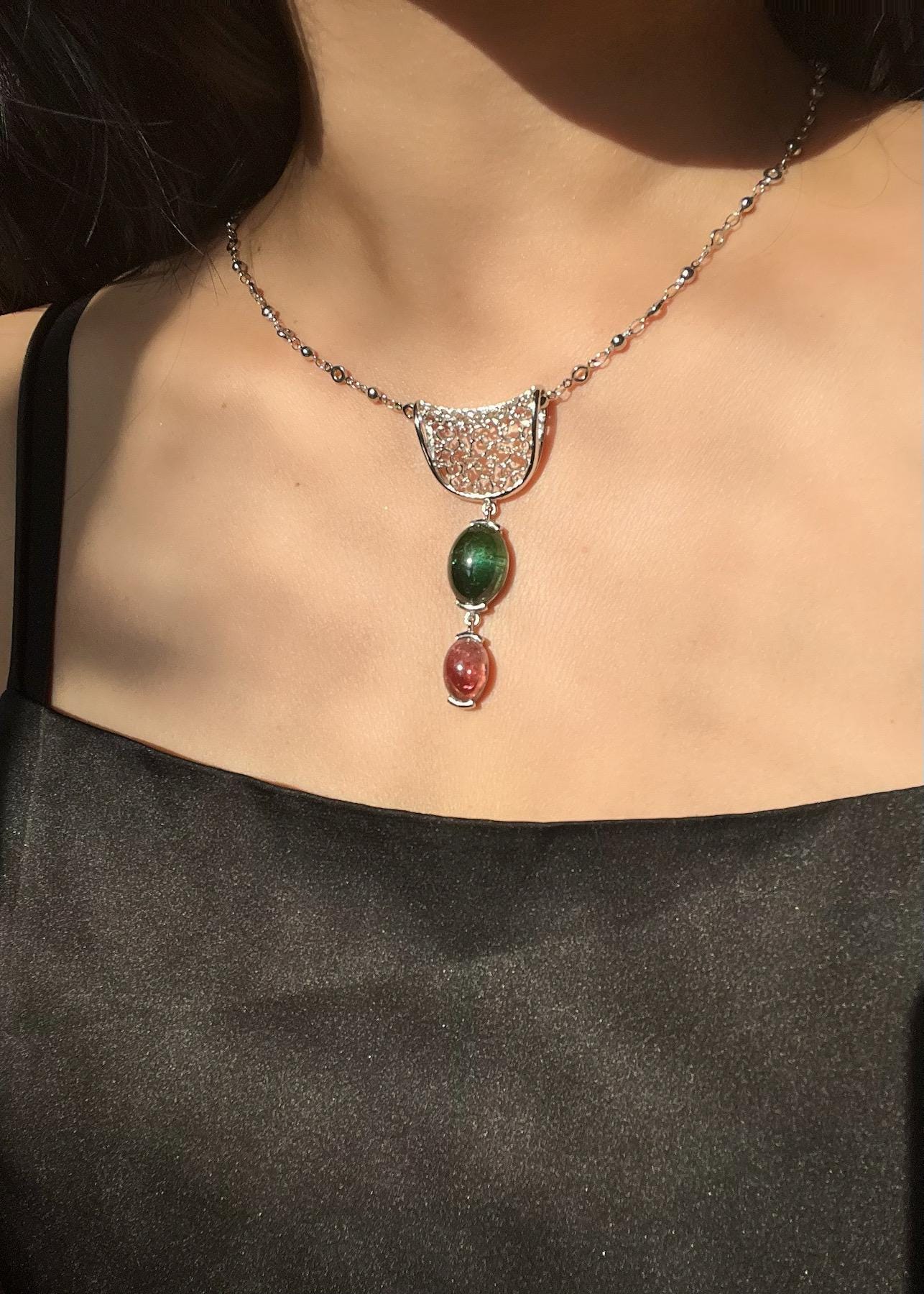Together, they capture that rare duality of grounded elegance and vivid emotion—like sunlight filtered through a deep forest canopy. The chain itself is adorned with subtle beading for texture and shine, and the overall feel is refined, ethereal, and so easy to wear.