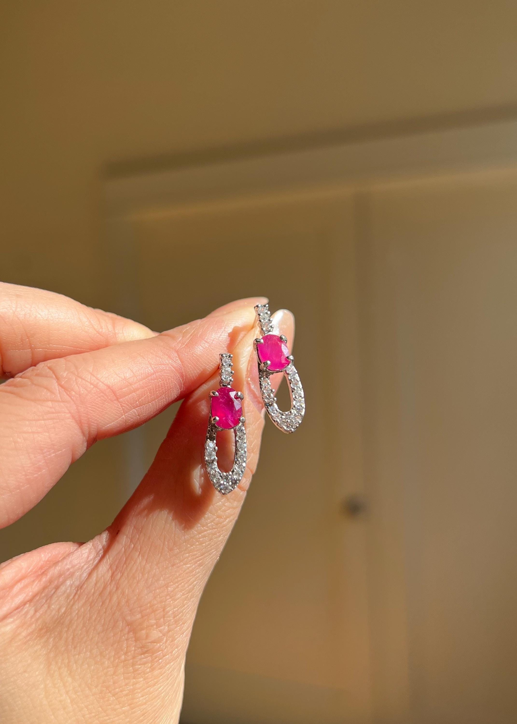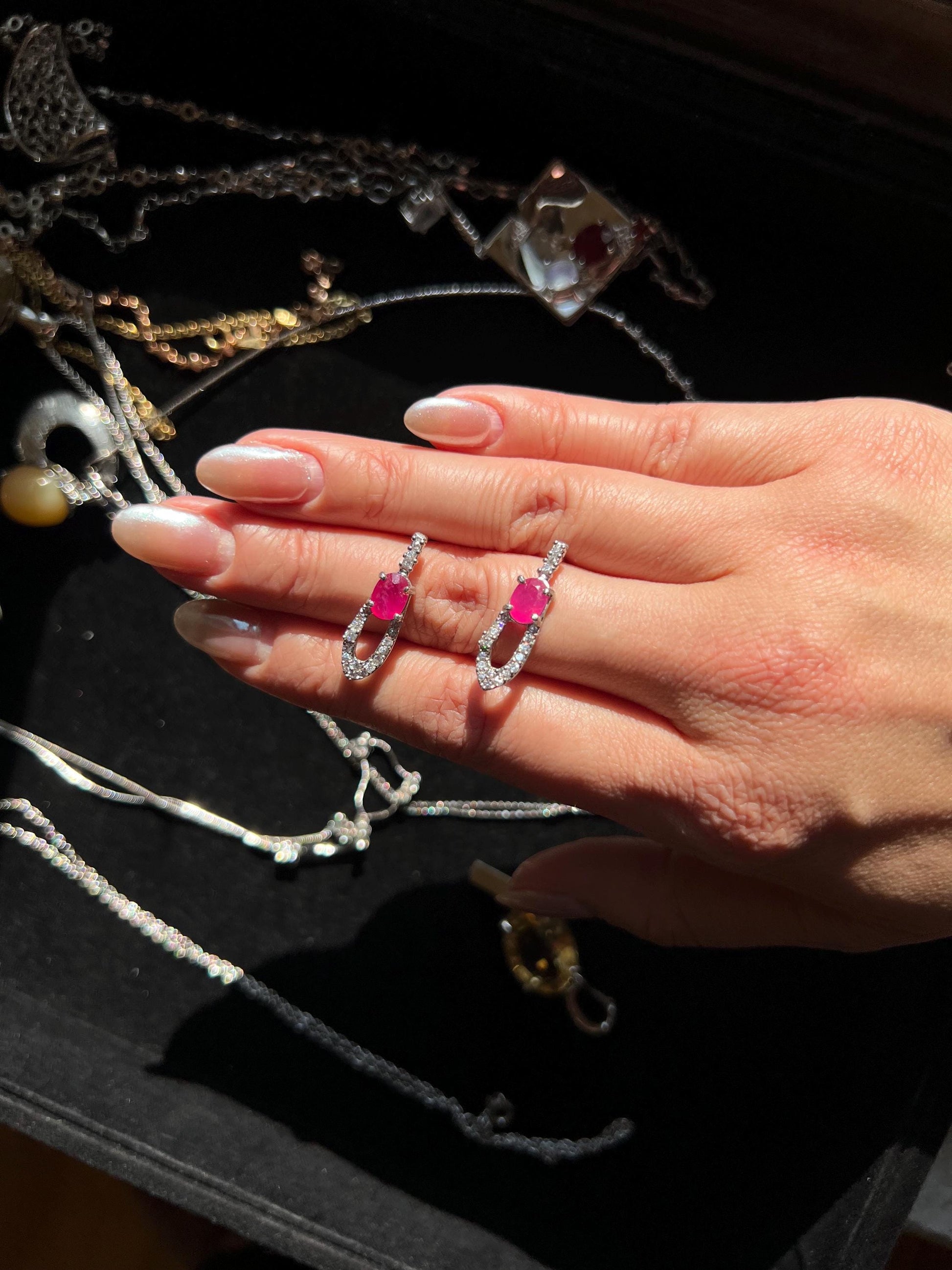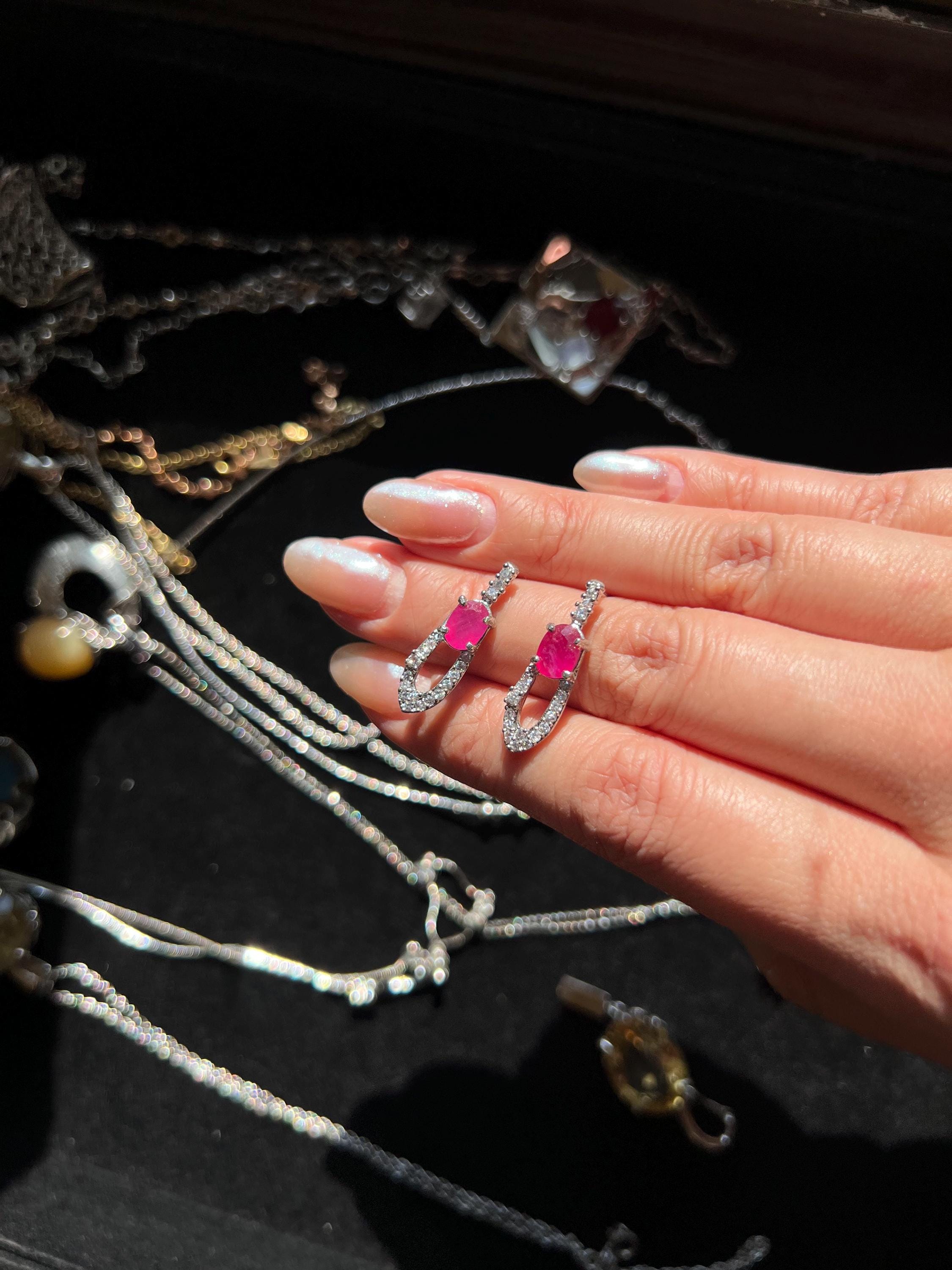 These natural ruby and diamond studs feature a striking oval-cut ruby in , heat-treated to enhance the natural brilliance of the gem. Nestled into an open diamond arc setting, they offer a refined silhouette that’s both clean and bold.