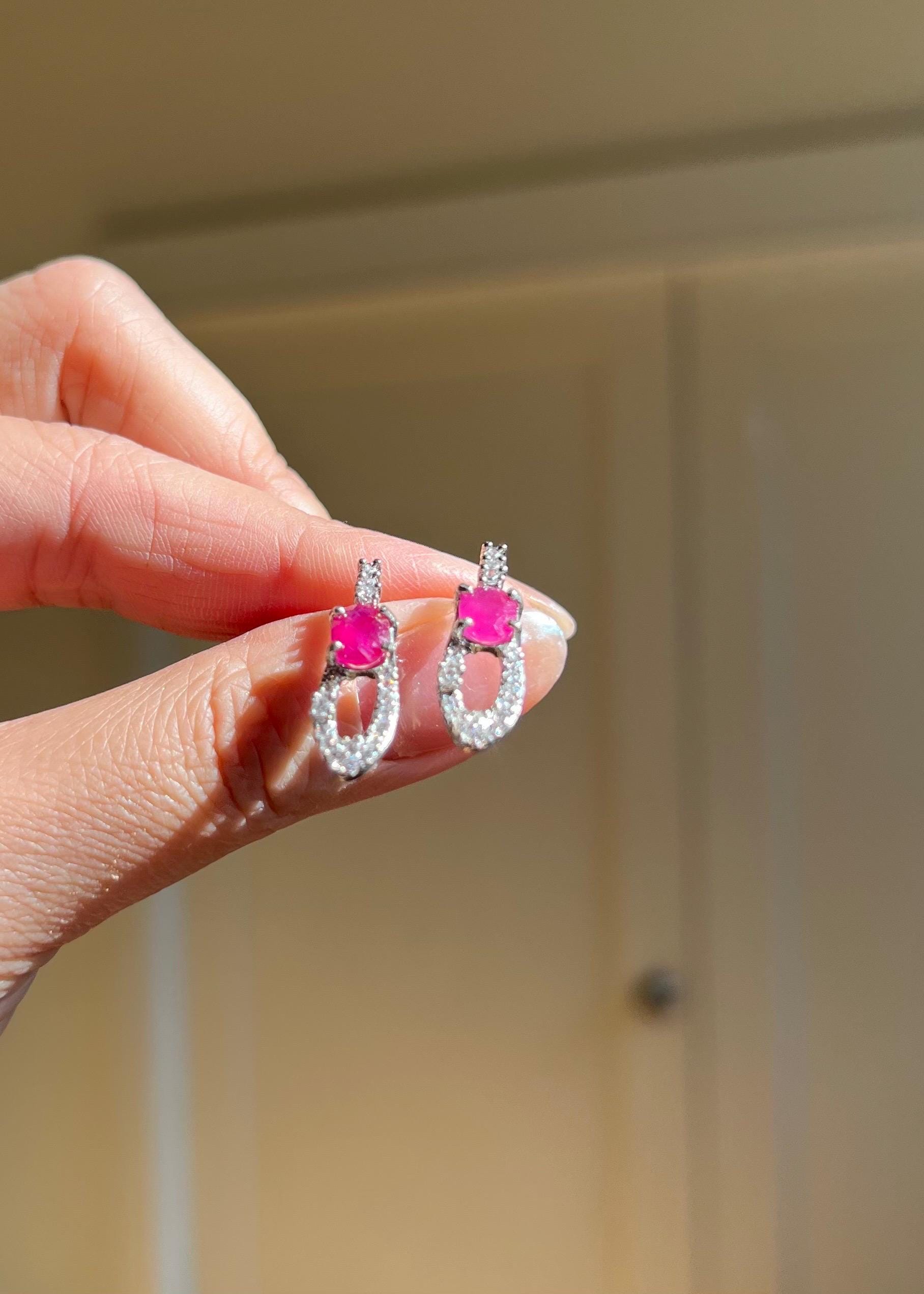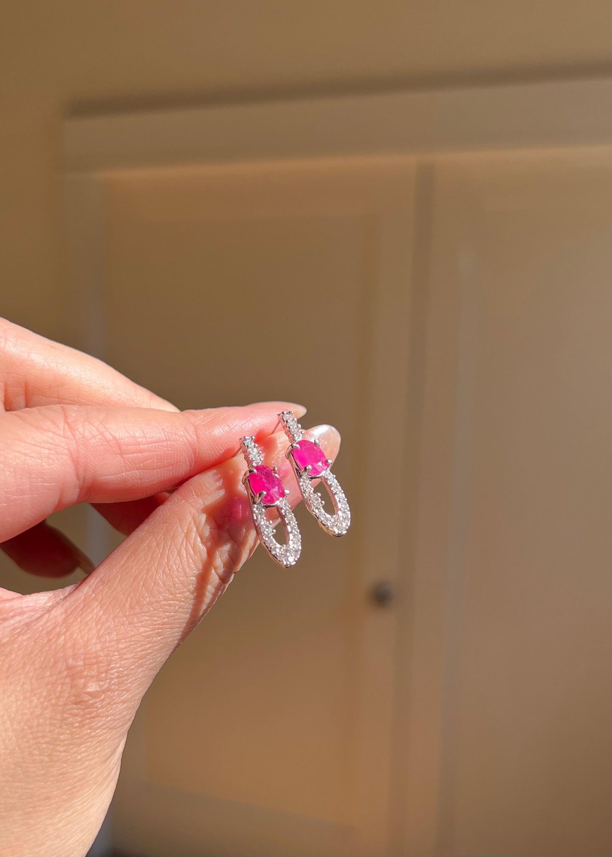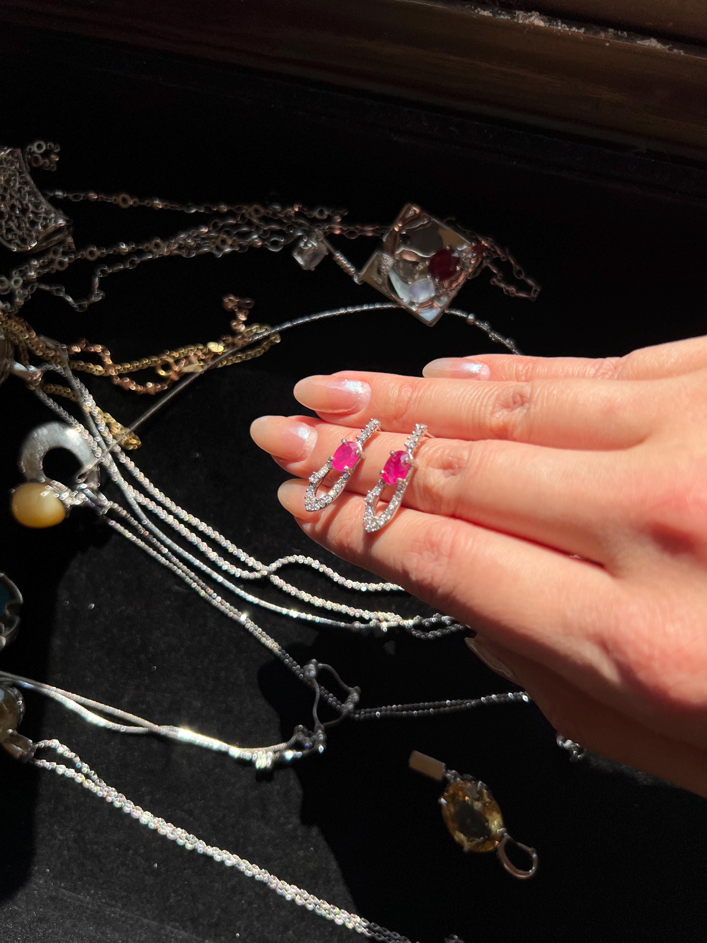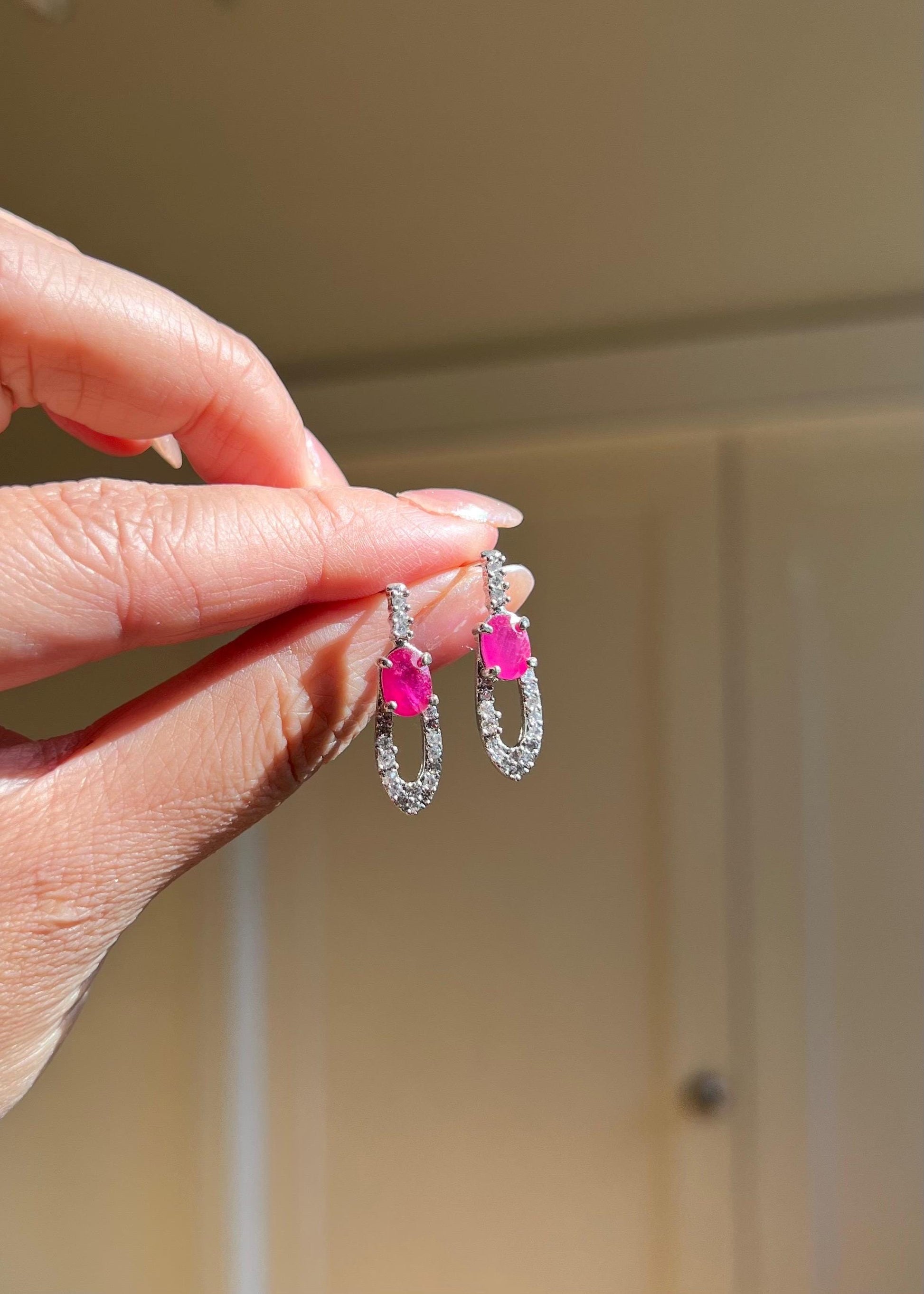 These natural ruby and diamond studs feature a striking oval-cut ruby in , heat-treated to enhance the natural brilliance of the gem. Nestled into an open diamond arc setting, they offer a refined silhouette that’s both clean and bold.