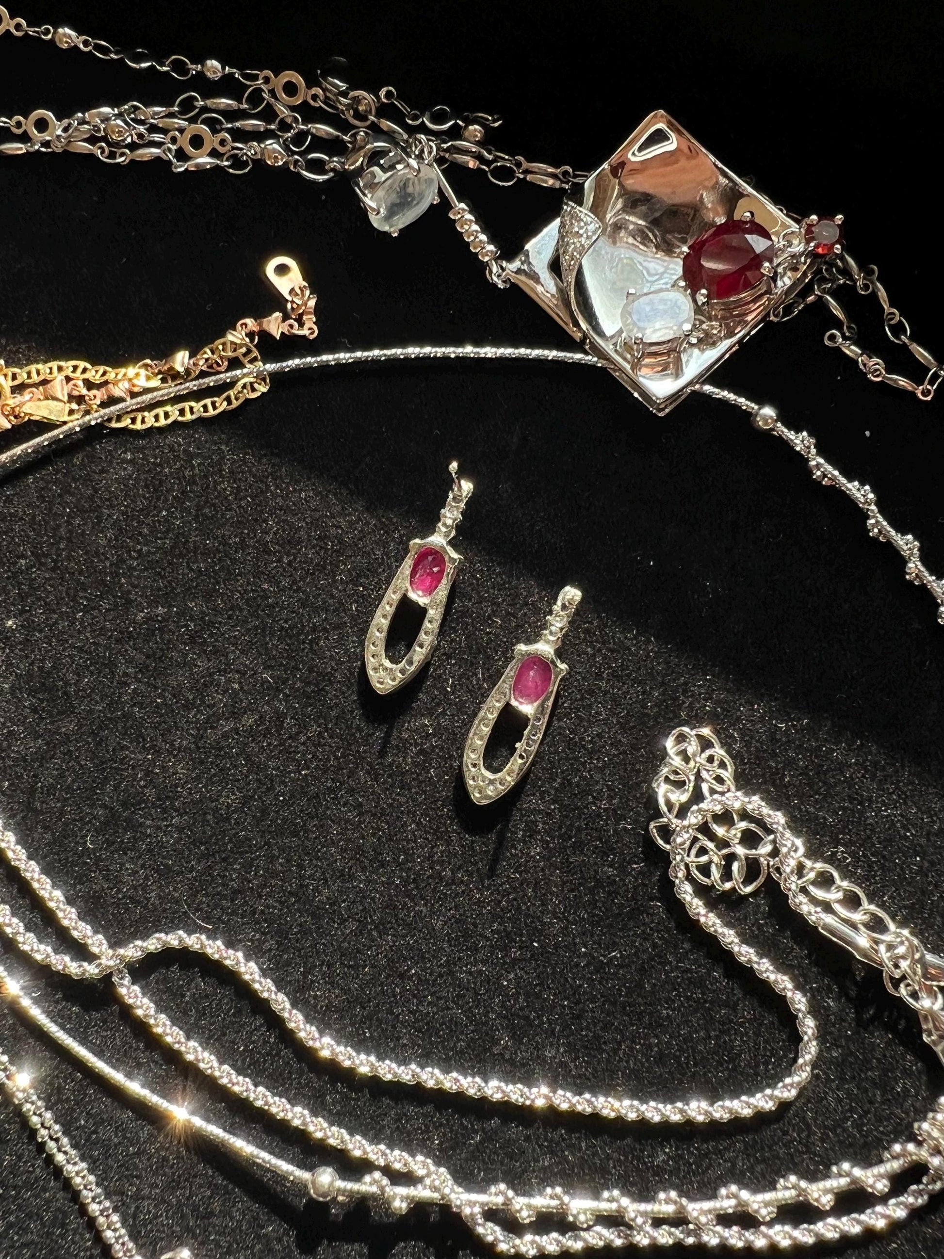 • Gemstones: Natural oval-cut rubies, heat-treated, 1.8ct total