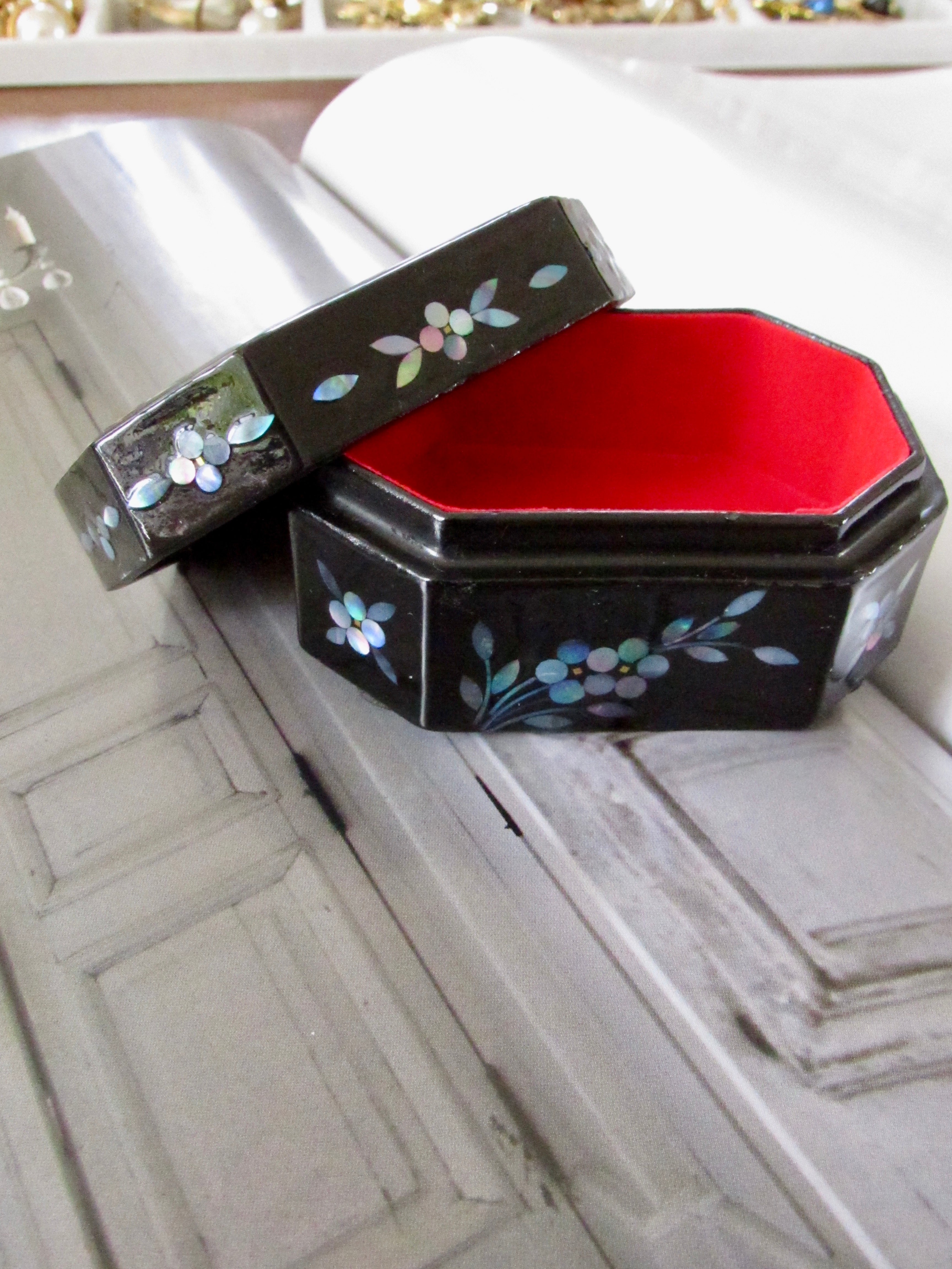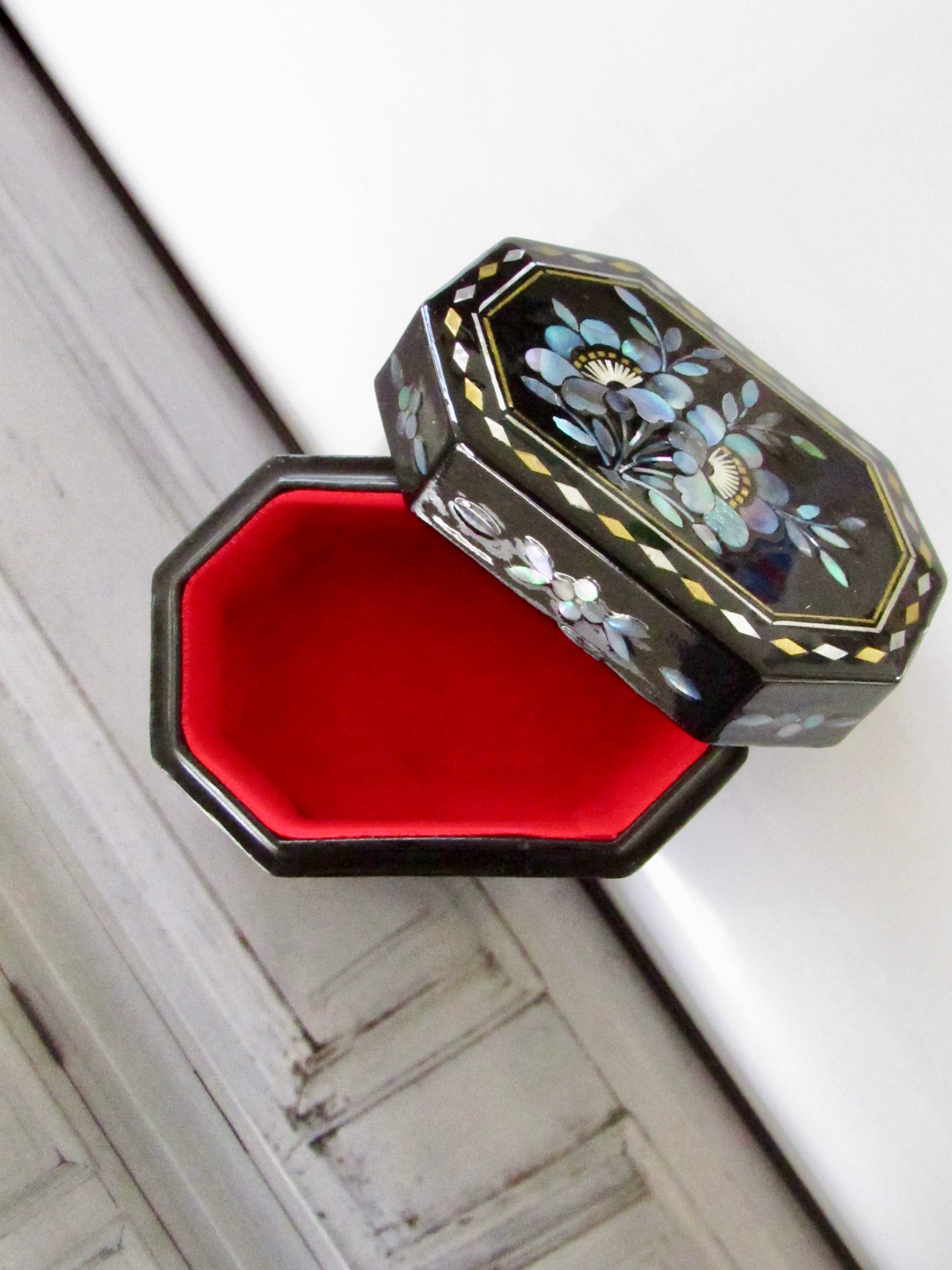 Octagon Shape Mother of Pearl Lacquer Trinket box