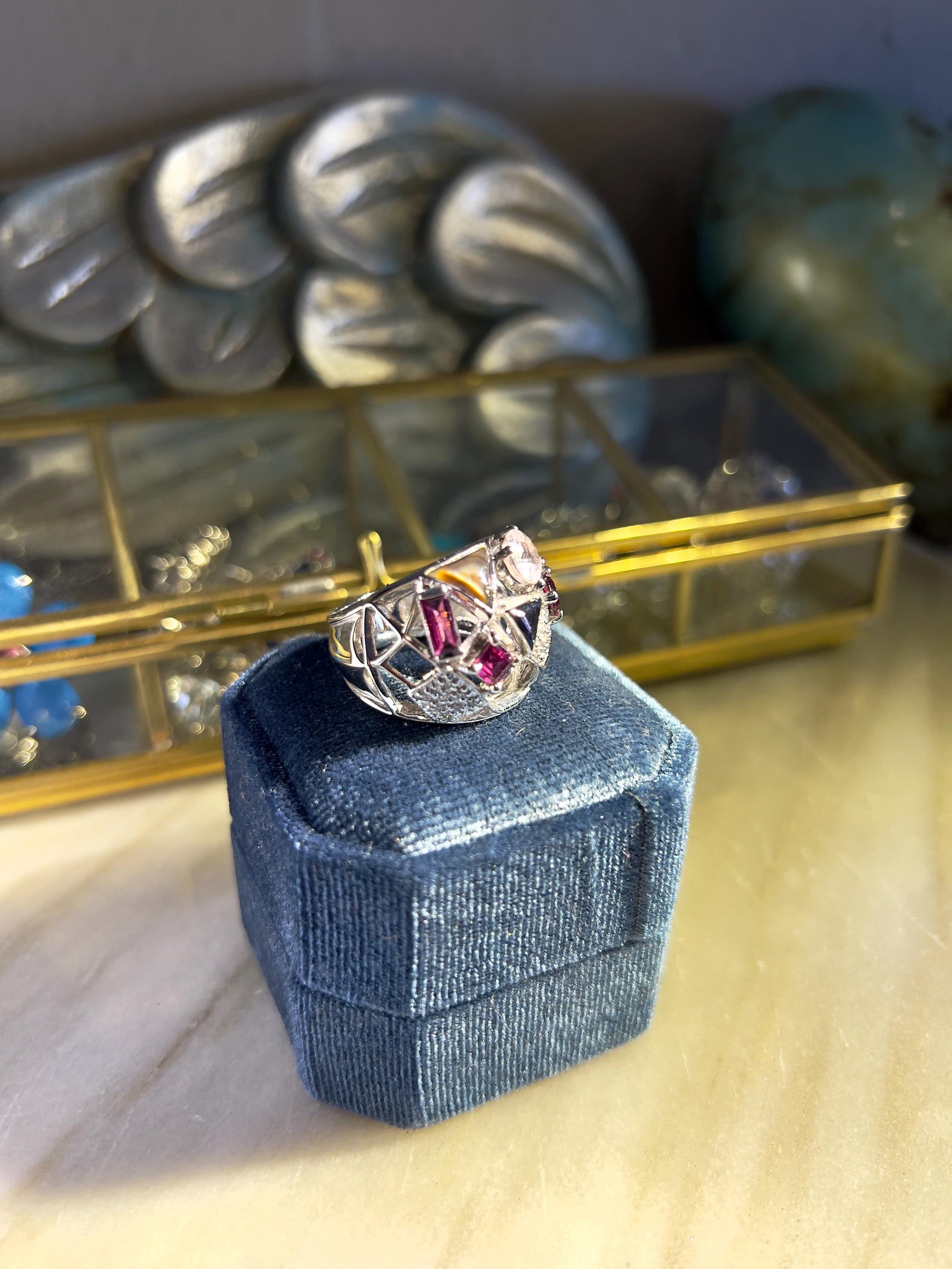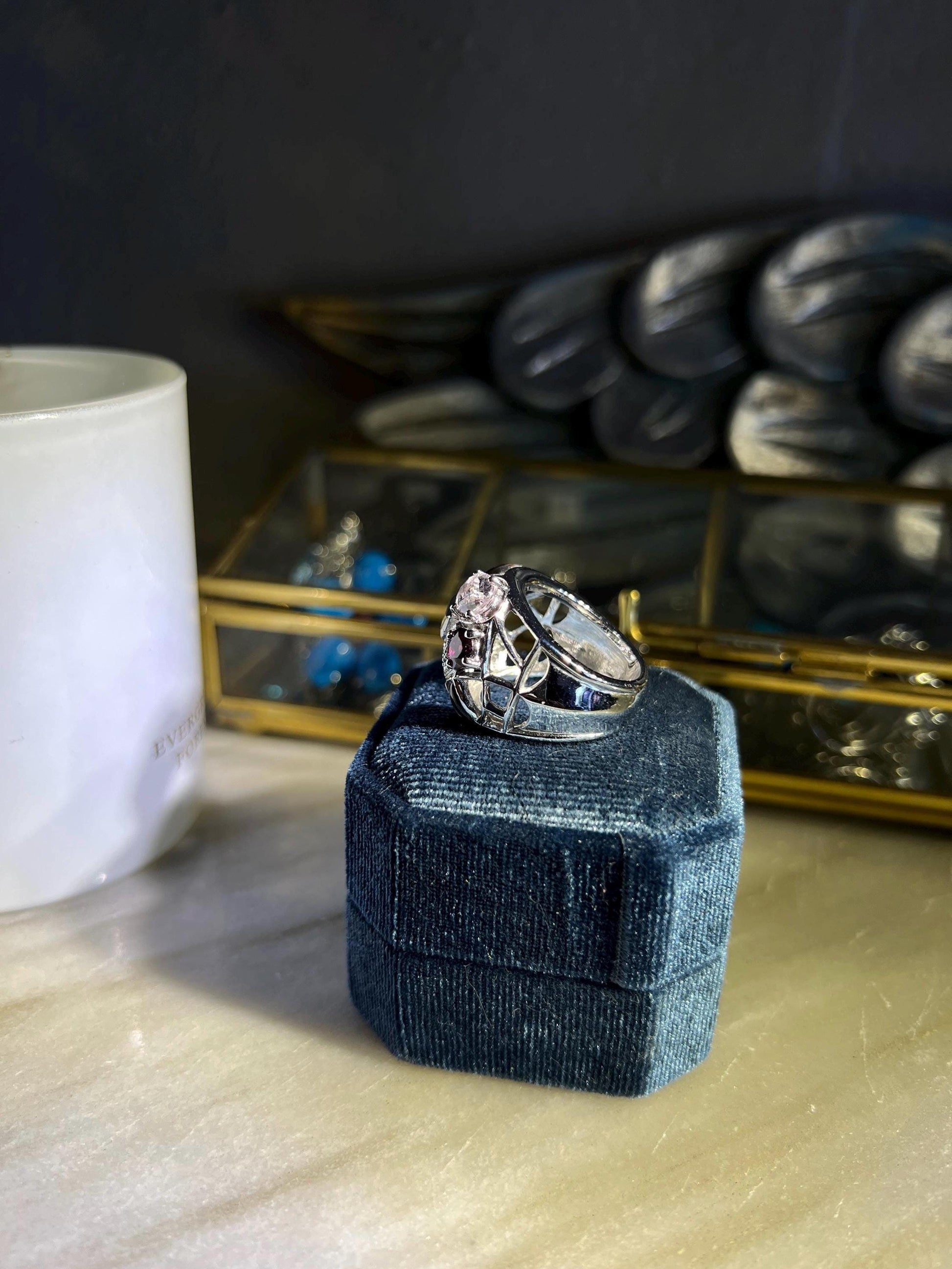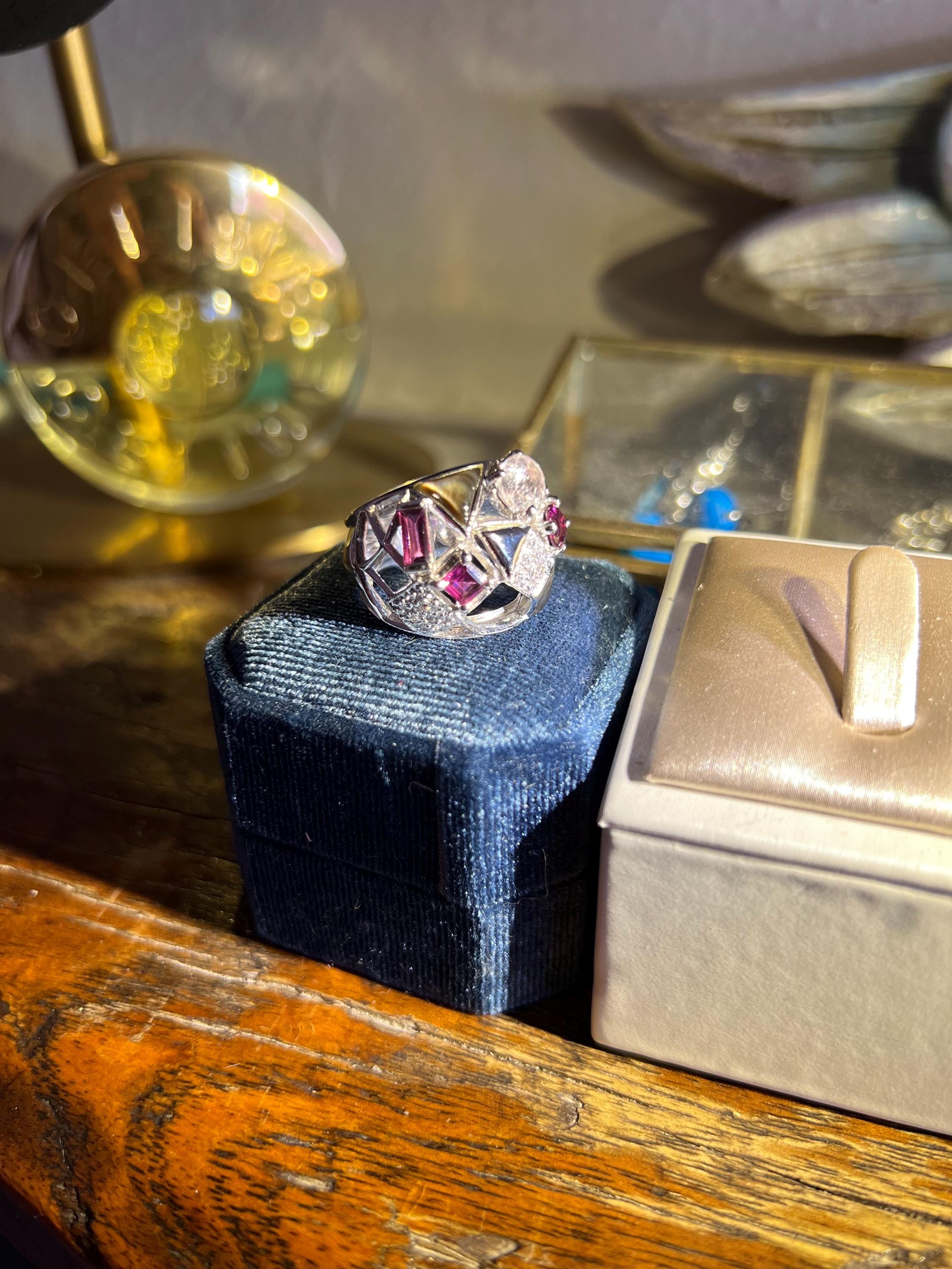 This ring is a size US 7.5 and will not be remade—she’s the only one in the world. Designed as an heirloom for modern romantics, we kept this on our studio desk a little longer than usual because we just weren’t ready to part with it. Now we’re sending it off into the world to find its perfect match.