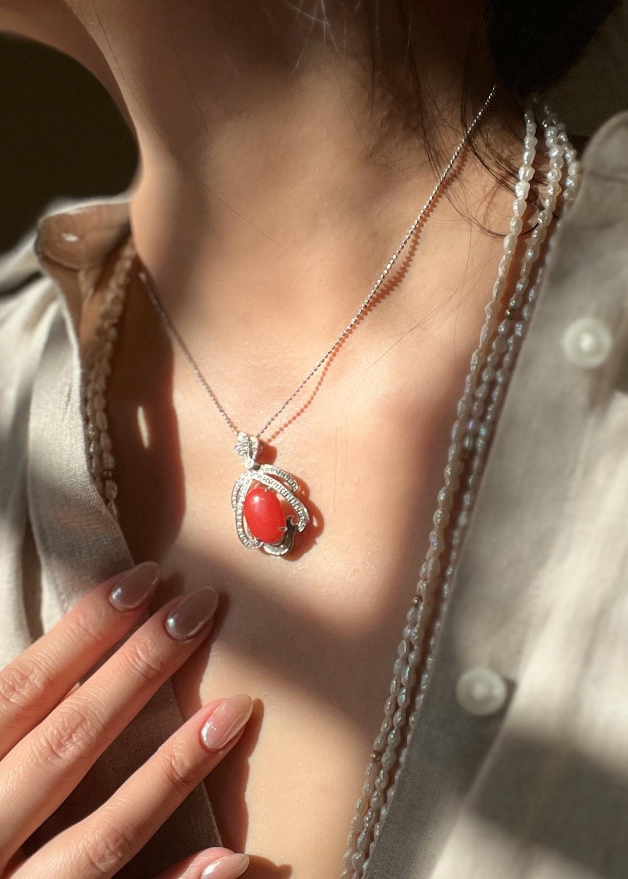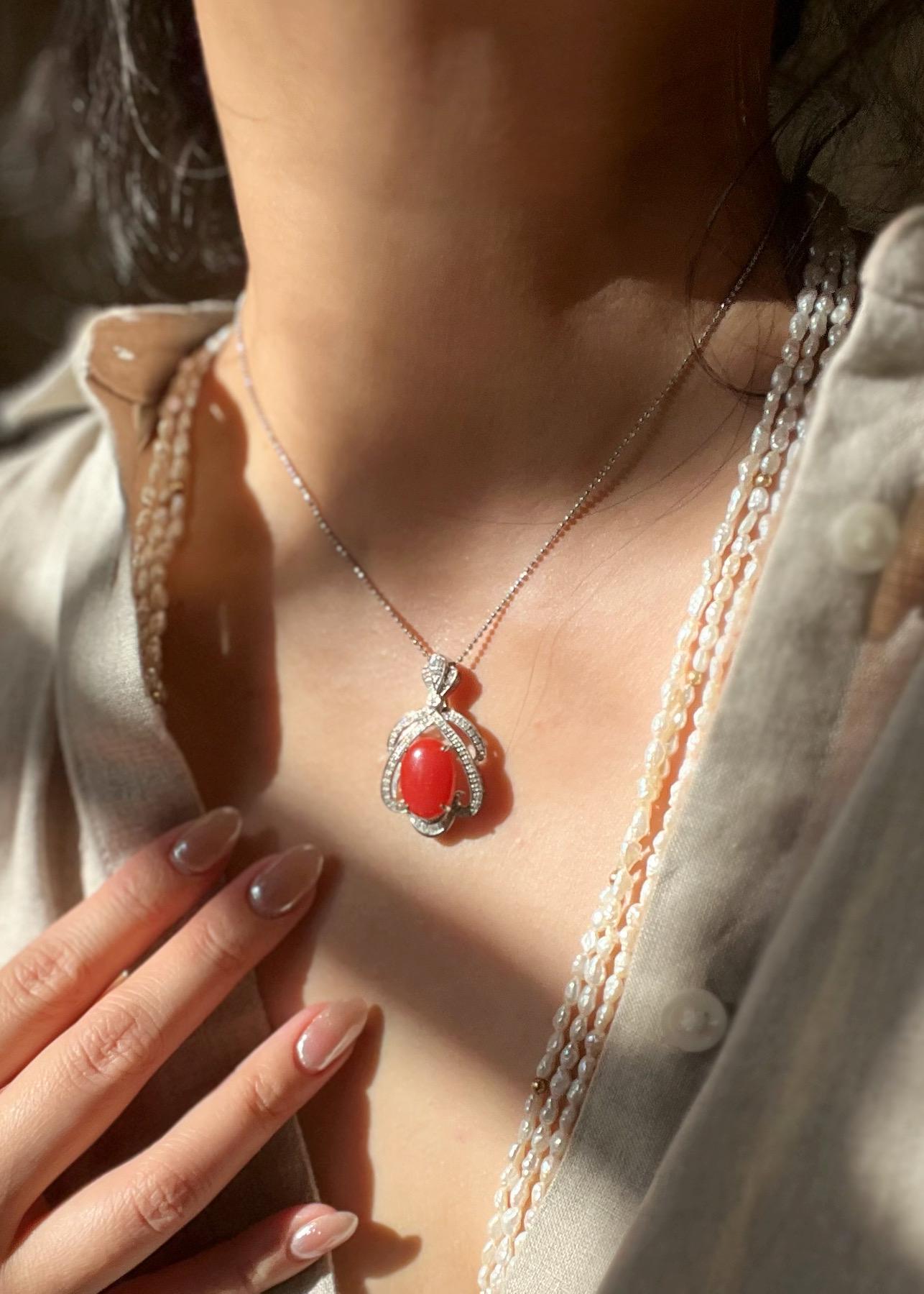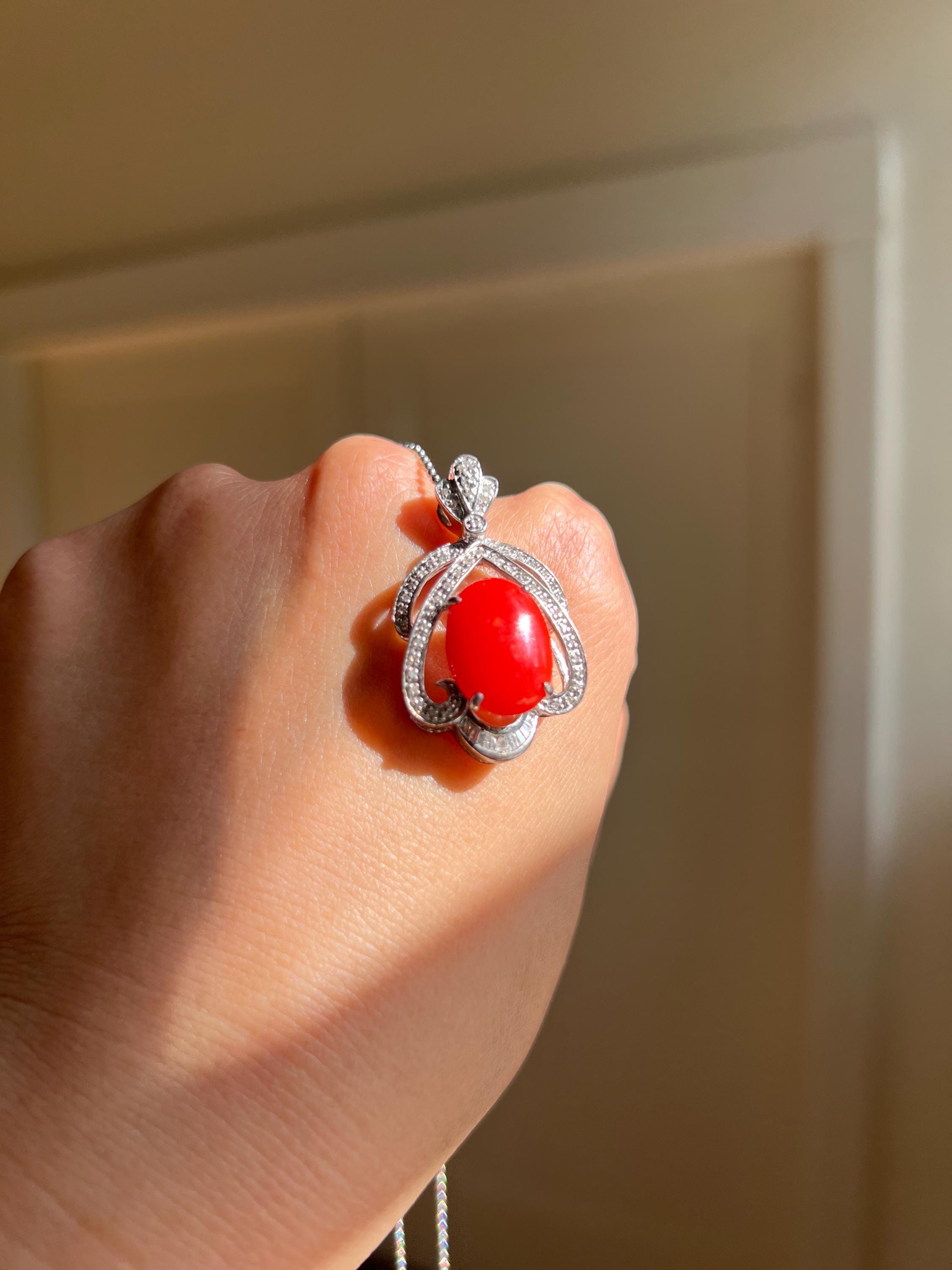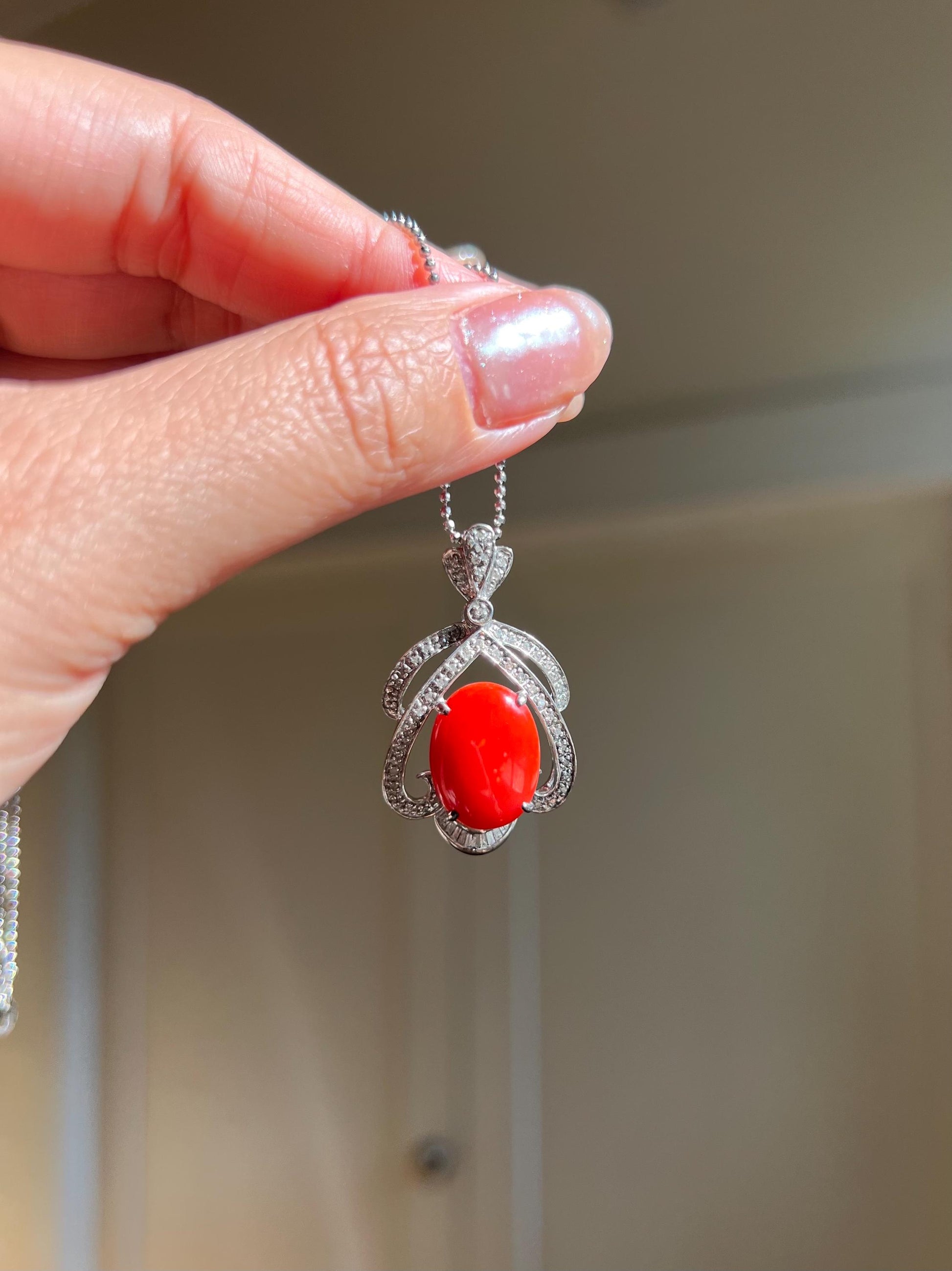 One-of-a-Kind Coral Diamond Necklace in 18K Solid WhiteGold