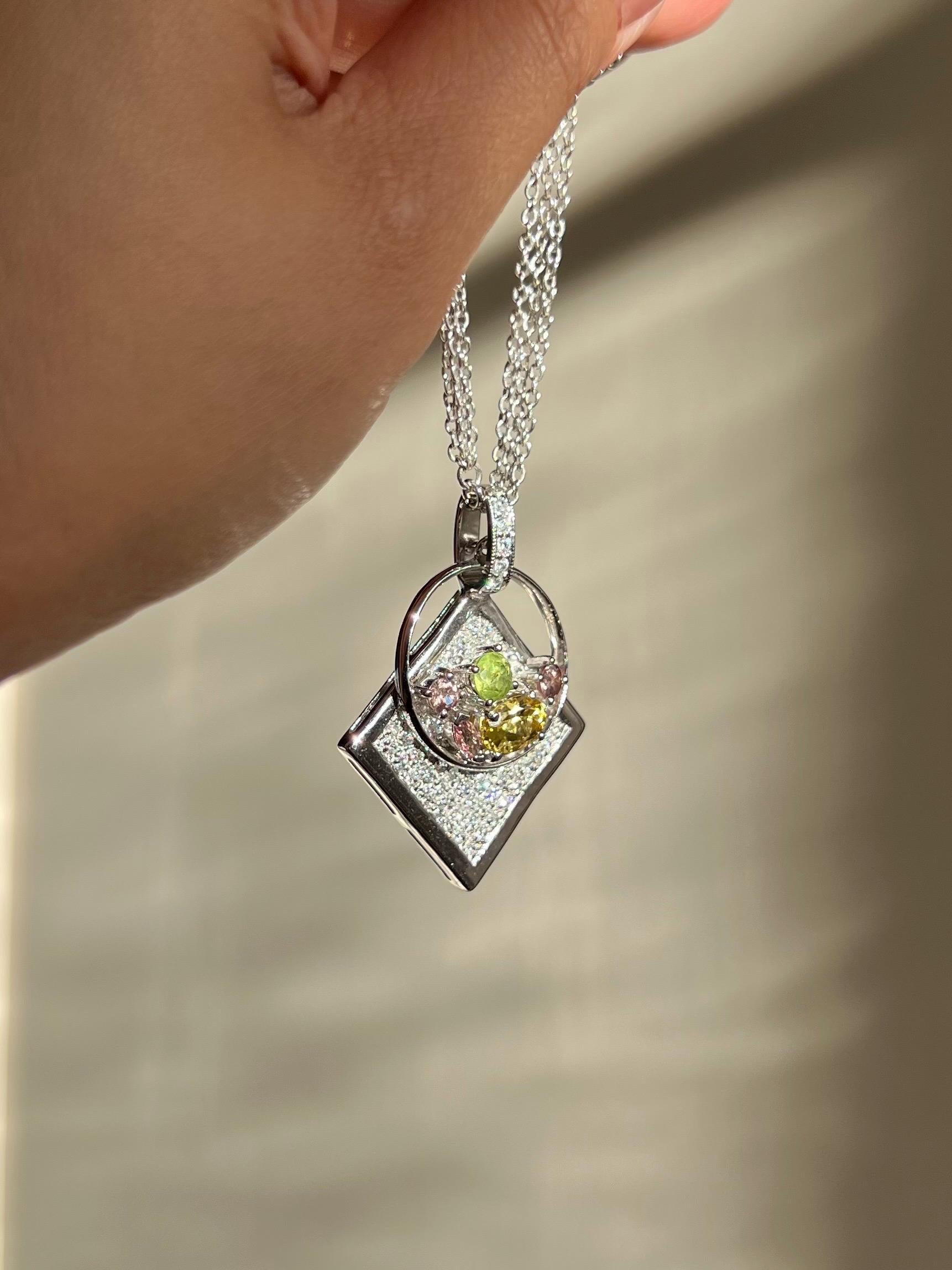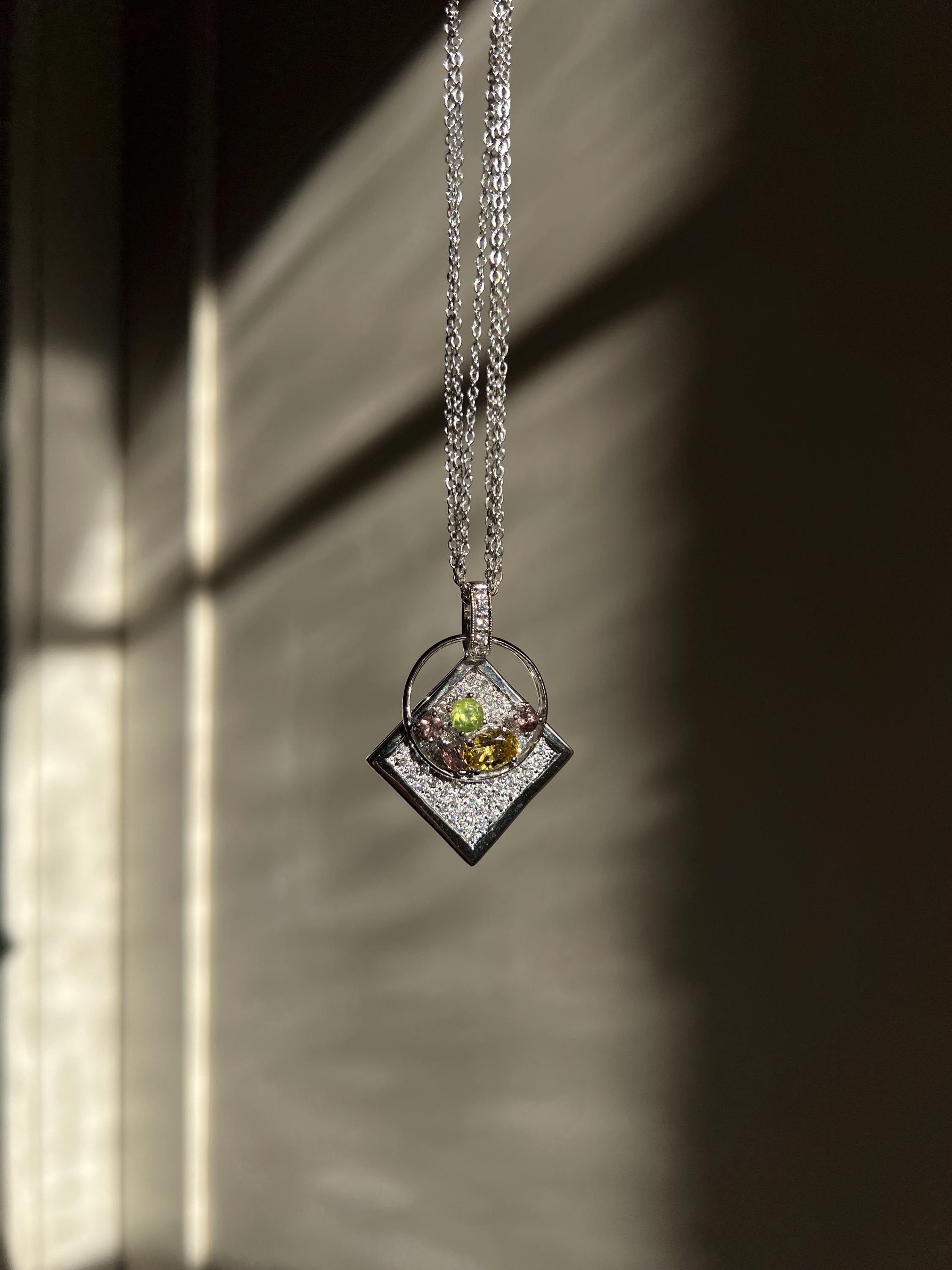 This radiant pendant is a celebration of rare gems and thoughtful design — created for those who appreciate one-of-a-kind luxury with a sculptural flair.