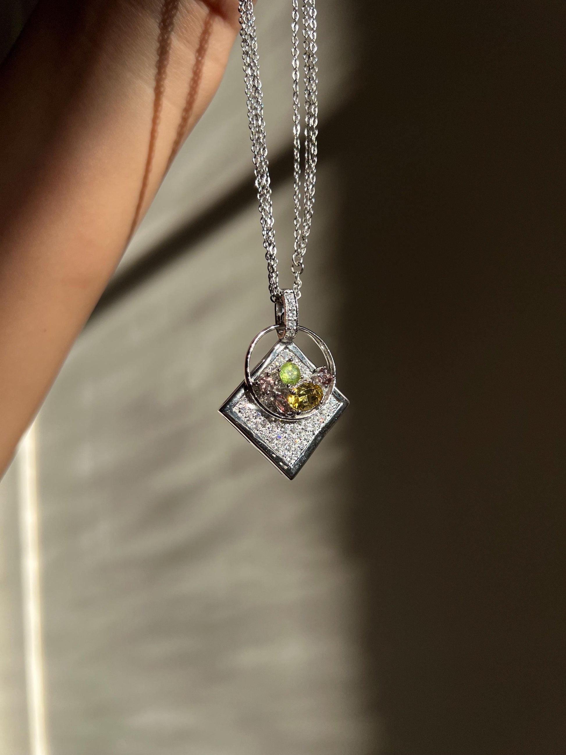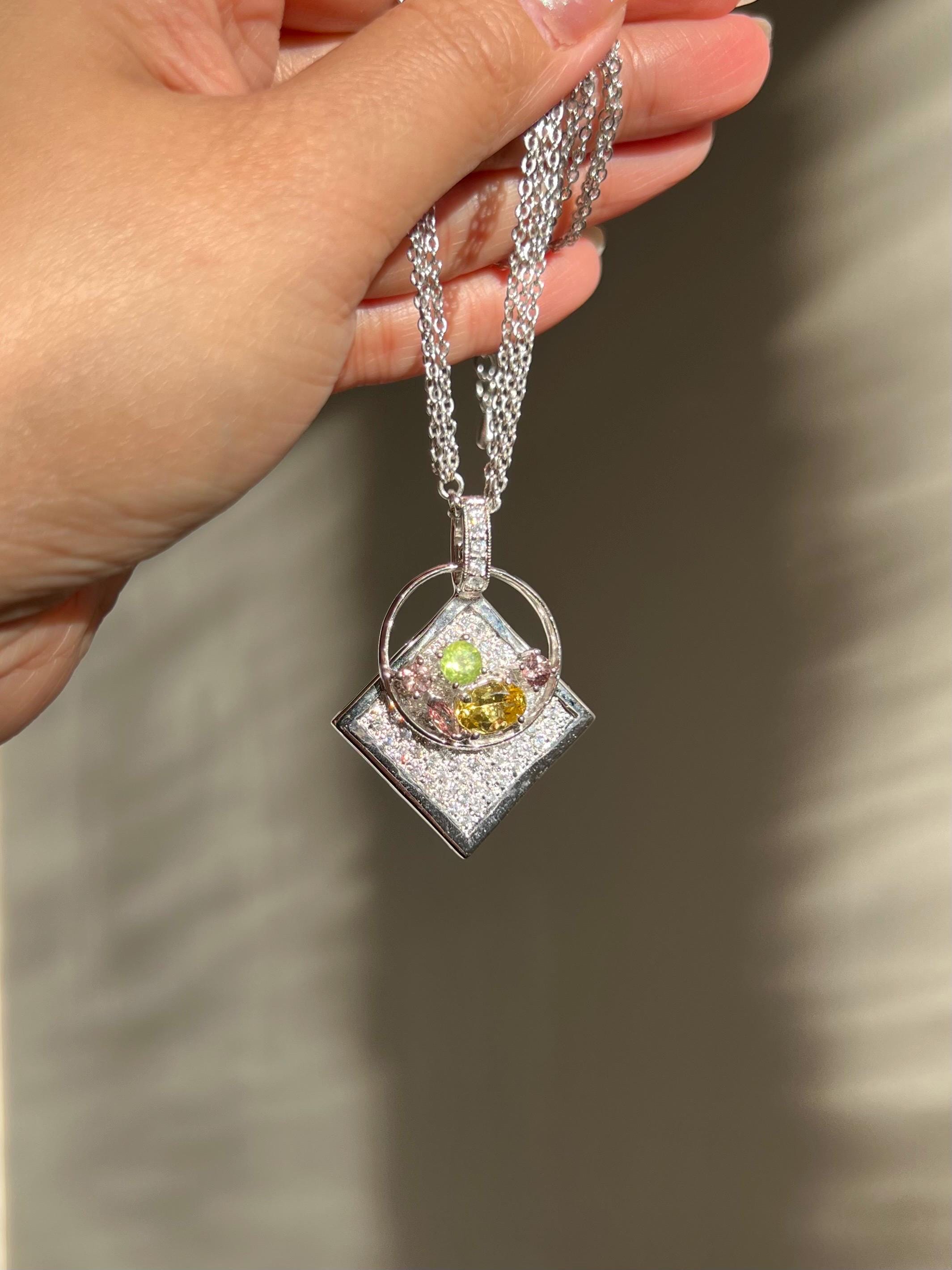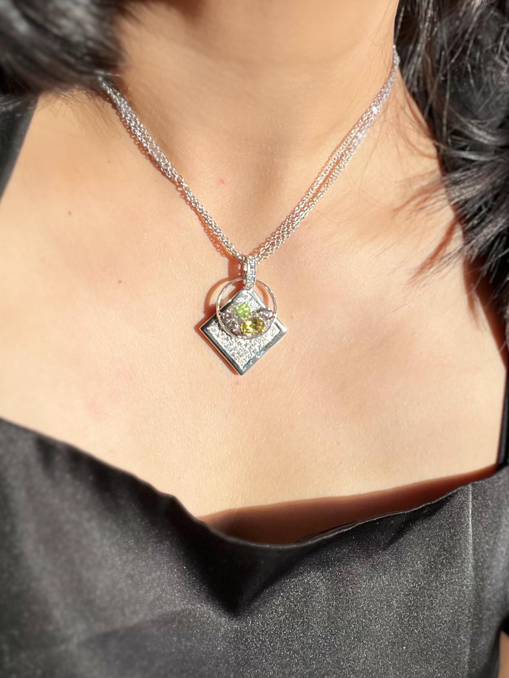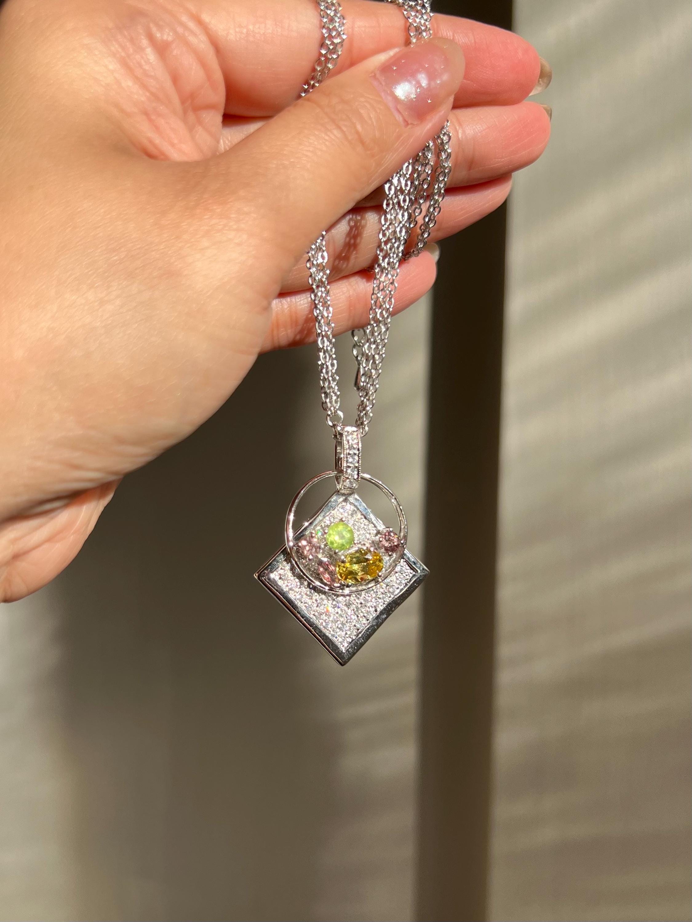 One of a Kind Pendant Necklace with Natural Golden Beryl, Peridot & Color Change Garnet