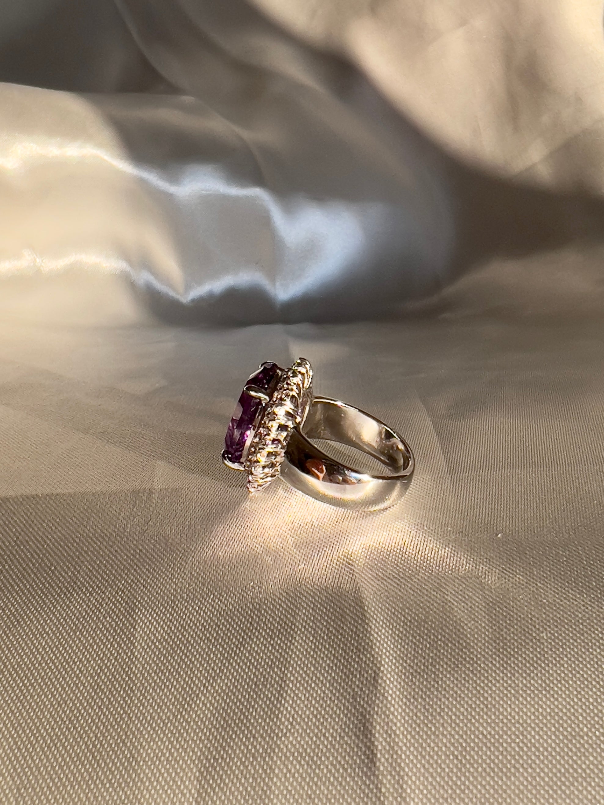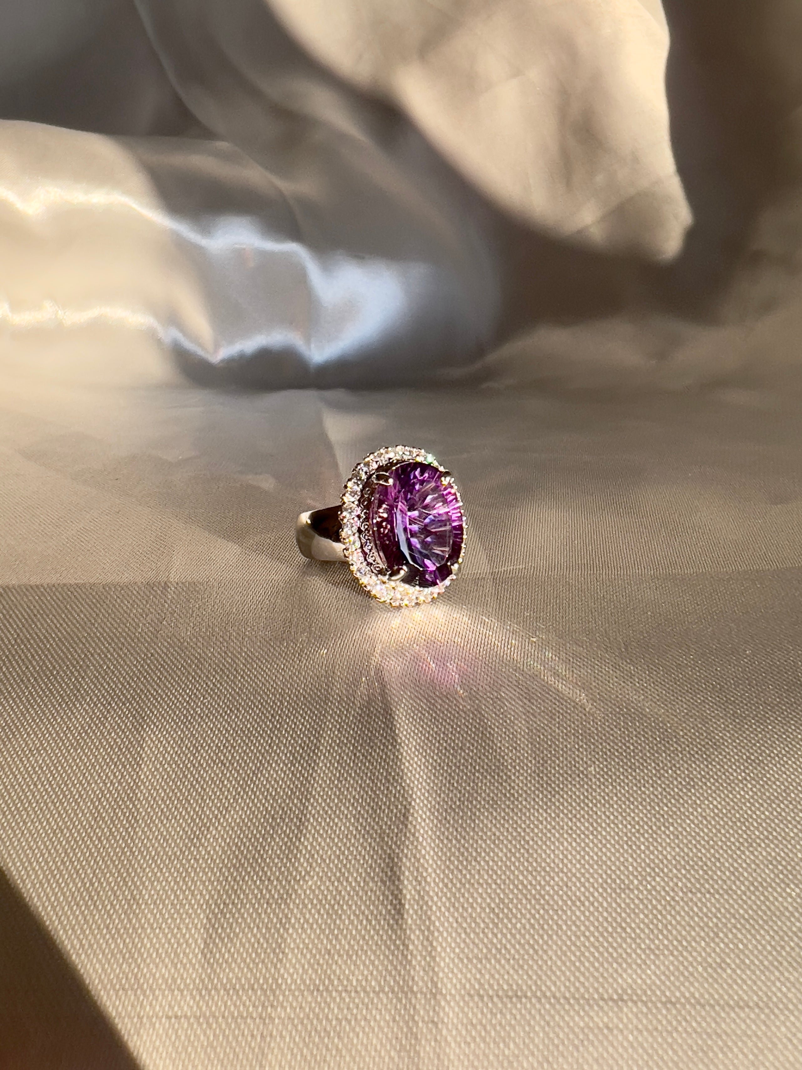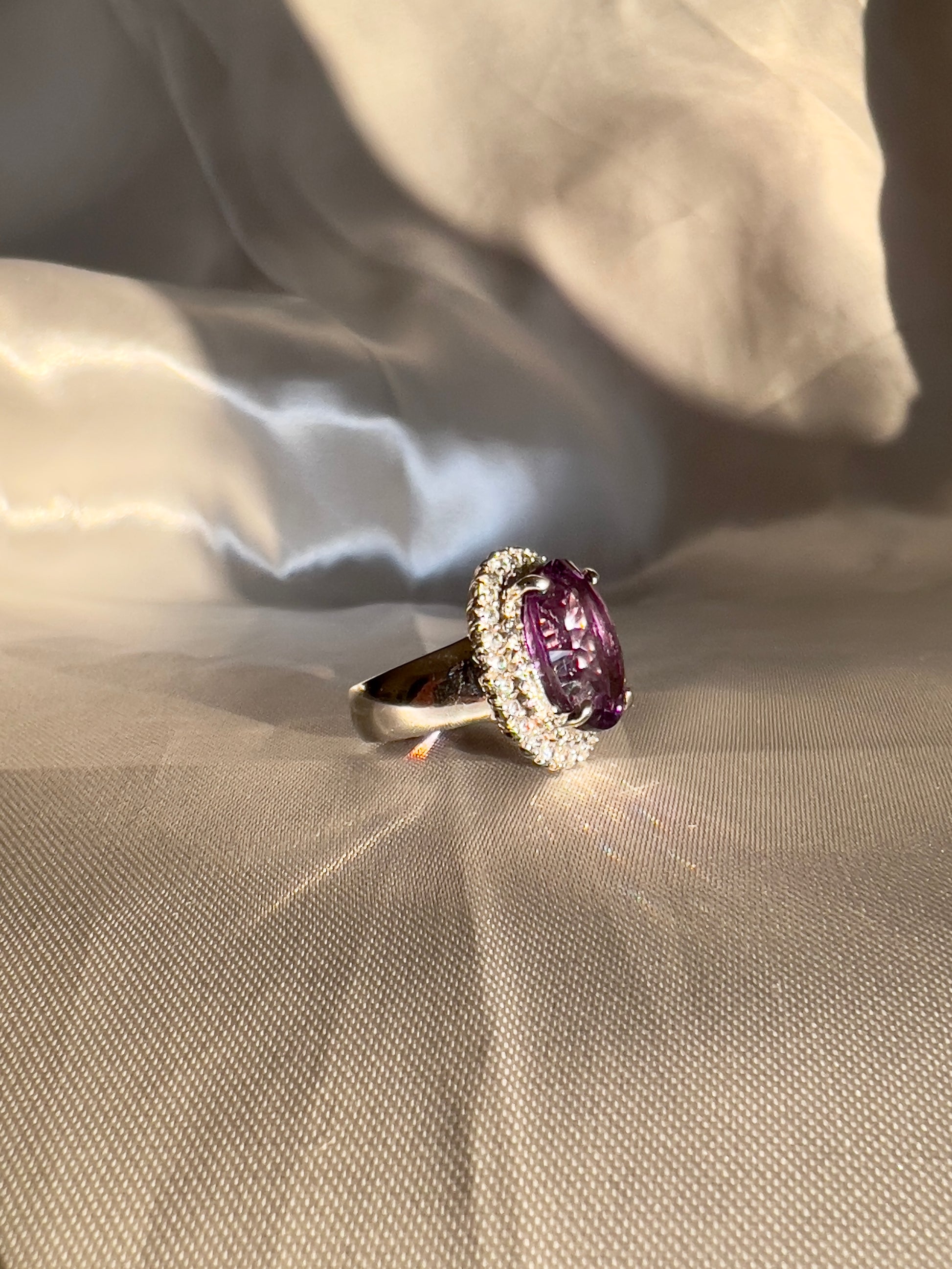 Introducing a stunning cocktail ring featuring a luscious natural oval-cut deep royal purple amethyst from Zambia. Luxurious yet classic, this ring is a true statement piece.