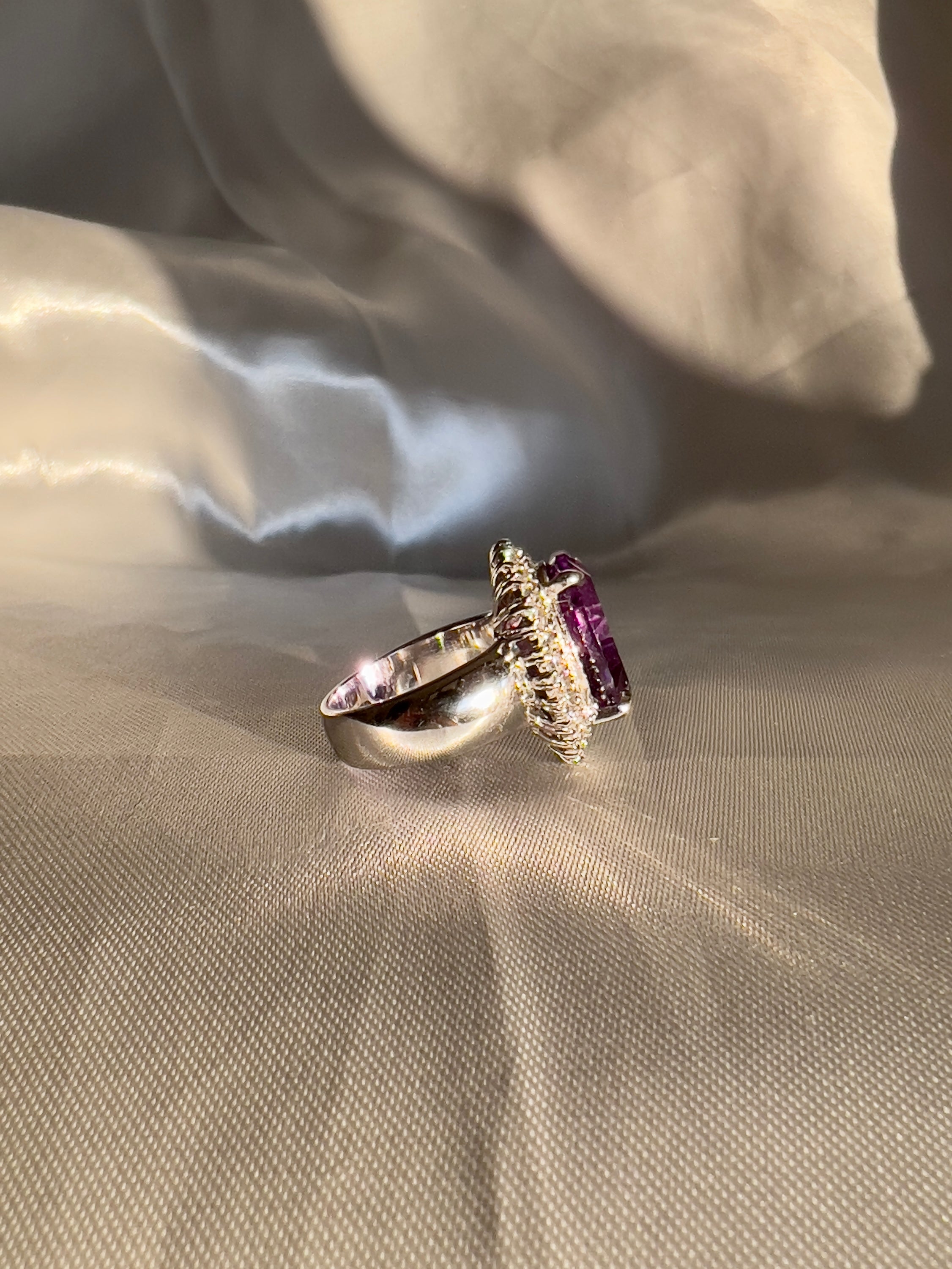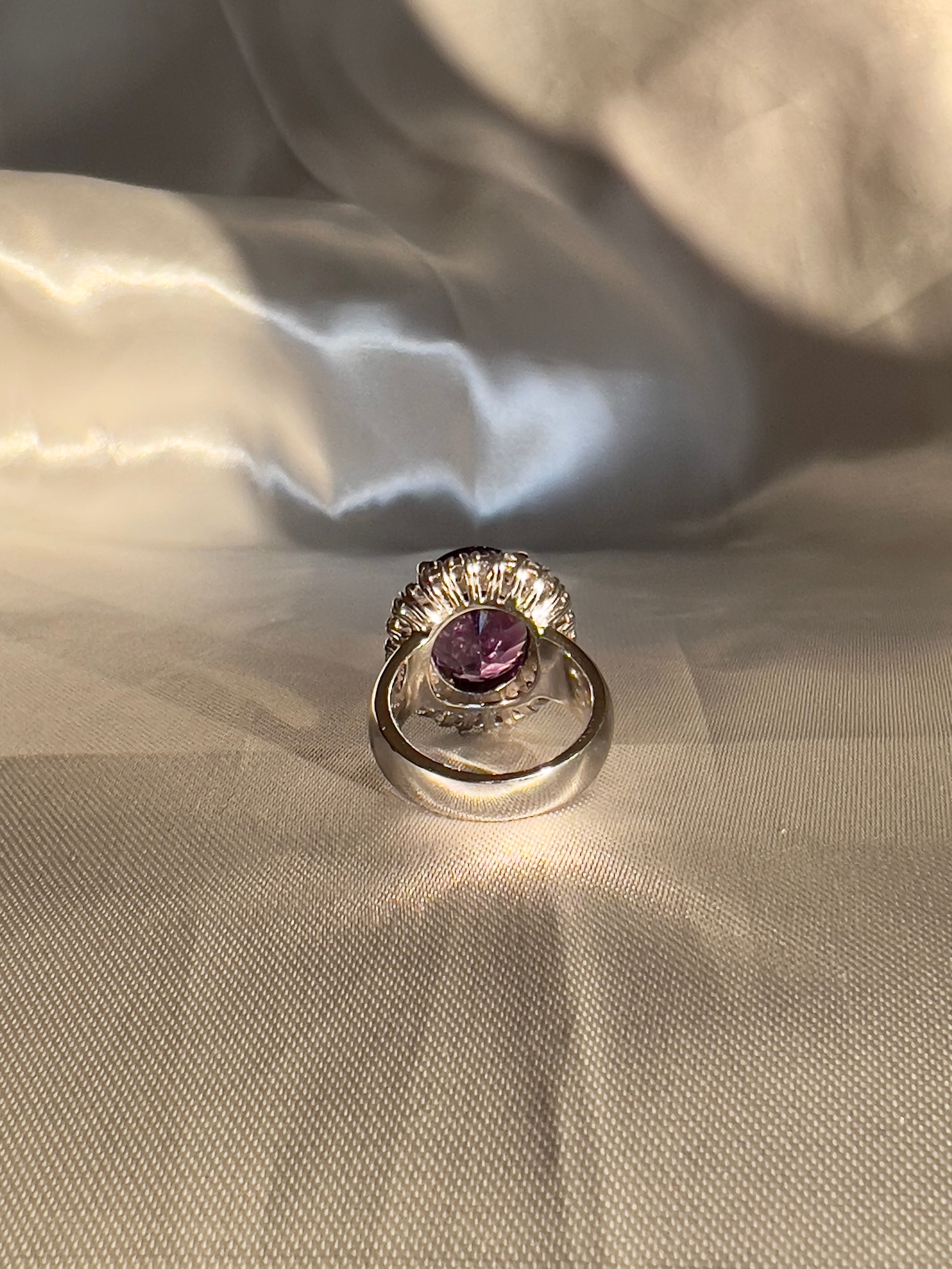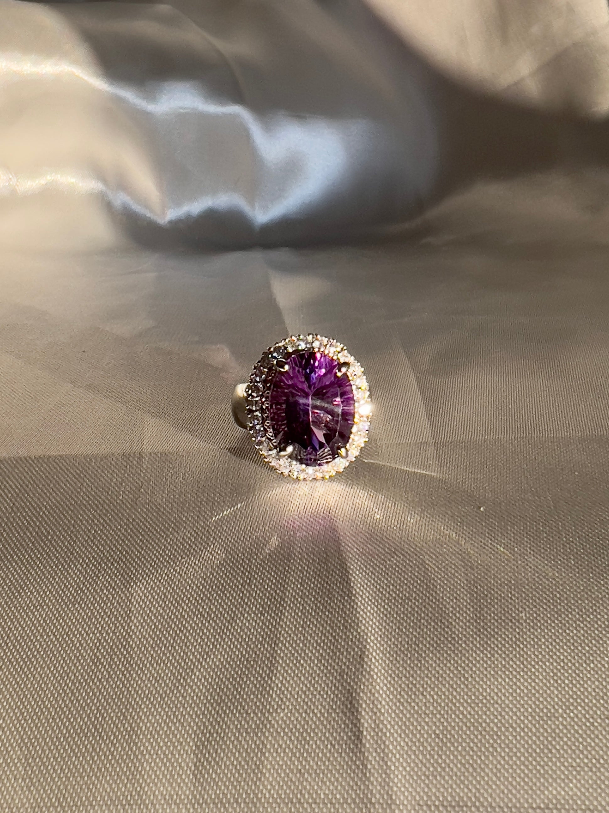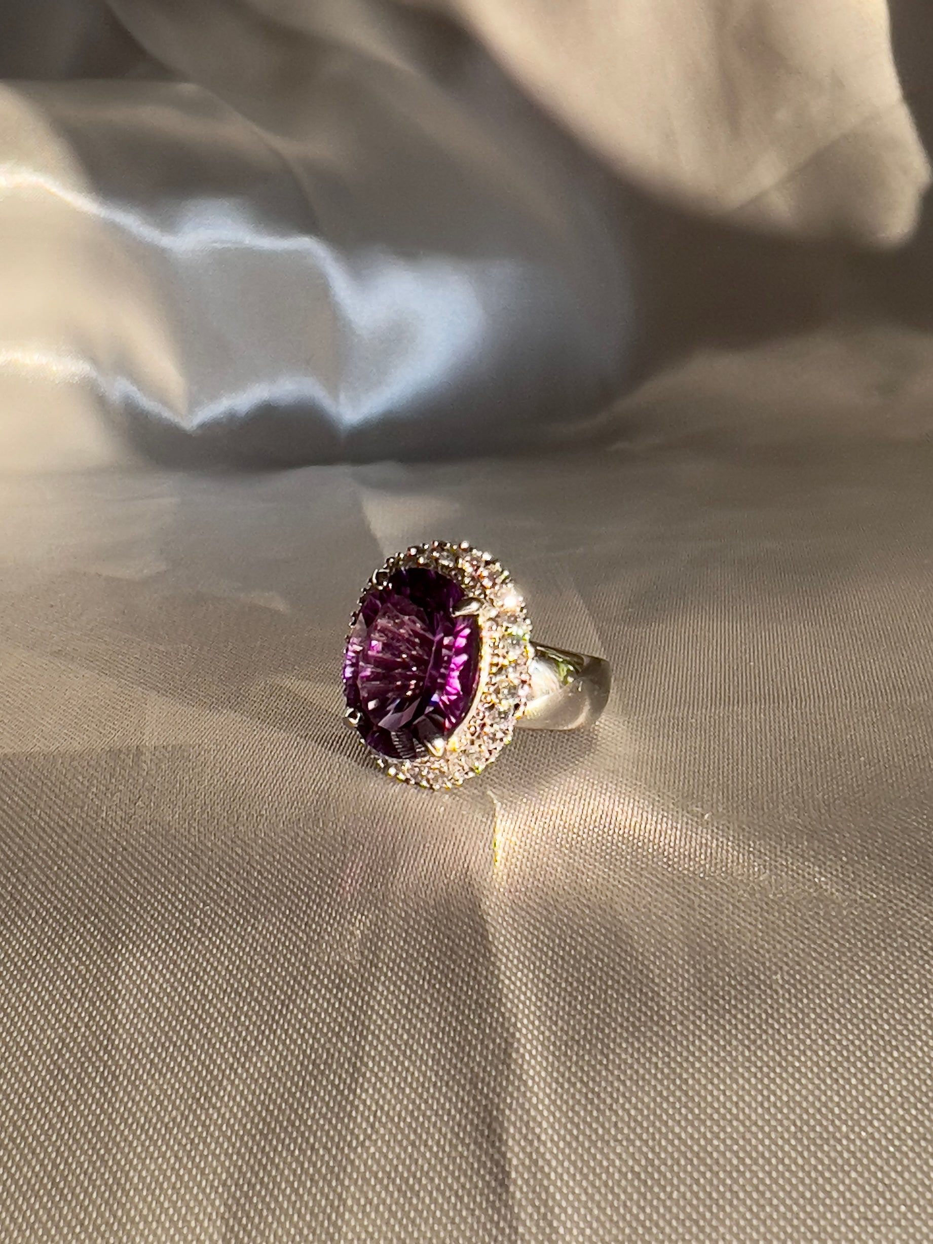 Introducing a stunning cocktail ring featuring a luscious natural oval-cut deep royal purple amethyst from Zambia. Luxurious yet classic, this ring is a true statement piece.