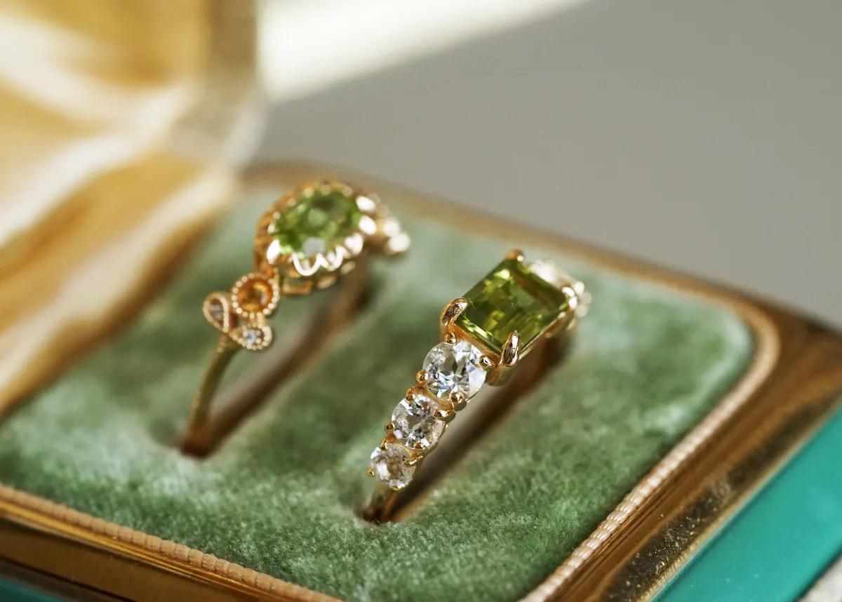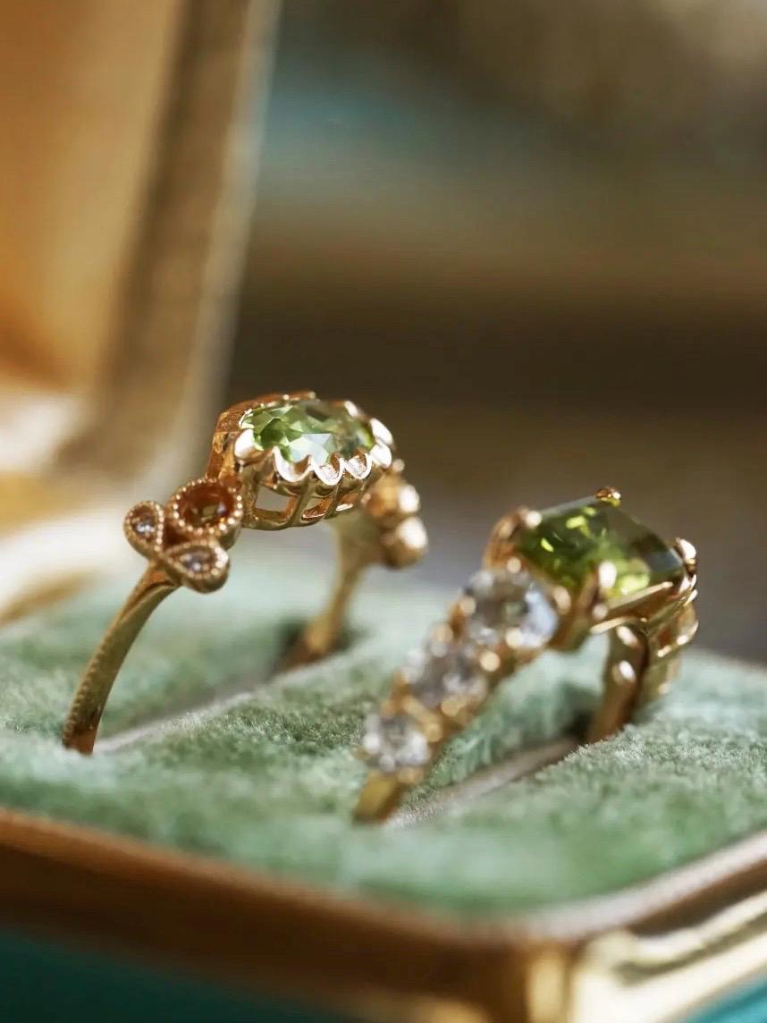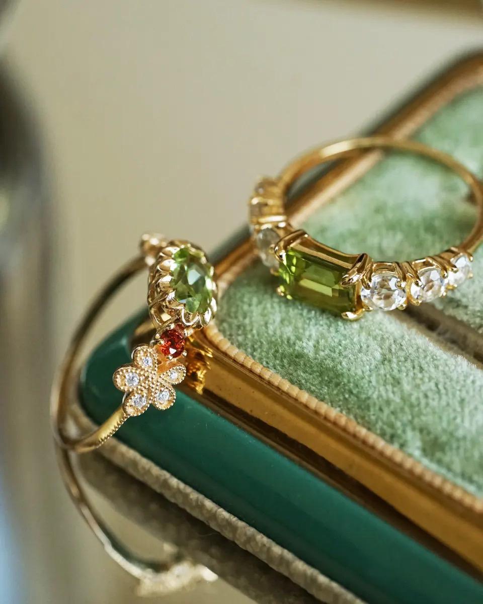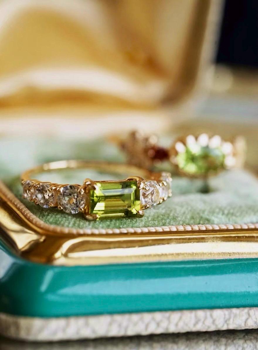 This ring is such a beautiful piece! The stunning natural peridot is the perfect pop of color, framed by sparkling white topaz stones that catch the light with every move. The vibrant green of the peridot adds a fresh, elegant touch to any outfit, whether you're dressing up or wearing it daily.