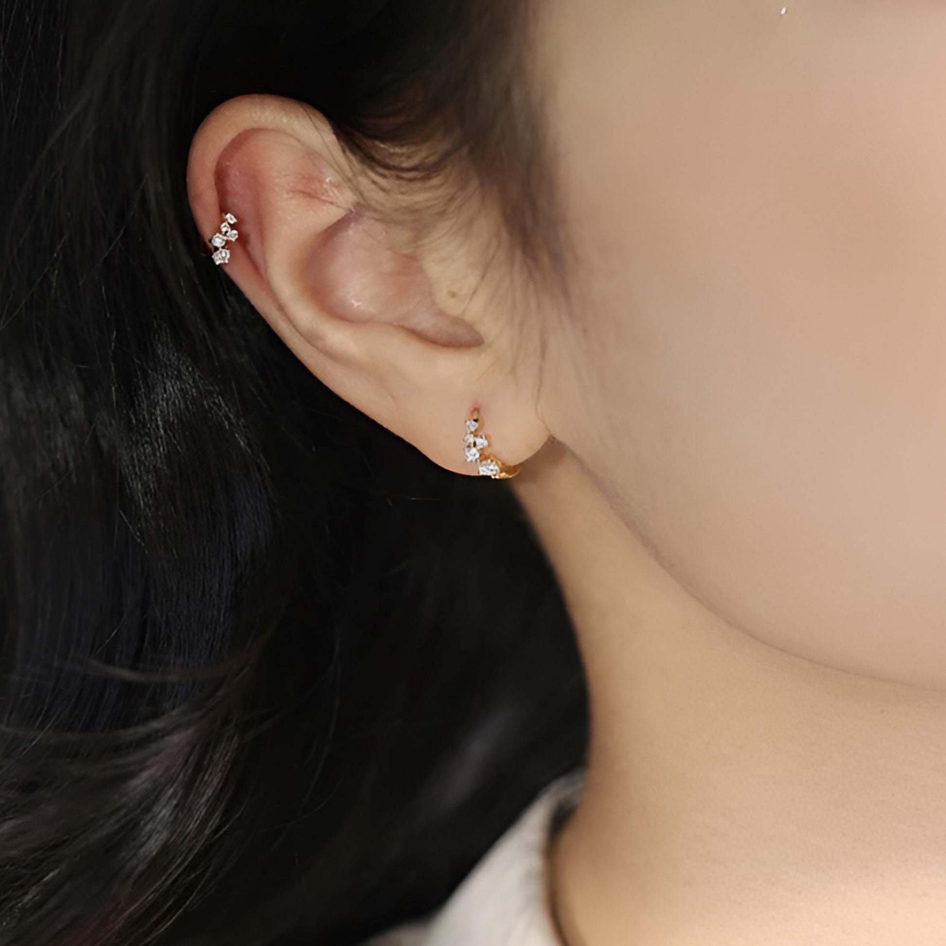 Each stone is hand-set in a refined shared-prong design that hugs your lobe with graceful sparkle. Light, secure, and endlessly wearable.