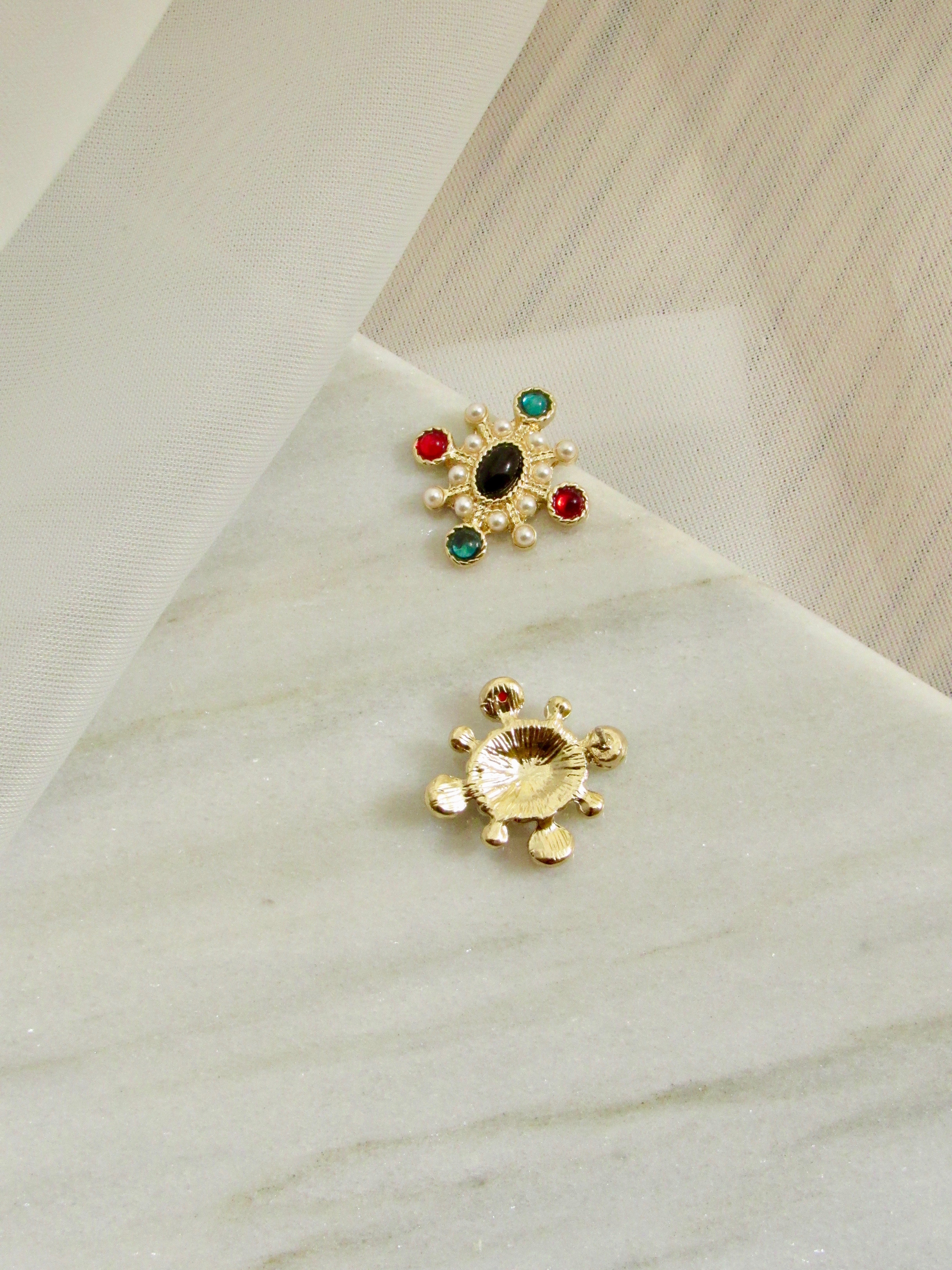 - Materials: 925 sterling silver post with 14K gold plated with gems
