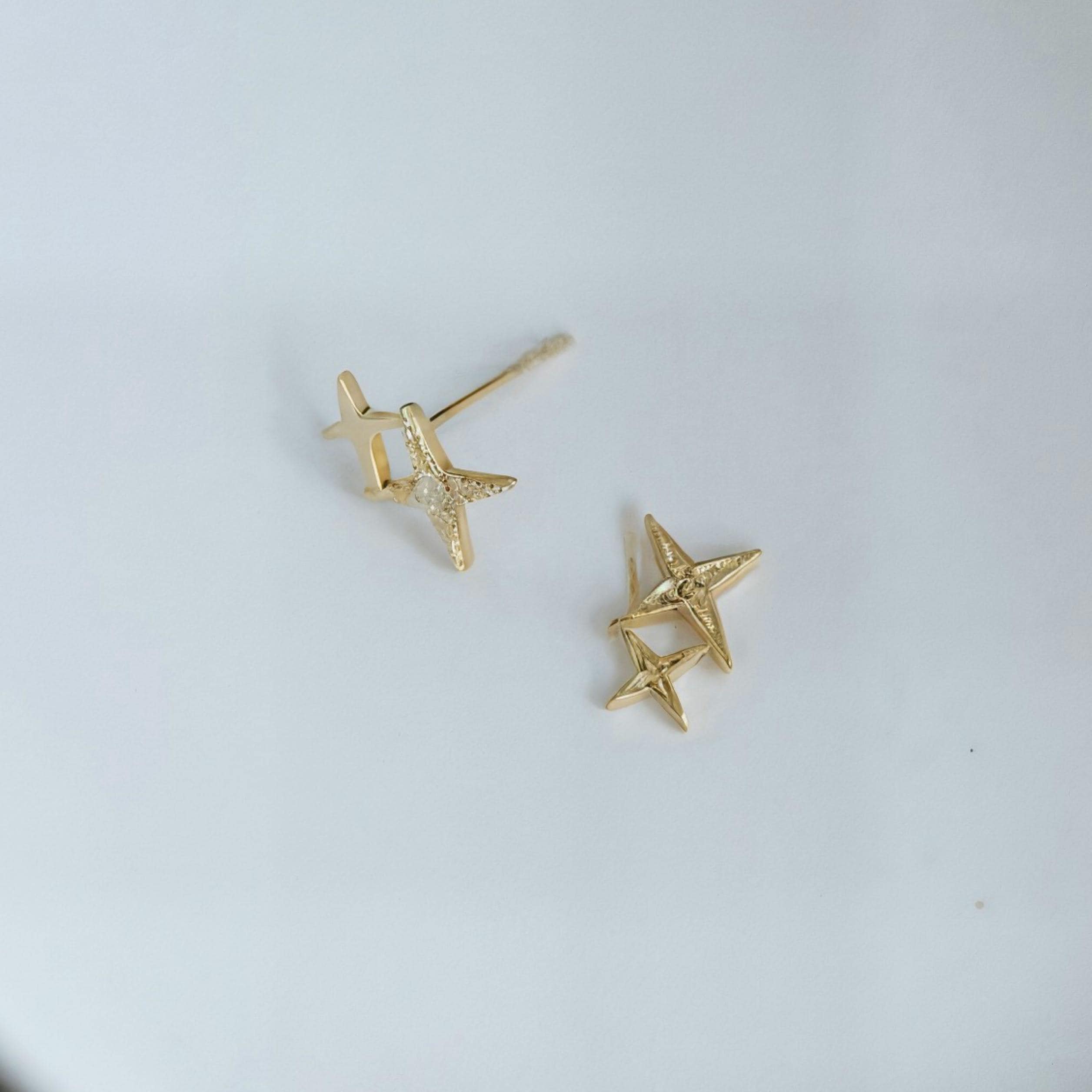 Shimmery Star Diamond Stud Earrings in 9K Solid Gold | Dainty Sparkle Everyday Earrings | Quiet Luxury Gift for Her | Minimalist Star Studs
