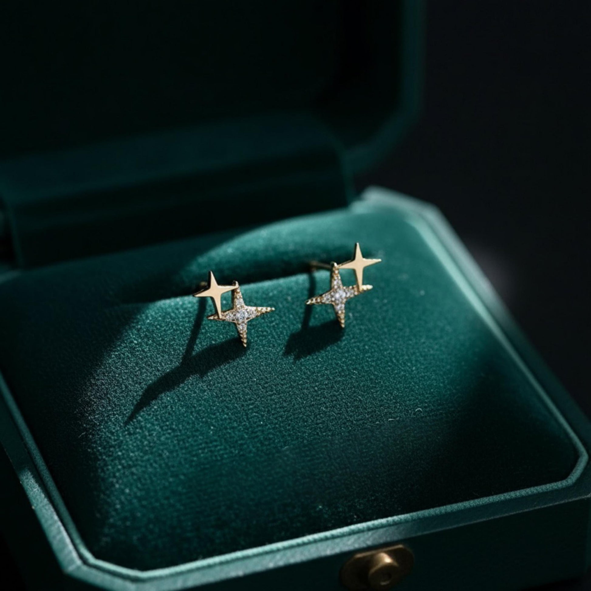 Our Shimmery Star Stud Earrings are crafted in solid 9K gold (Au375) — a soft, elegant gold tone that feels delicate yet lasting. Each star is handset with tiny shimmering stones that catch the light beautifully, giving you that effortless “soft sparkle” look from day to night.