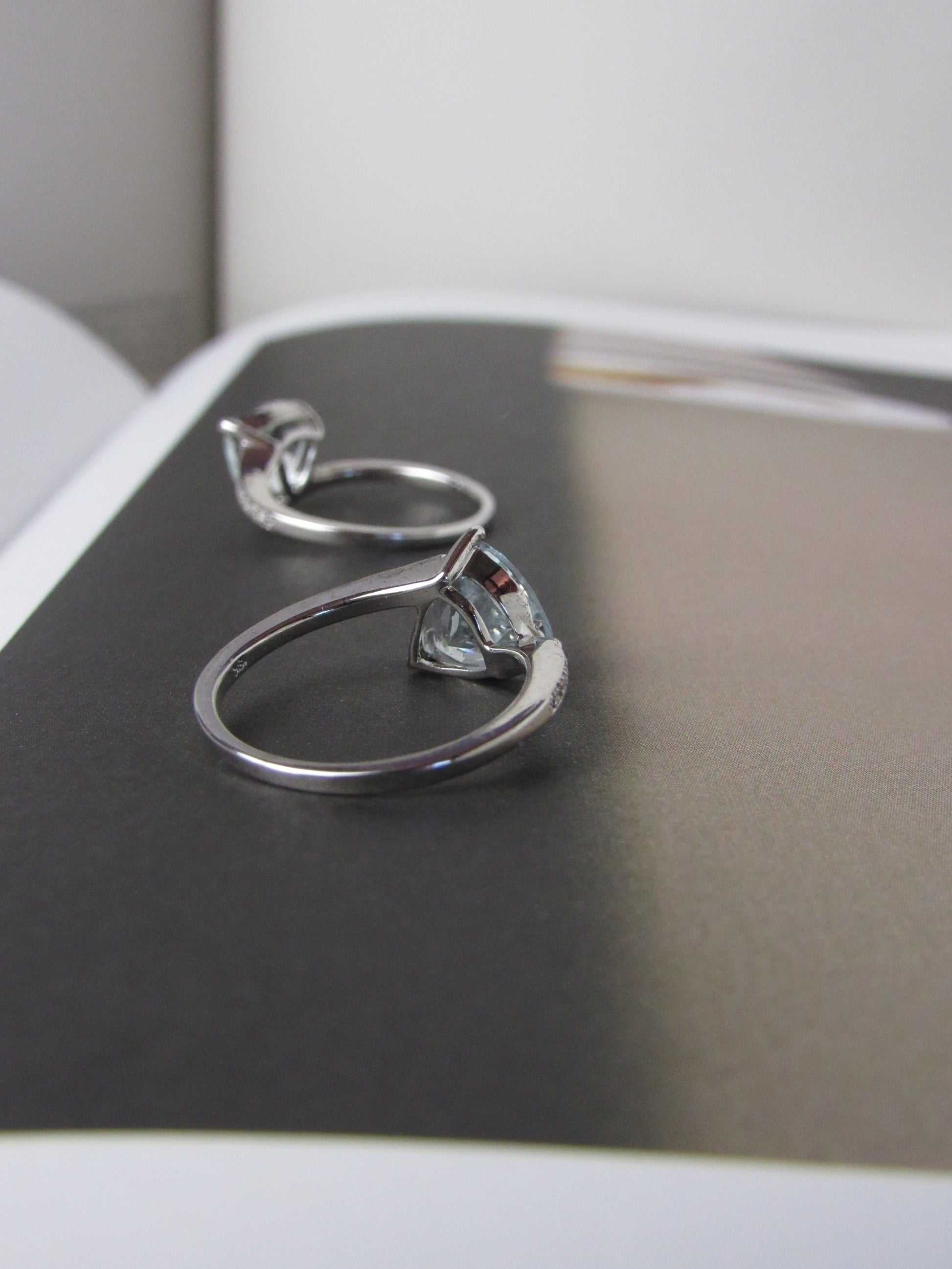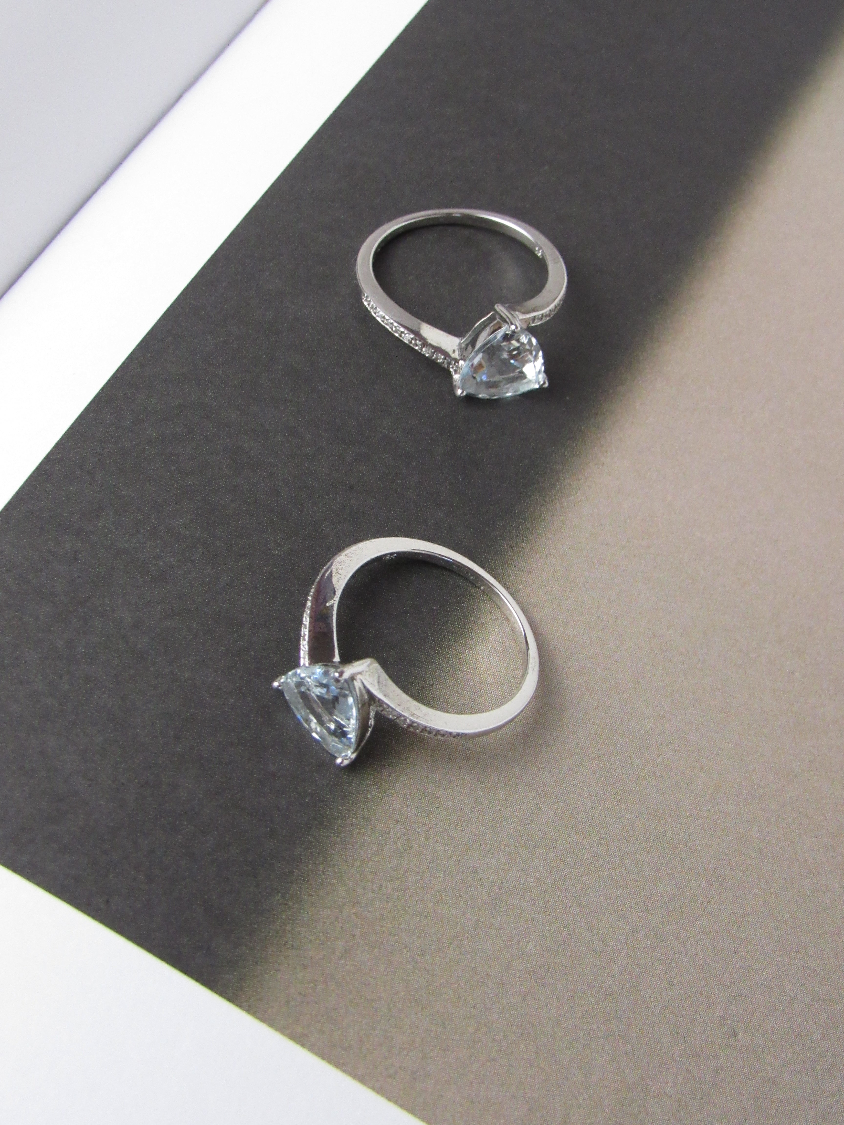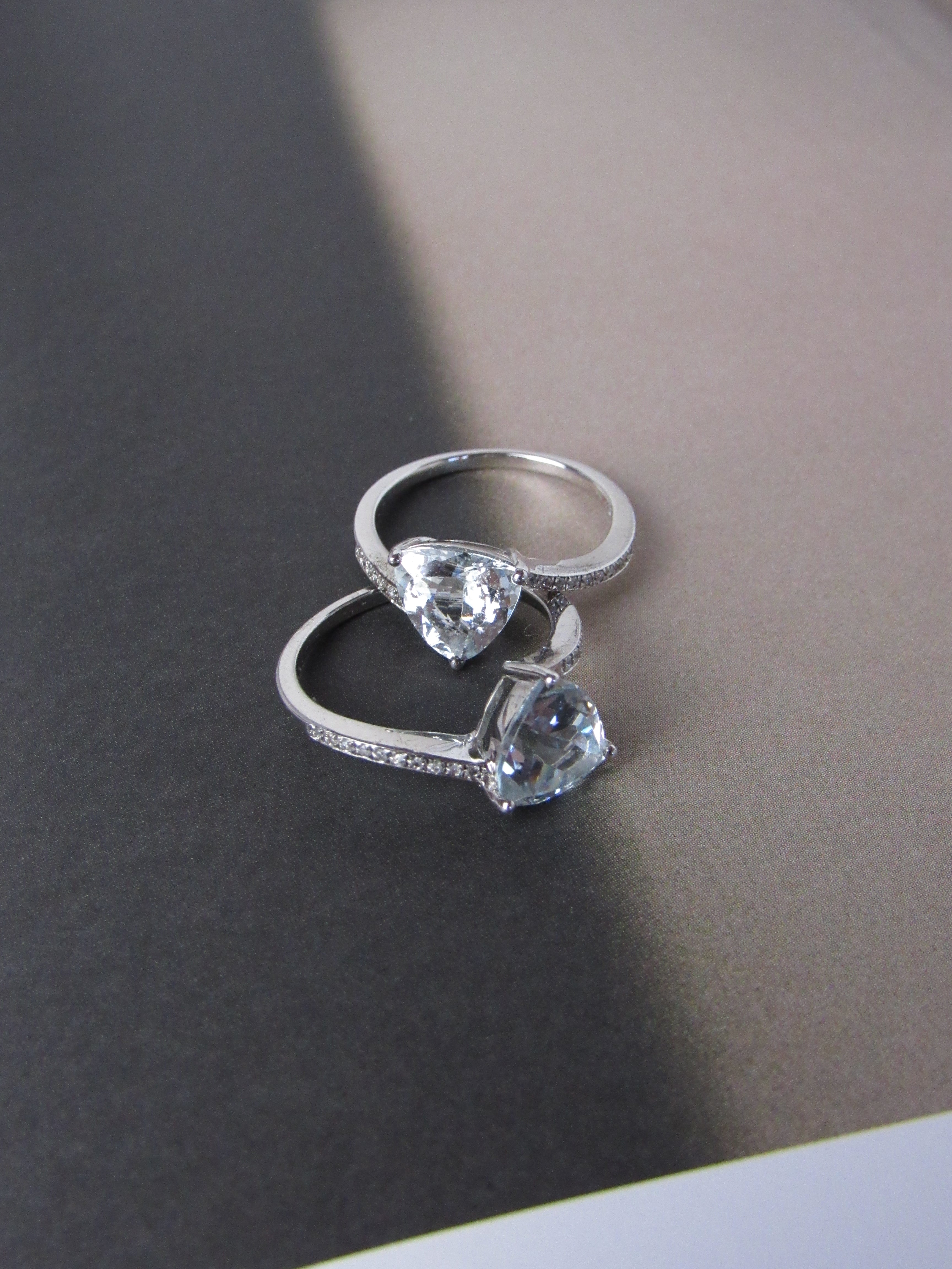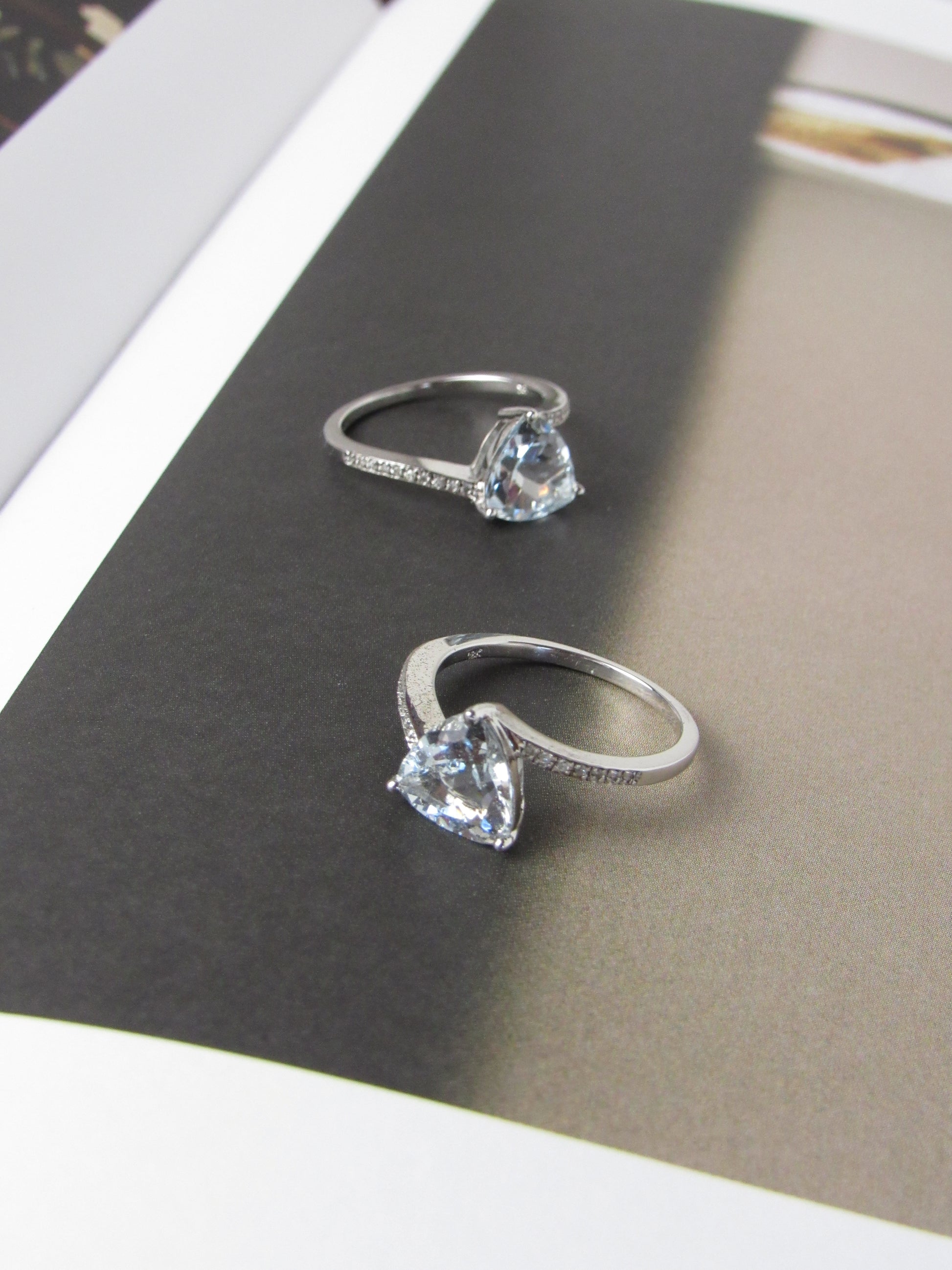 The beauty of this exceptional 3.8 CT trillion cut natural aquamarine ring makes it a piece that will always be cherished. An elegant 18K white gold band creates a perfect setting for the stunningly sparkling central gem and its surrounding 0.50CT of ethical natural diamonds.