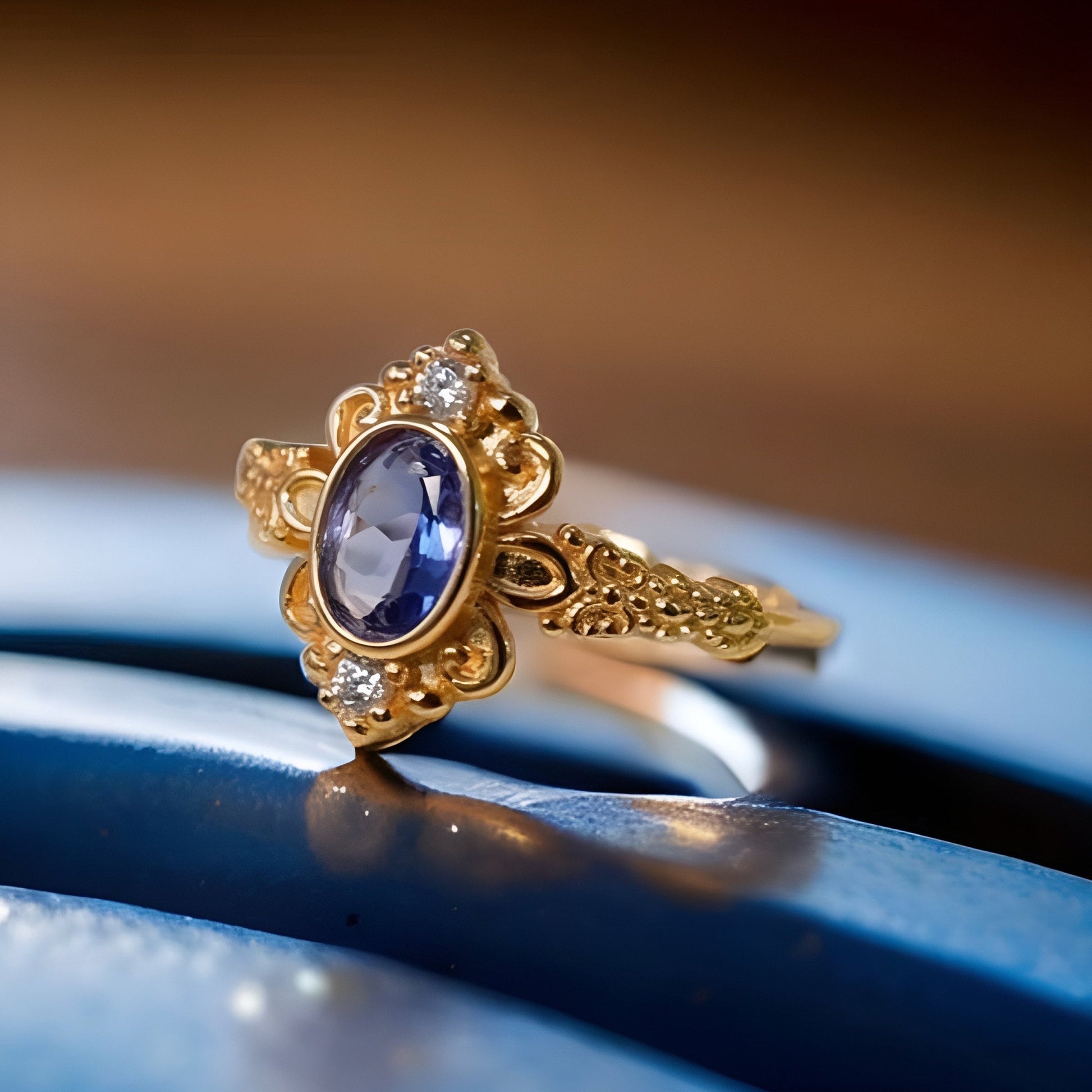 Natural Tanzanite Victorian Engagement Ring in 18K Gold