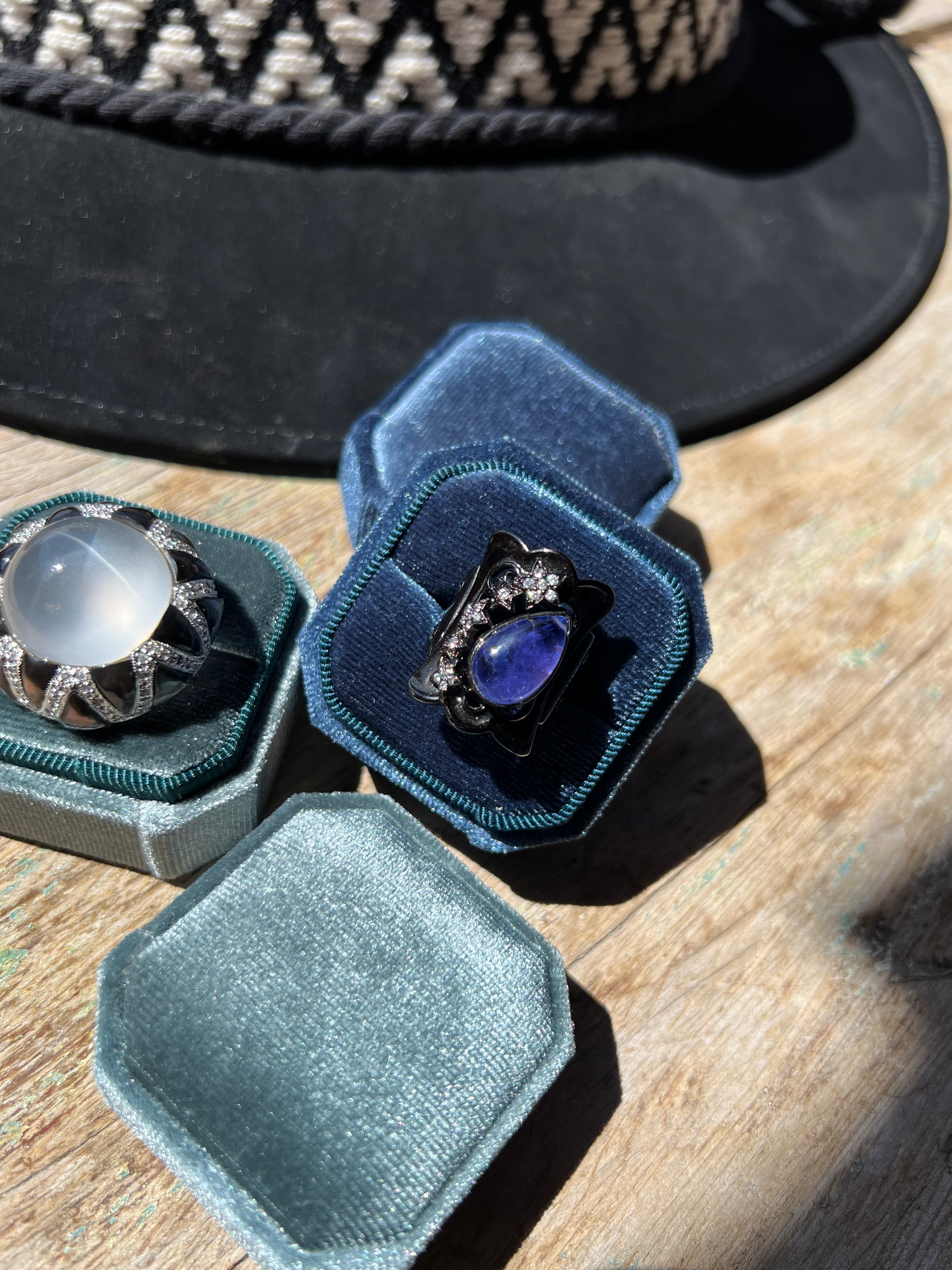Exquisitely crafted with natural blue teardrop Iolite complemented by sparkling white sapphires, this ring draws inspiration from serene midsummer nights.