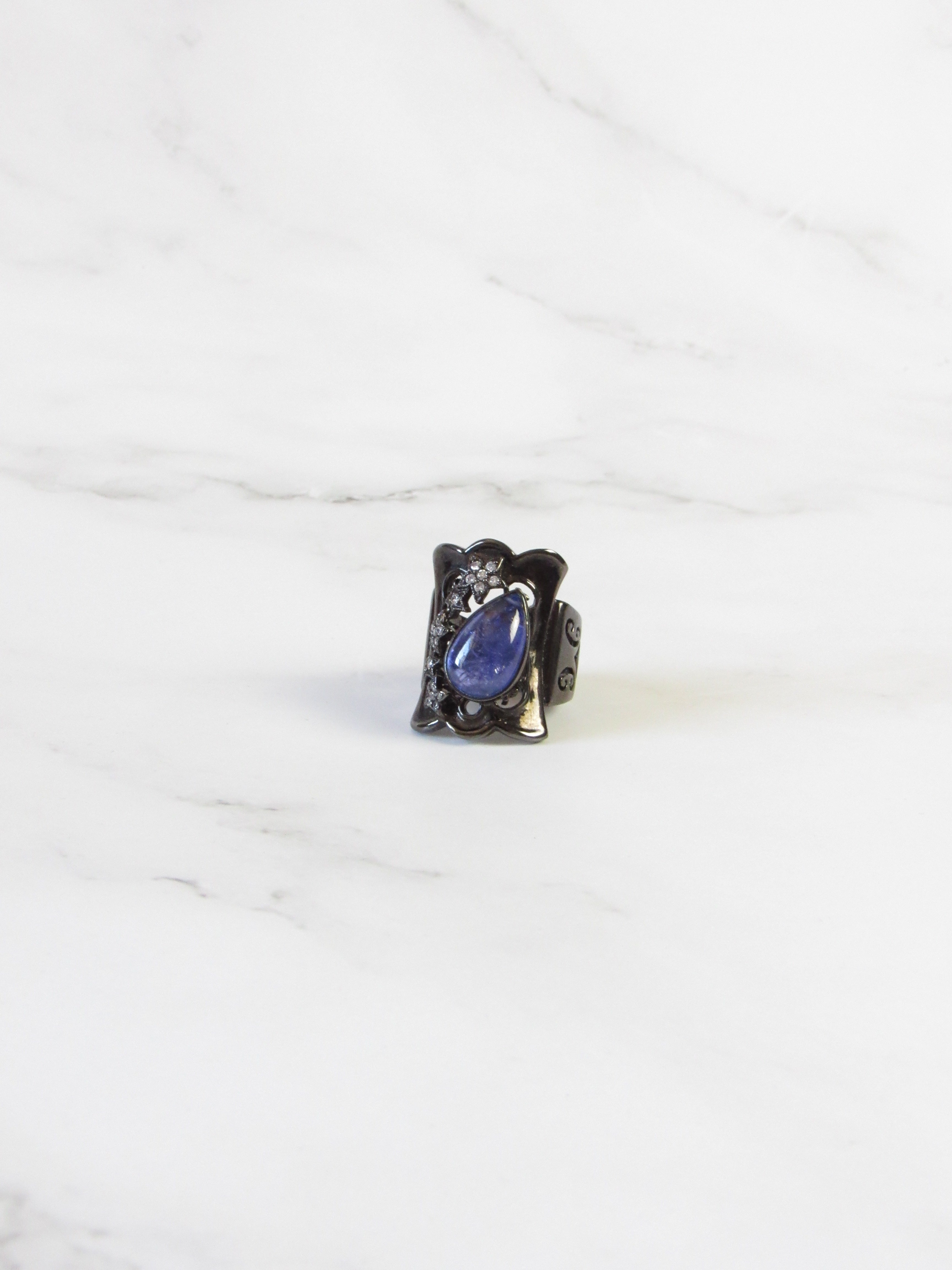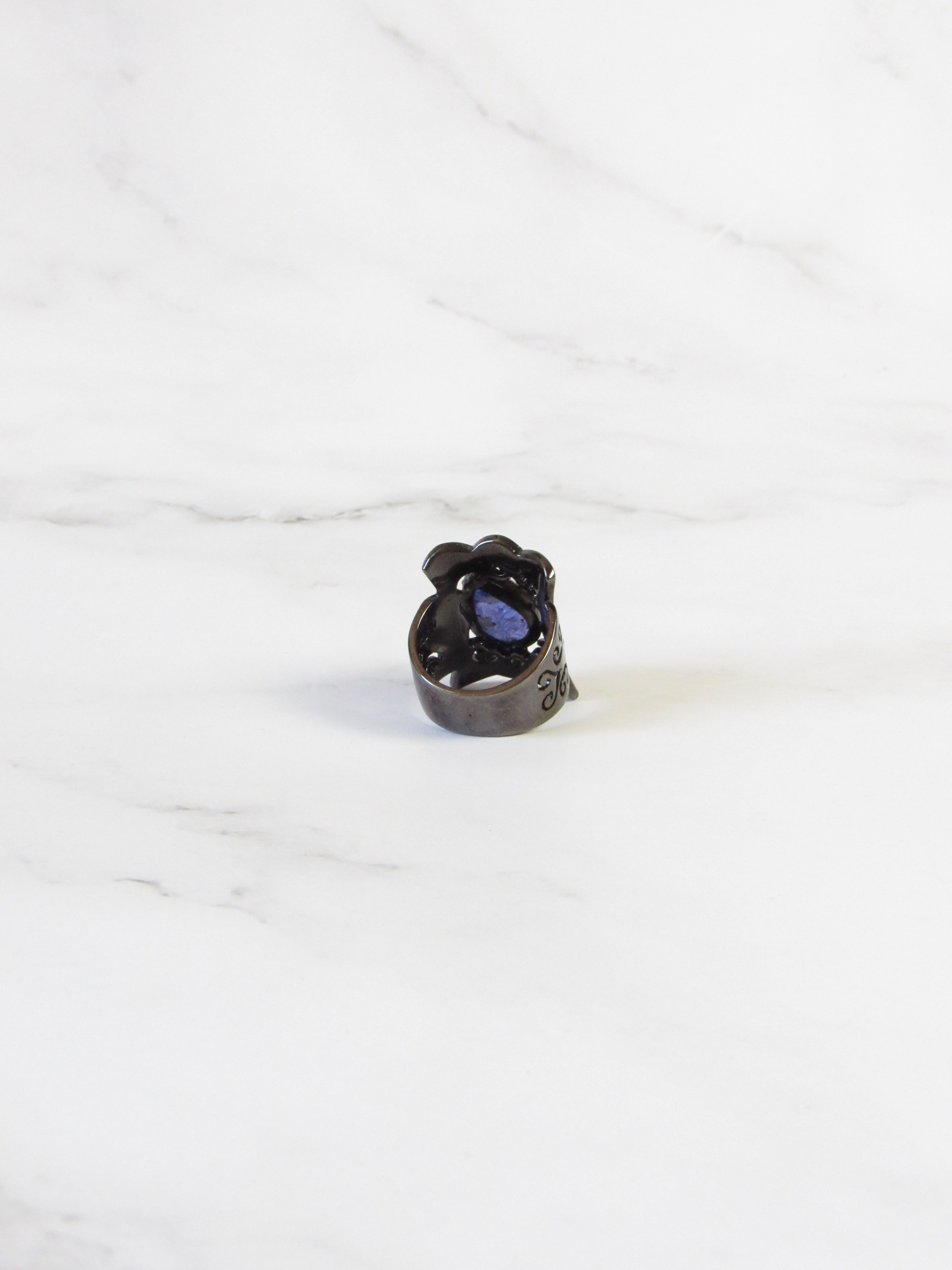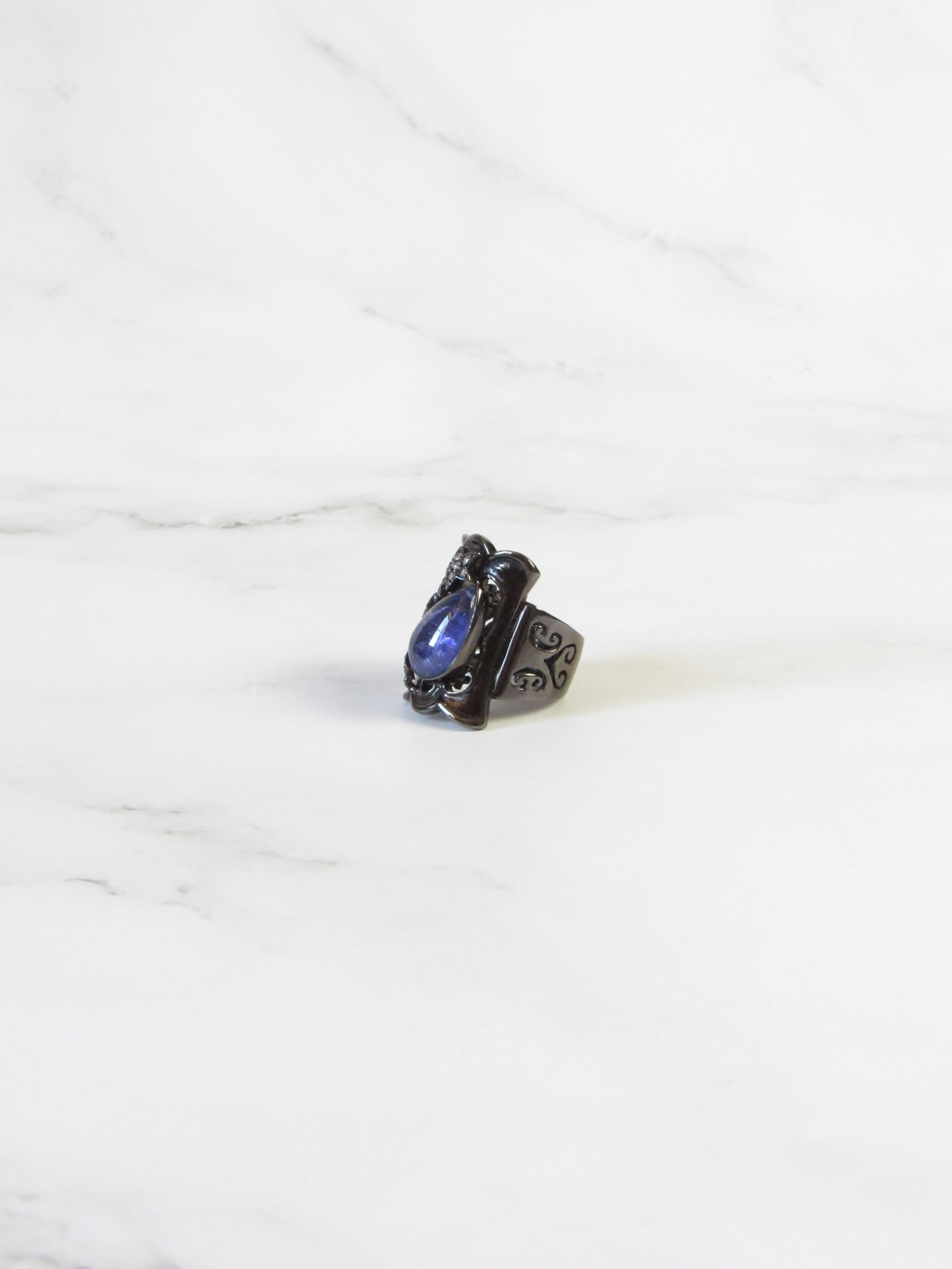 Teardrop Iolite Oxidized Pure Silver Statement Ring