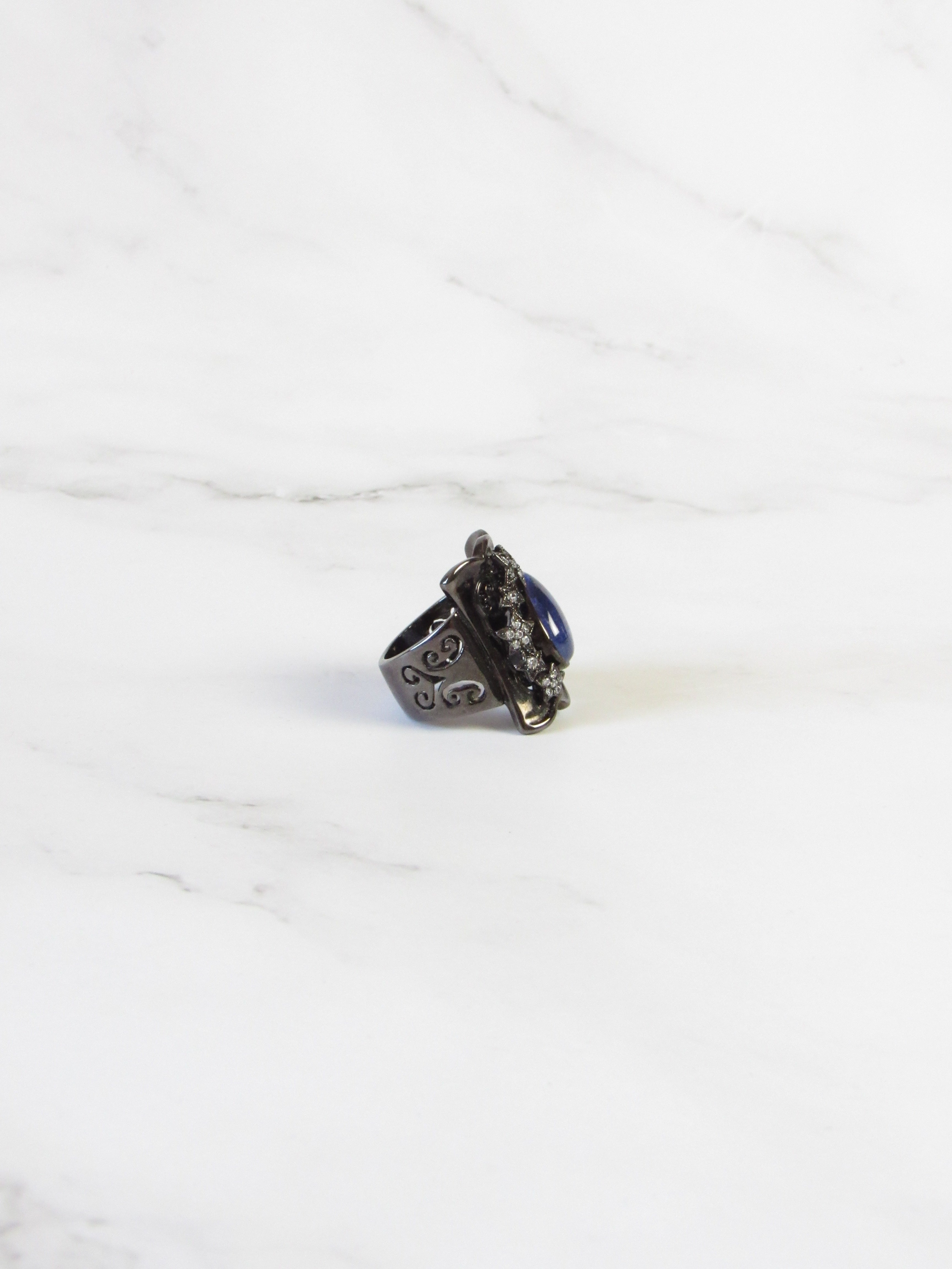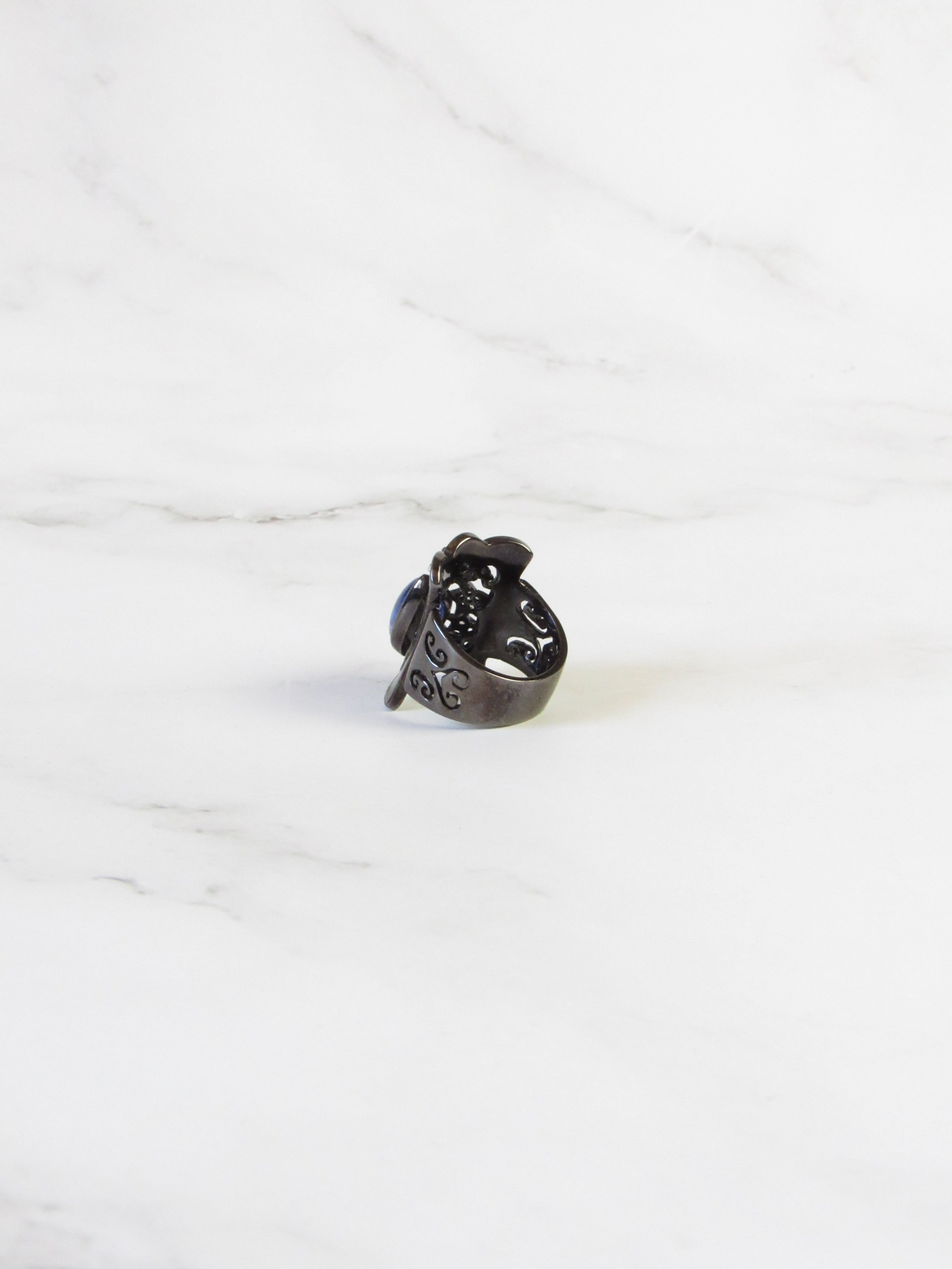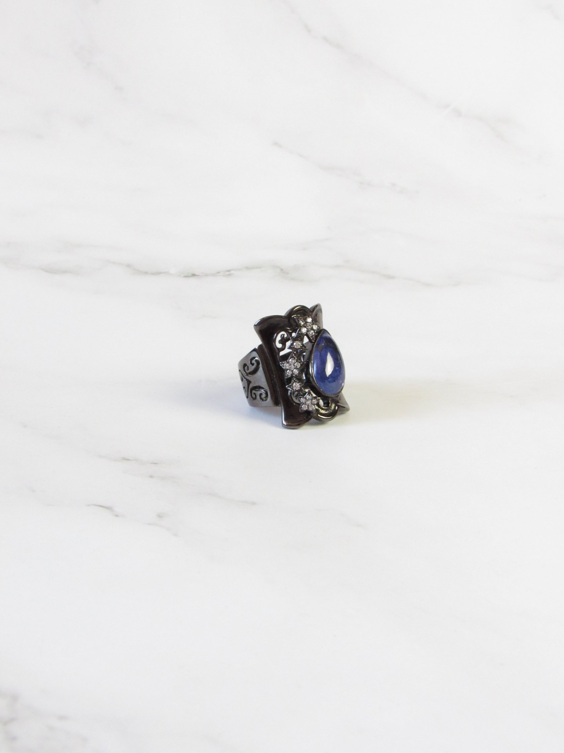 Teardrop Iolite Oxidized Pure Silver Statement Ring