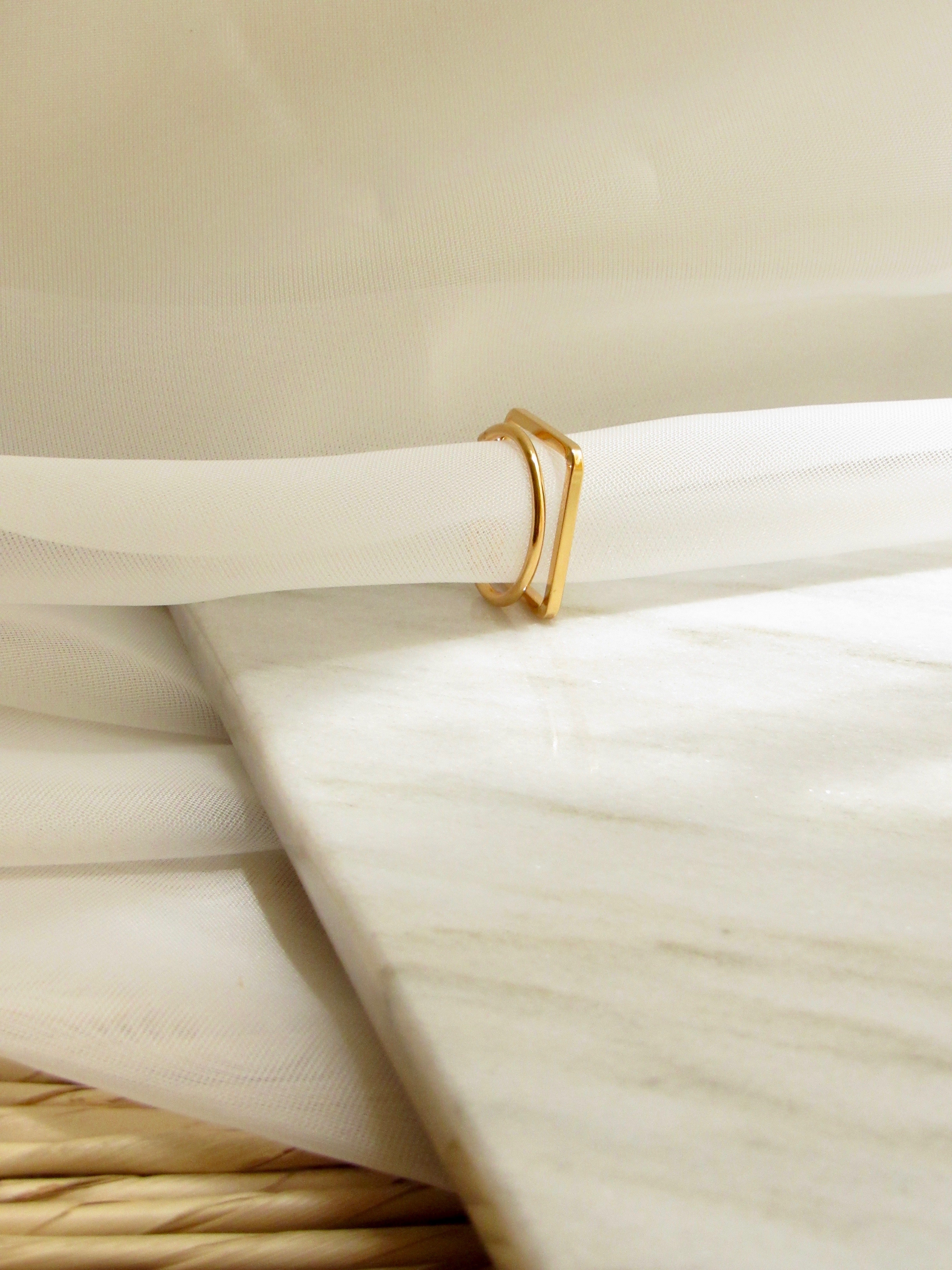 This chic Gold Double Band Design Square Ring is perfect for anyone looking for a stylish layering, stacking, or open ring. Crafted from gold, this thin, adjustable band ring is perfect for everyday wear and making a statement.