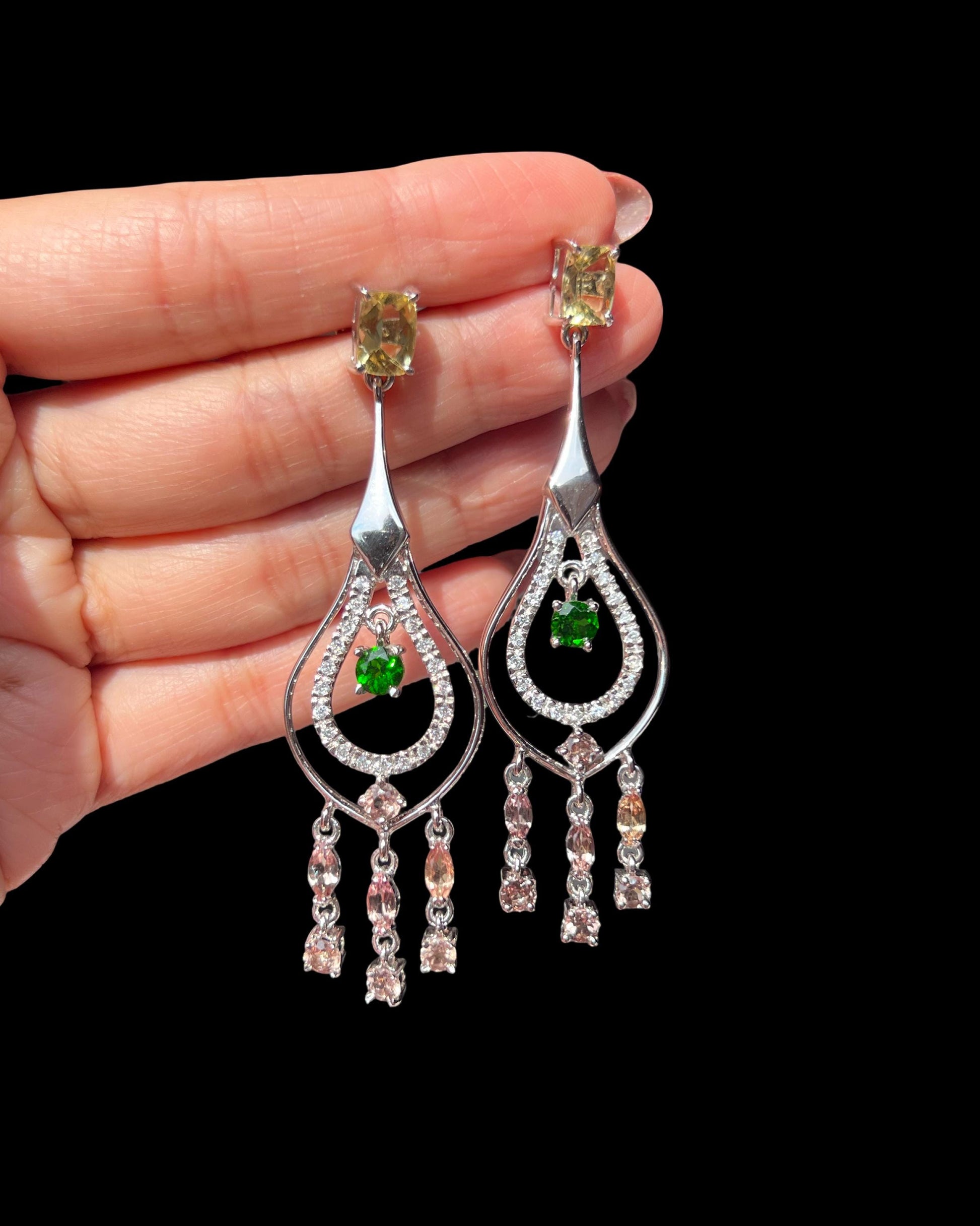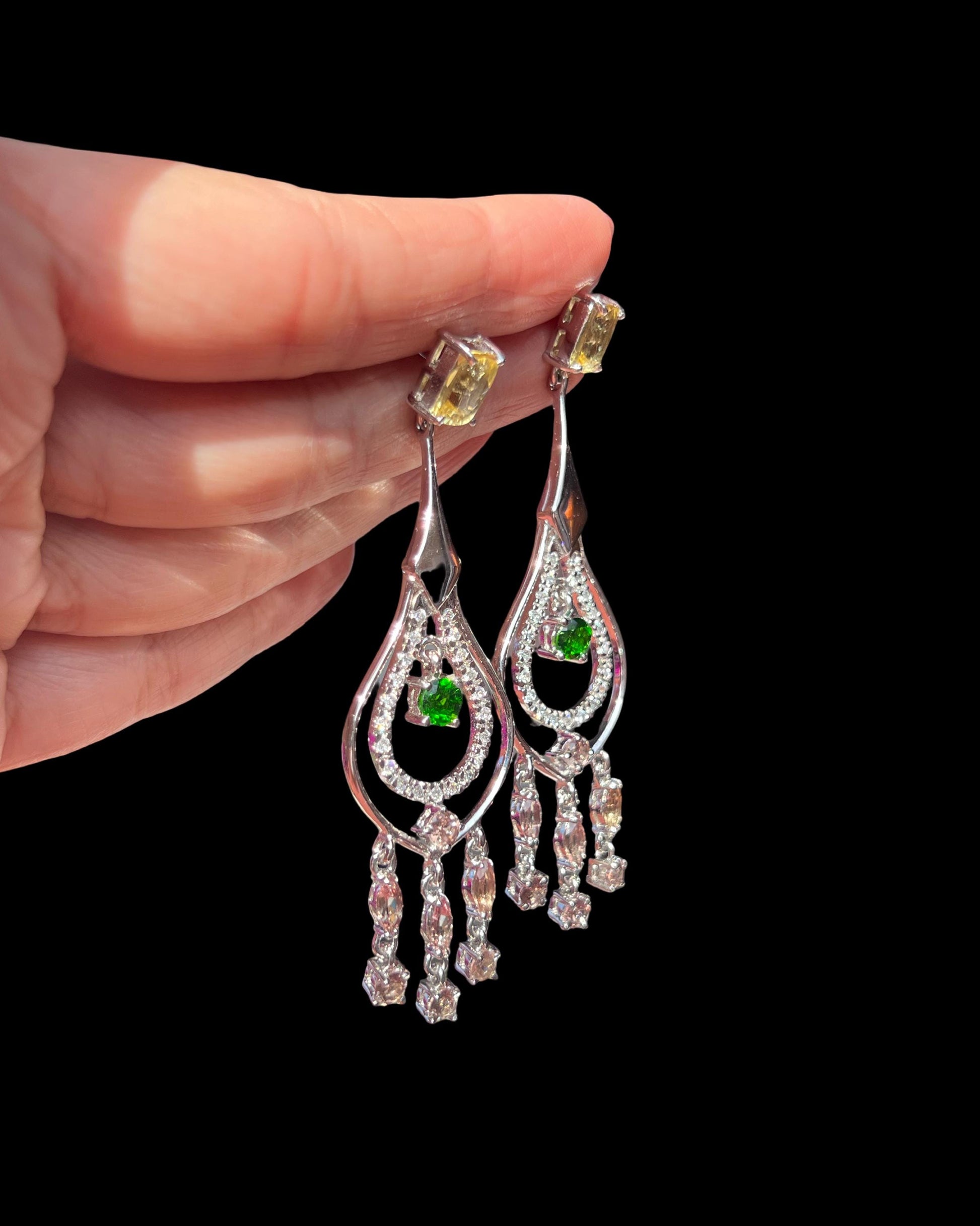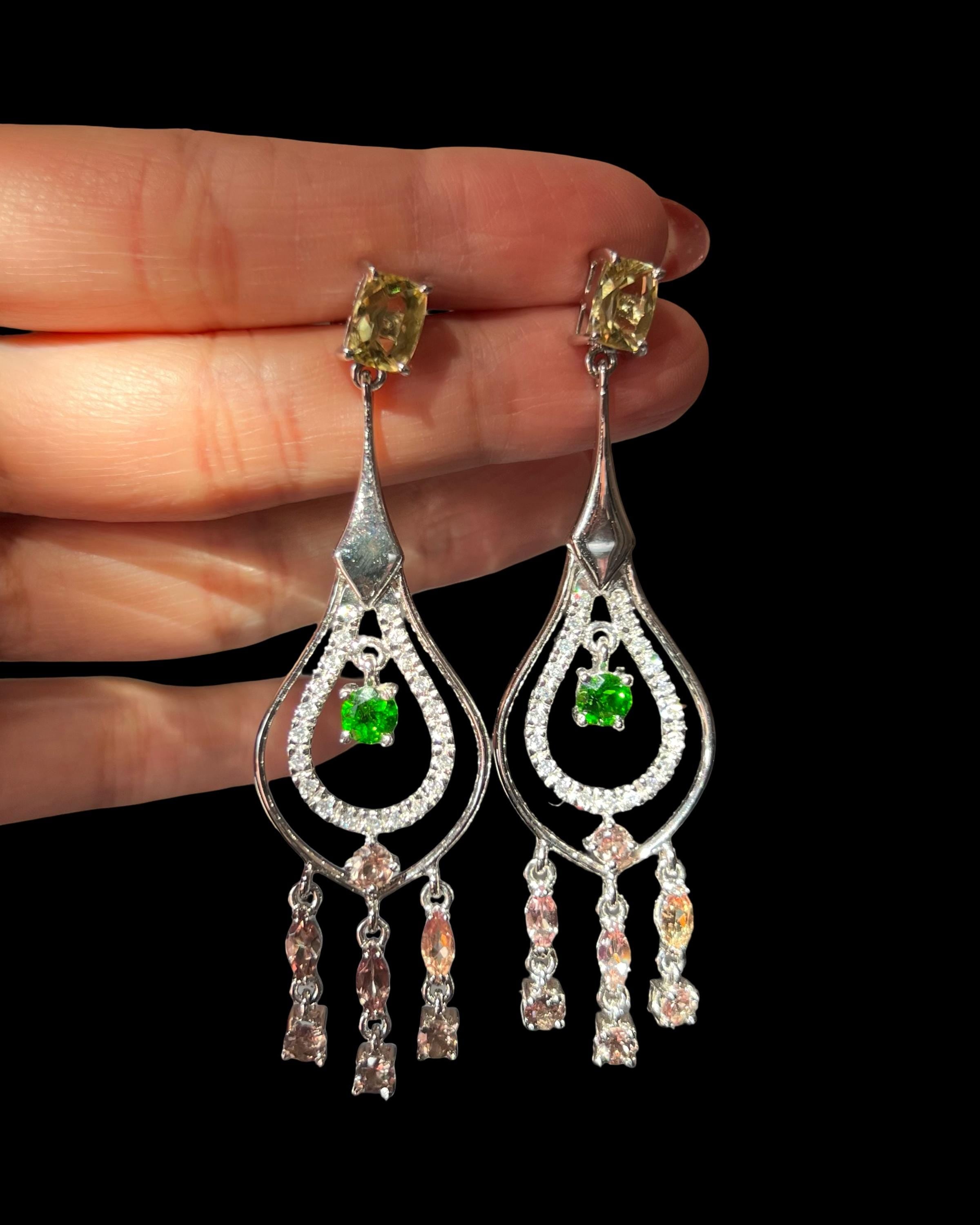 Tsavorite Malaya Garnet Chandelier Earrings: Sterling Silver Beryl Sapphire
