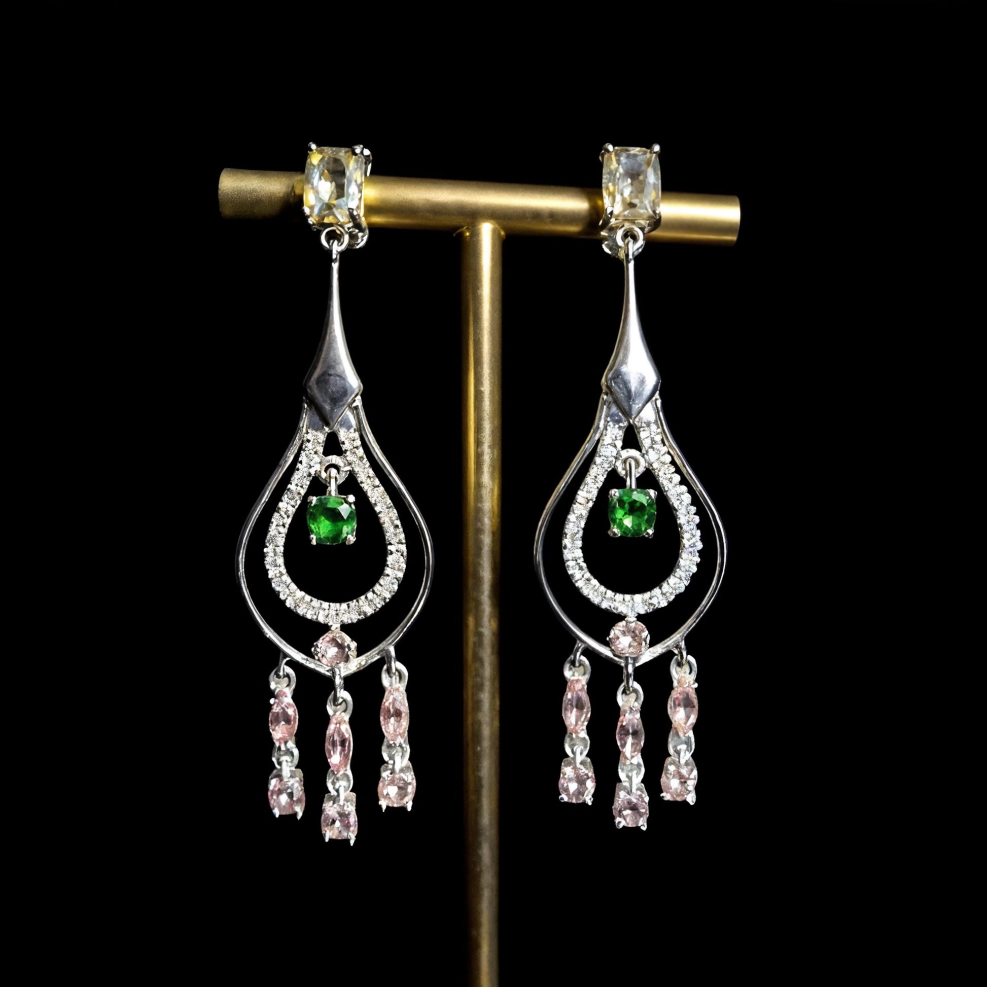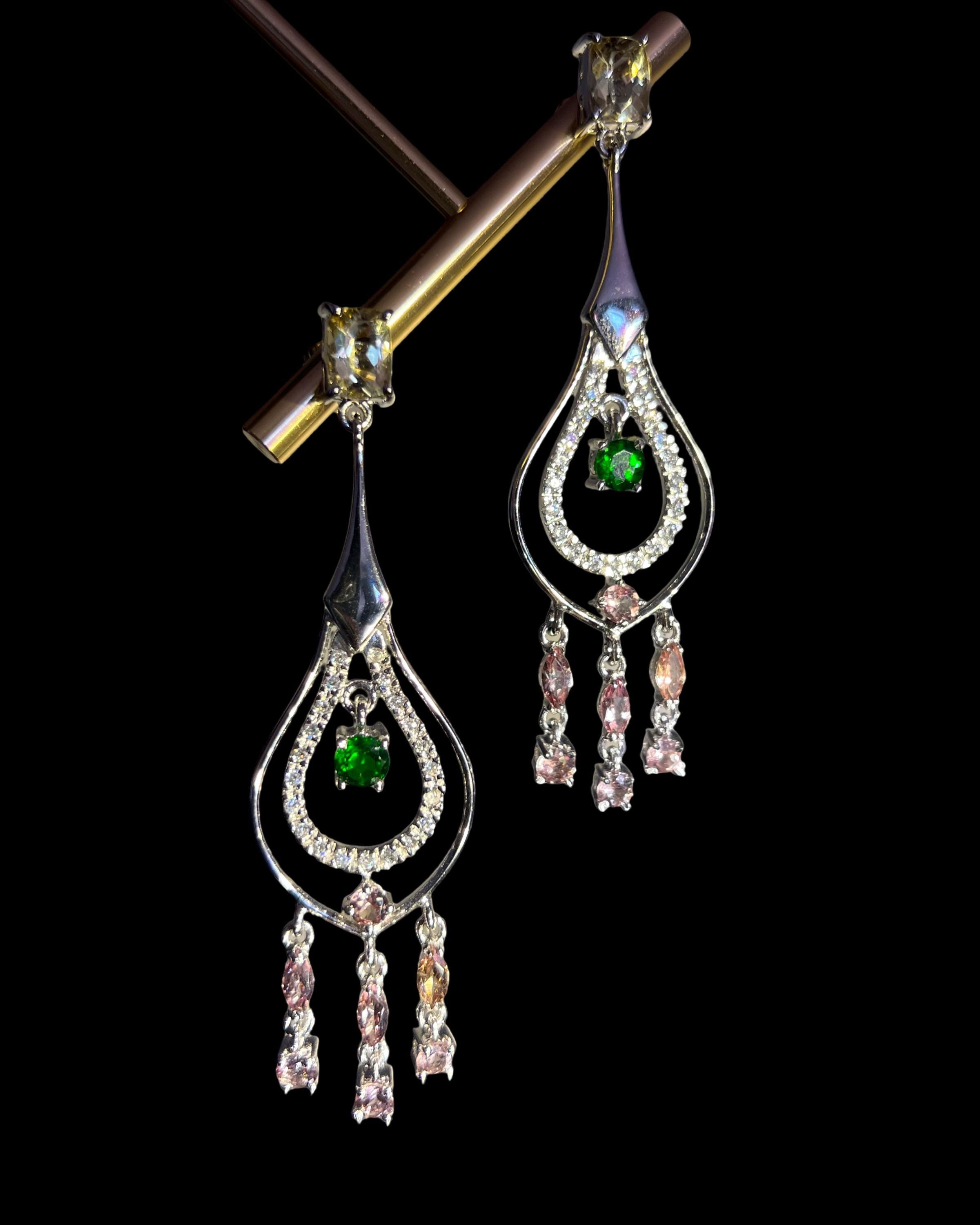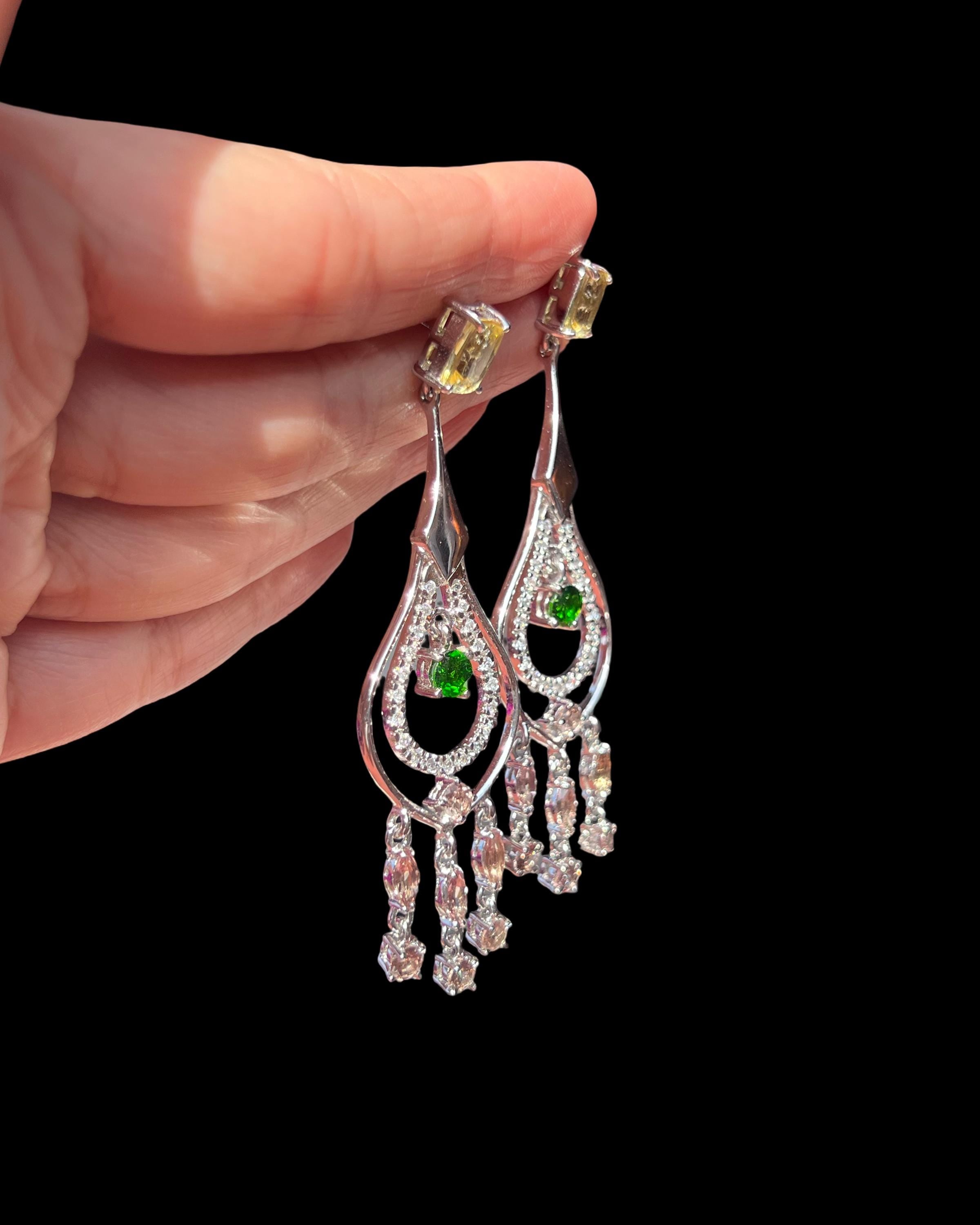 Tsavorite Malaya Garnet Chandelier Earrings: Sterling Silver Beryl Sapphire