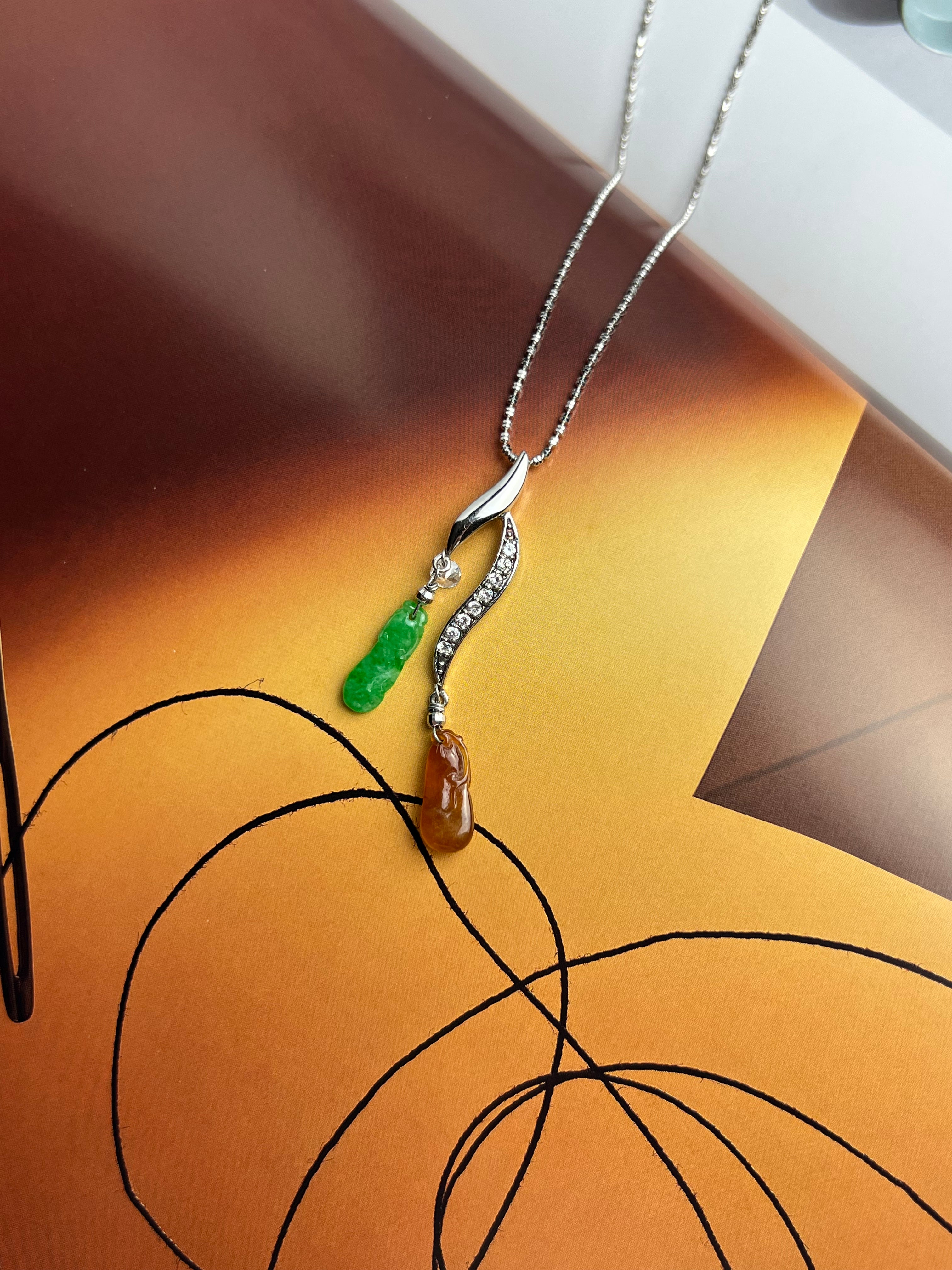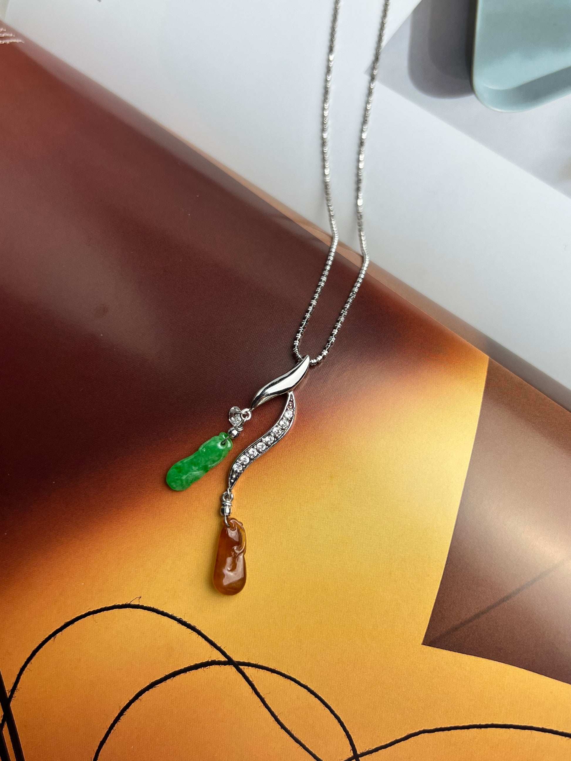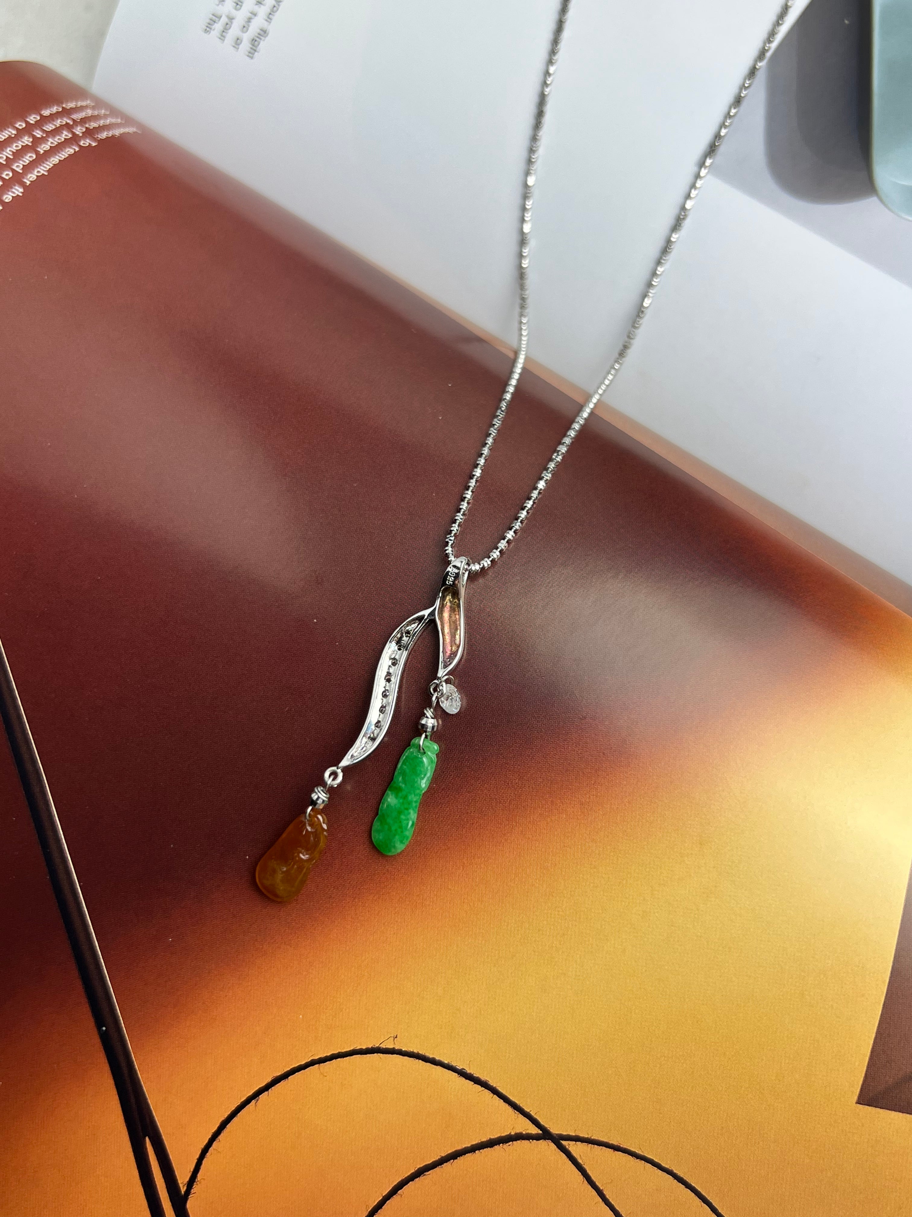 Twin Natural Jade Amulets Silver Pendant Necklace