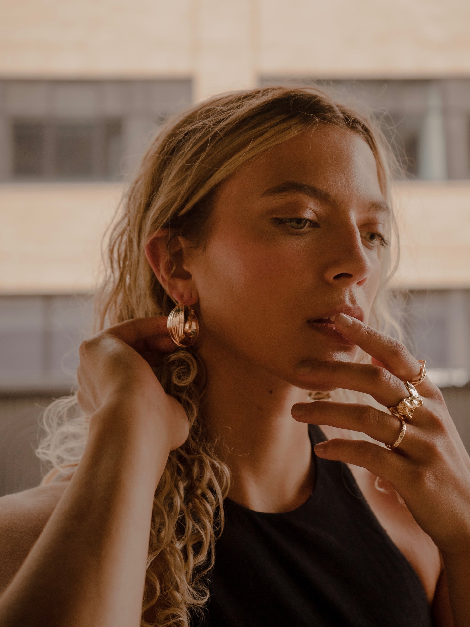 All our jewels are made with high-quality precious metals — including 18k solid gold, 14k solid gold, and sterling silver with fine 18k vermeil finish (2.5 microns, fine jewelry standard).