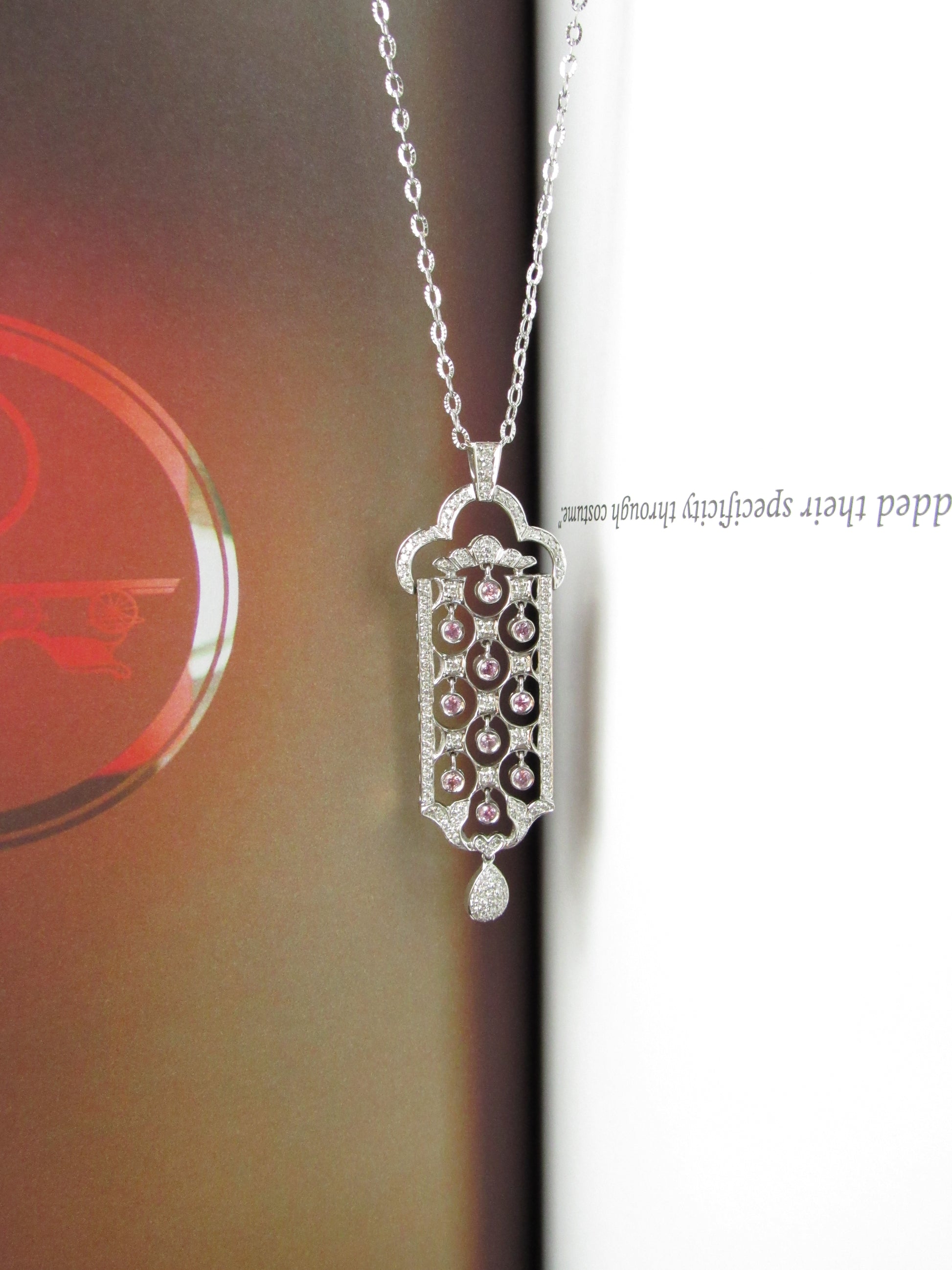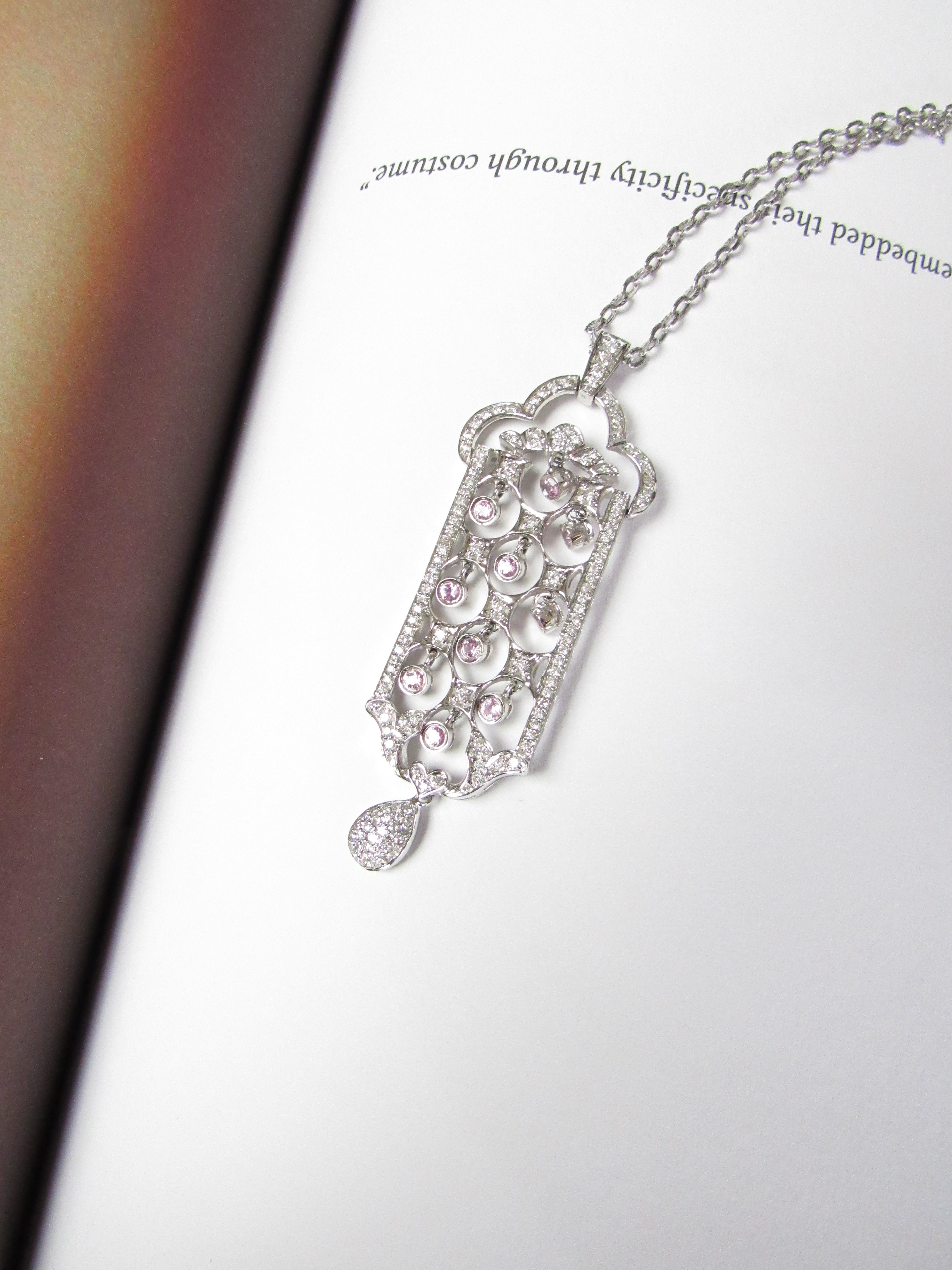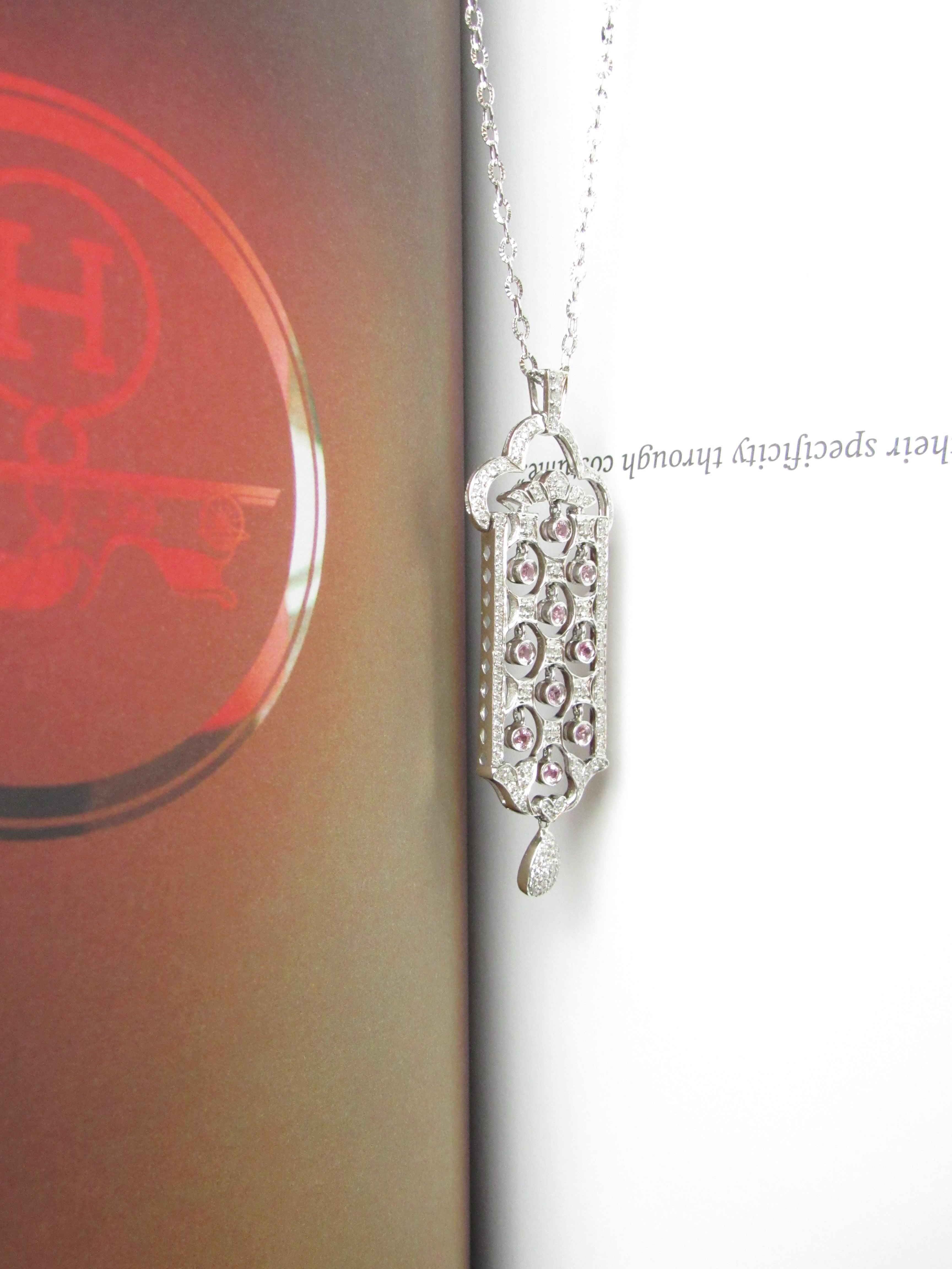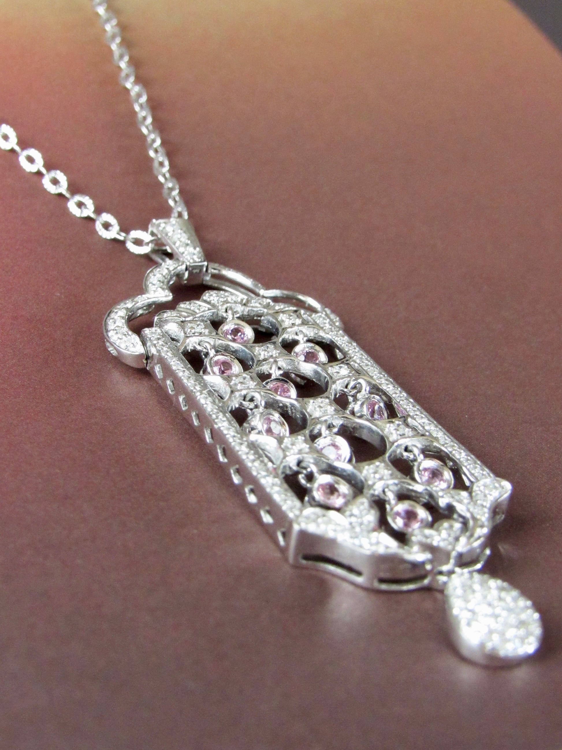 Natural Pink Tourmaline and Earth mined Diamond White Gold Pendant Necklace