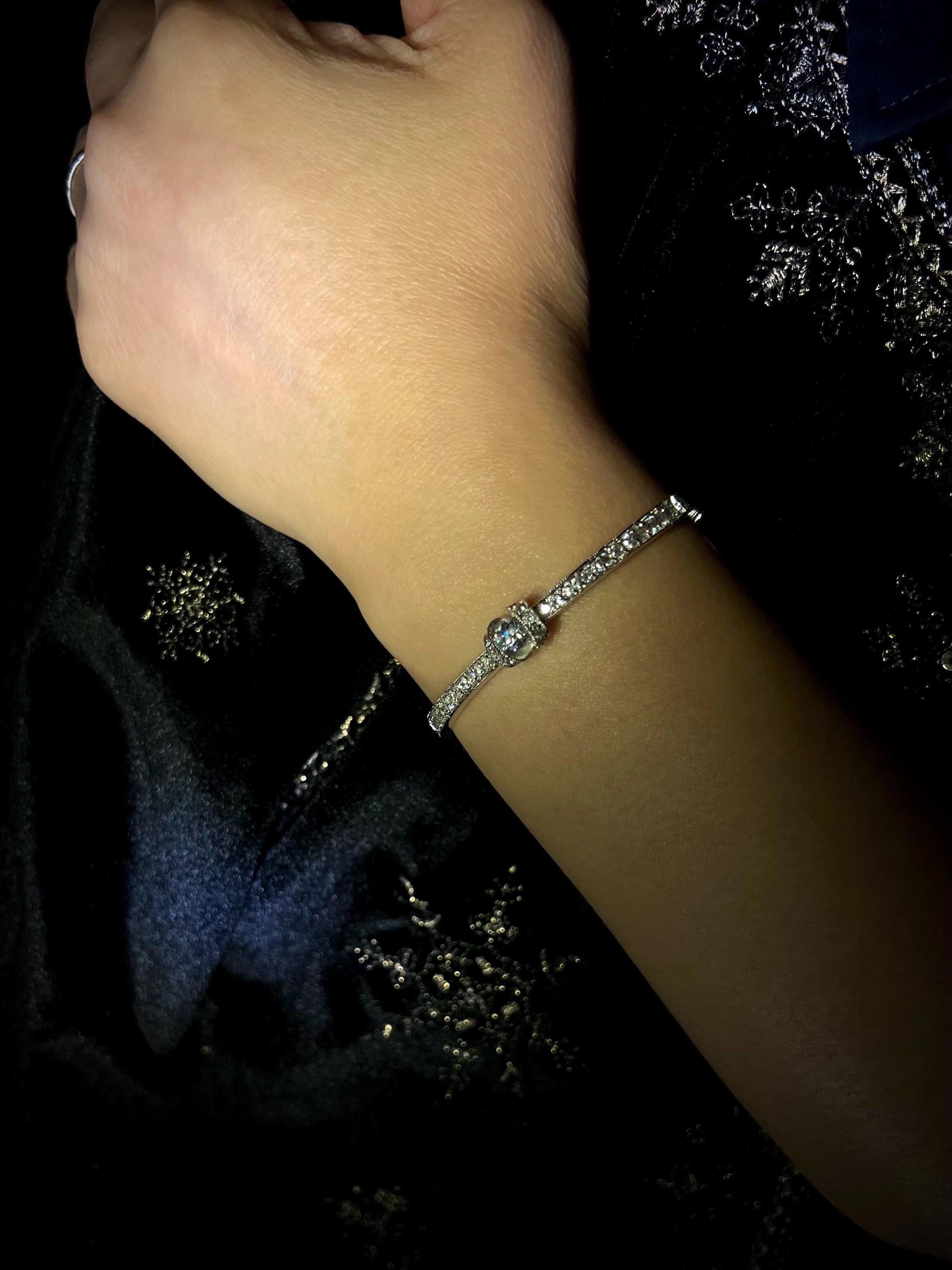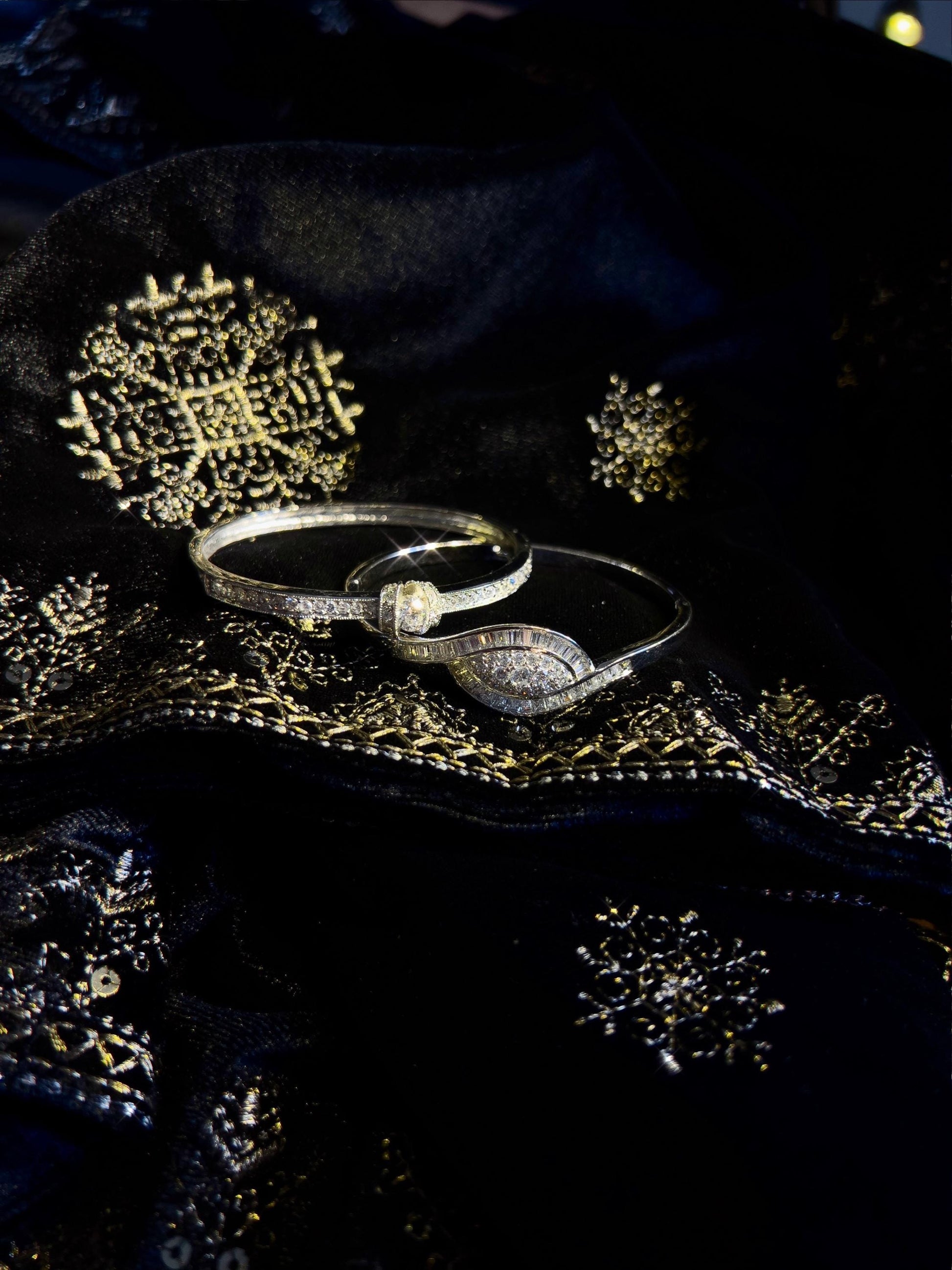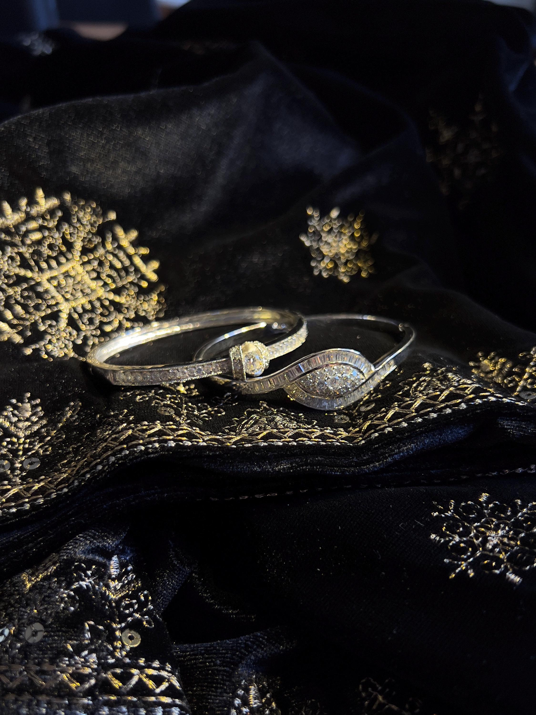 We love how these bangles catch the light—the fire in the Moissanite is so beautiful. They have that perfect vintage touch—elegant, timeless, and just the right amount of sparkle. Wear one for a sleek, effortless look or stack them both for that extra glow. Honestly, they go with everything.
