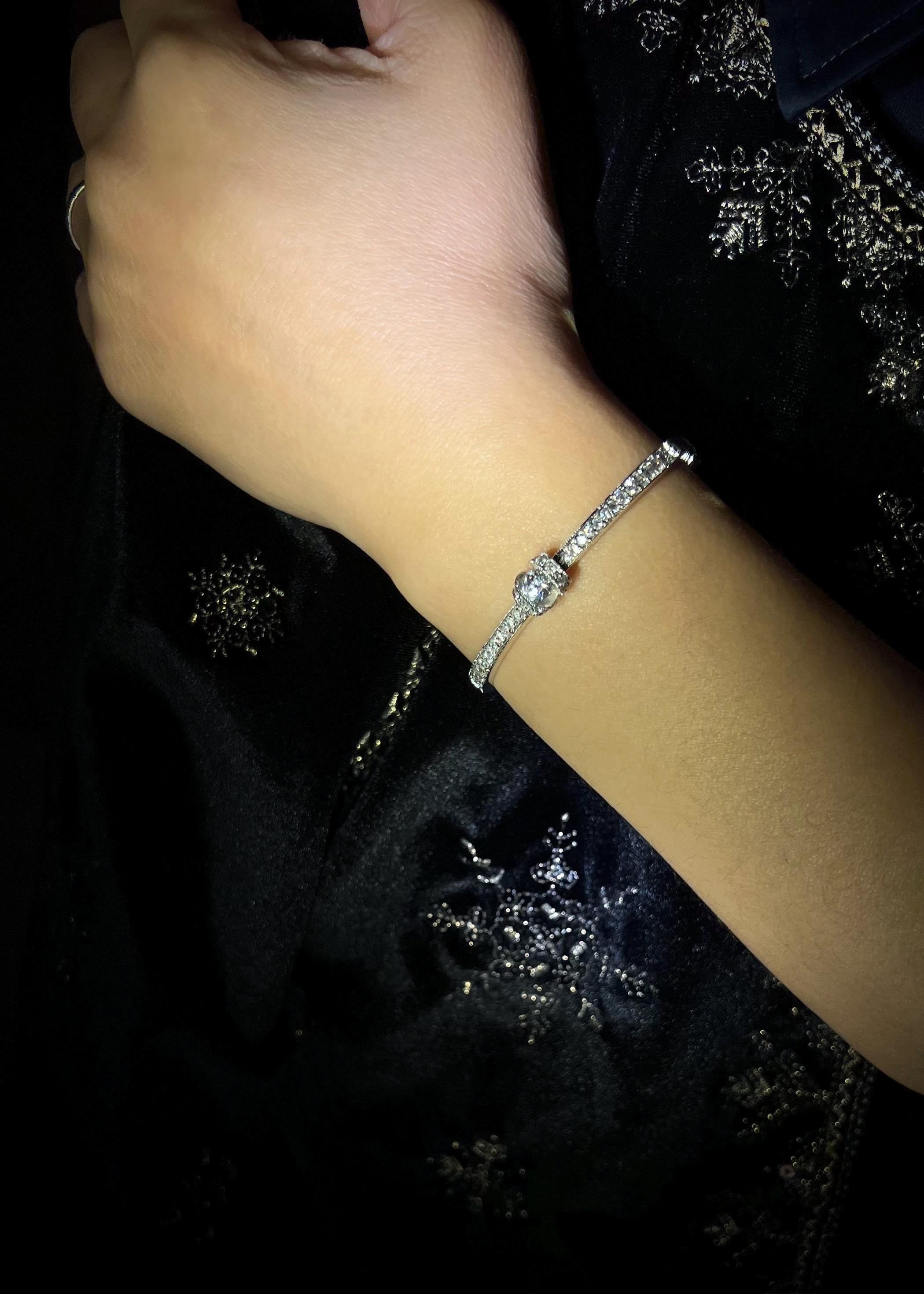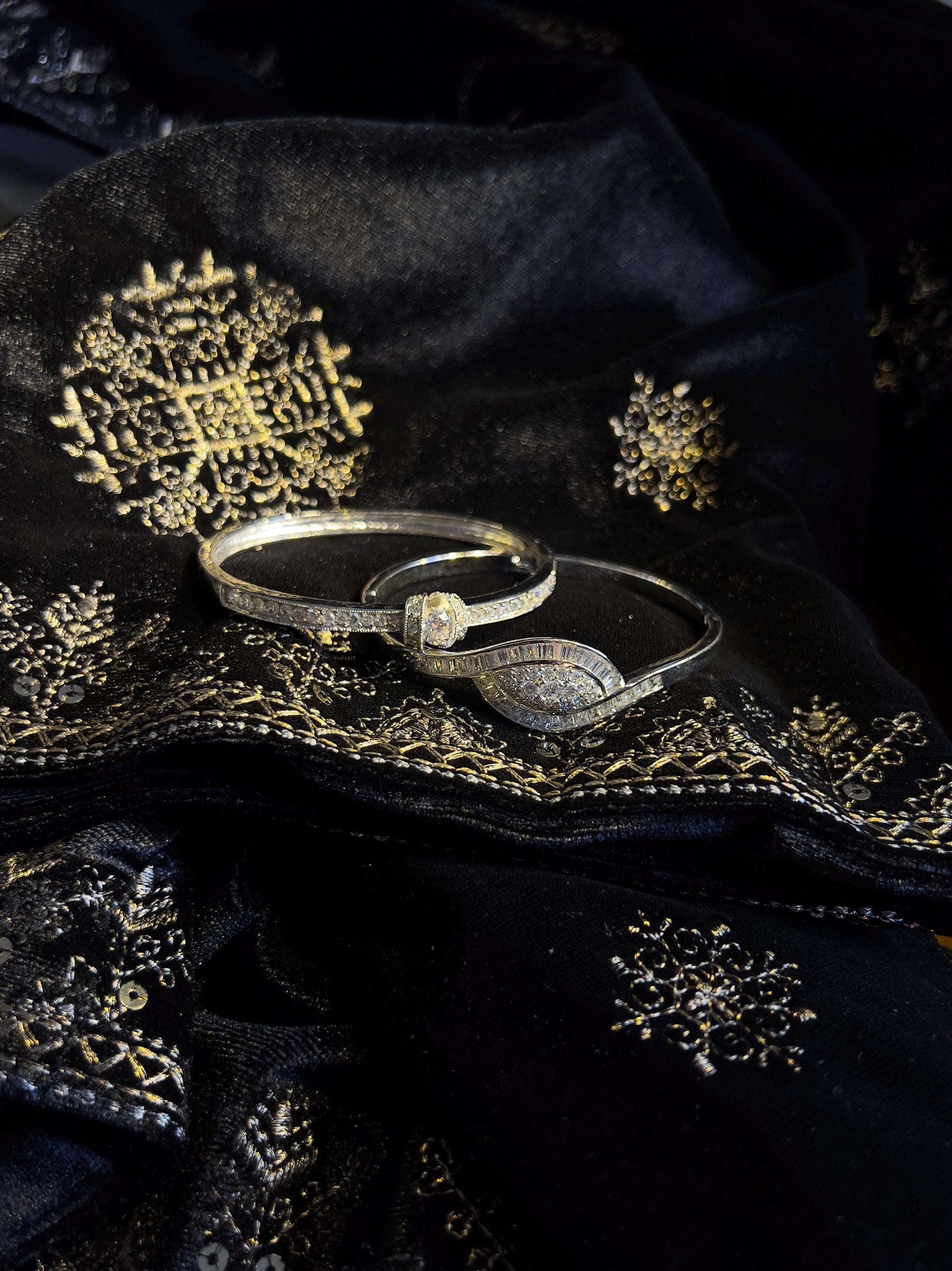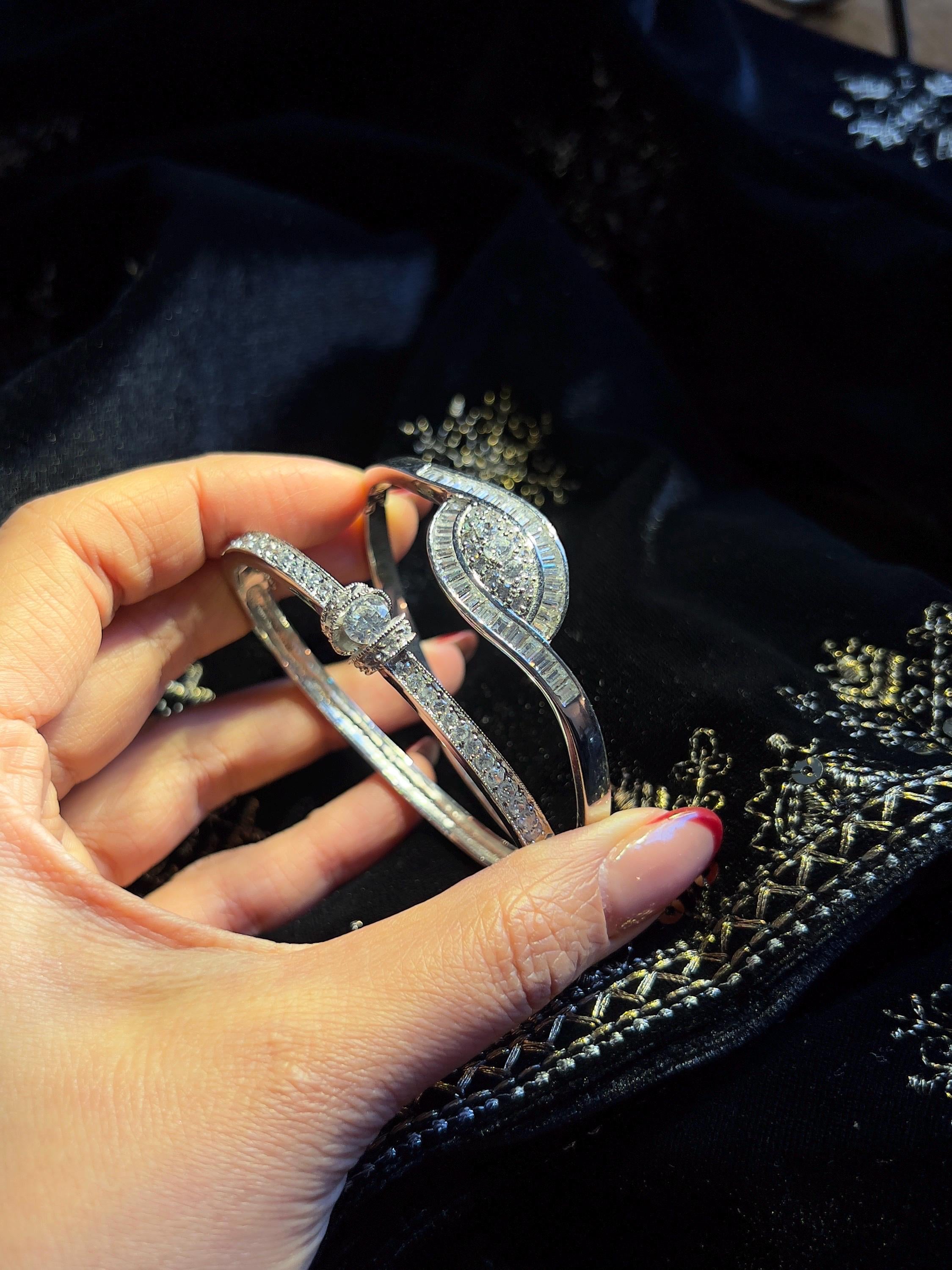 We love how these bangles catch the light—the fire in the Moissanite is so beautiful. They have that perfect vintage touch—elegant, timeless, and just the right amount of sparkle. Wear one for a sleek, effortless look or stack them both for that extra glow. Honestly, they go with everything.