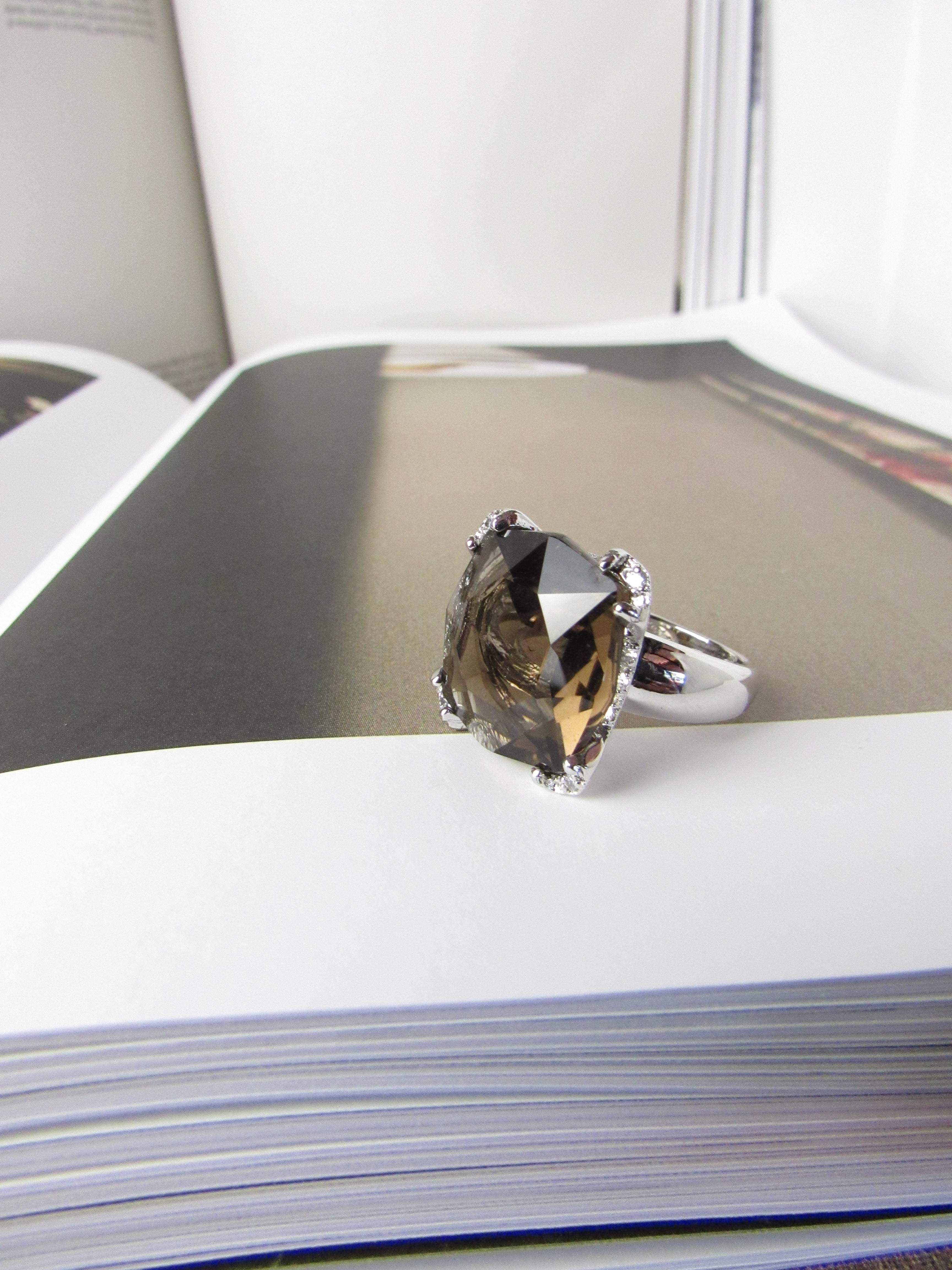 Smoky Quartz Cushion Cut 14 Carat Ring