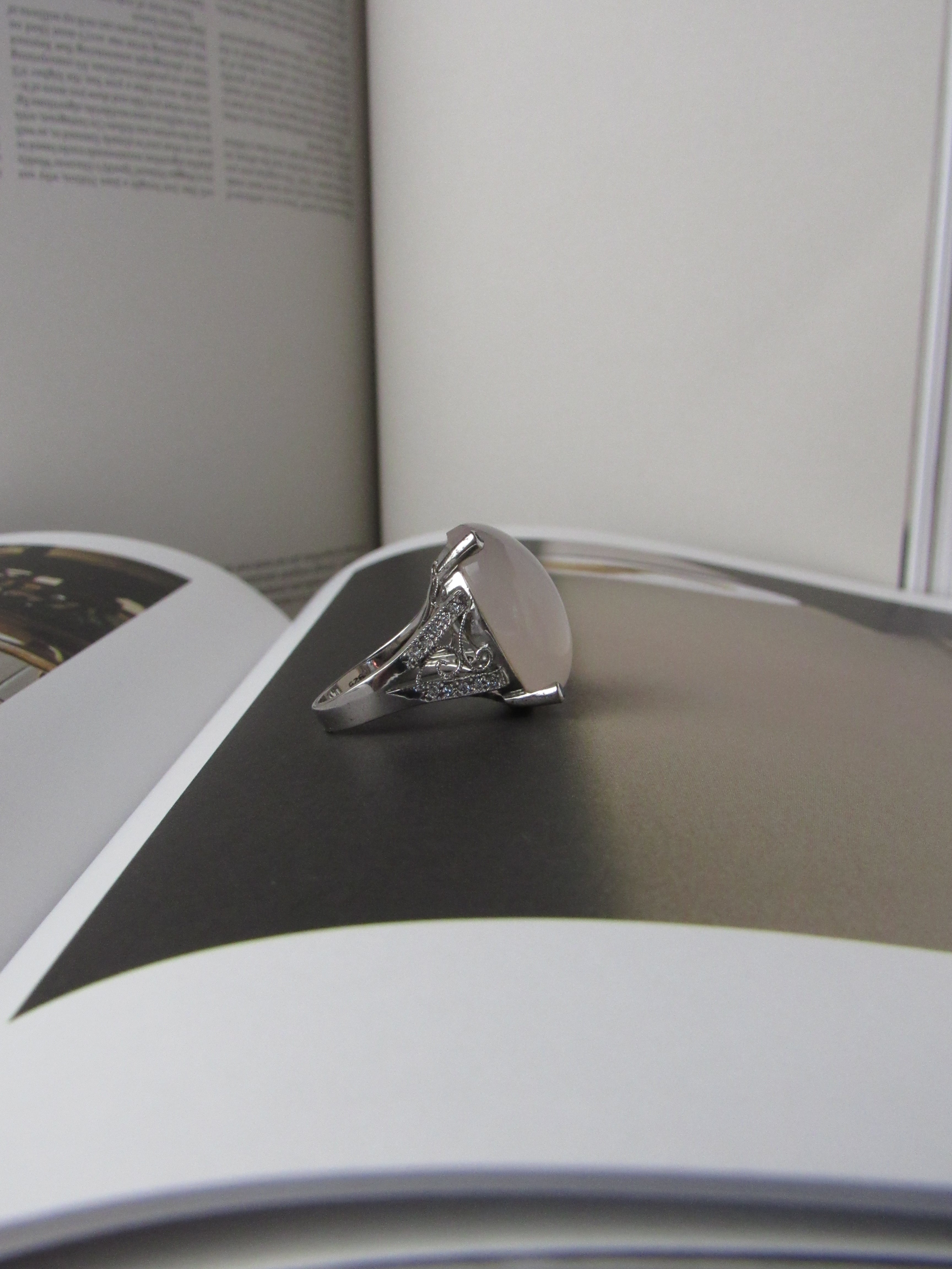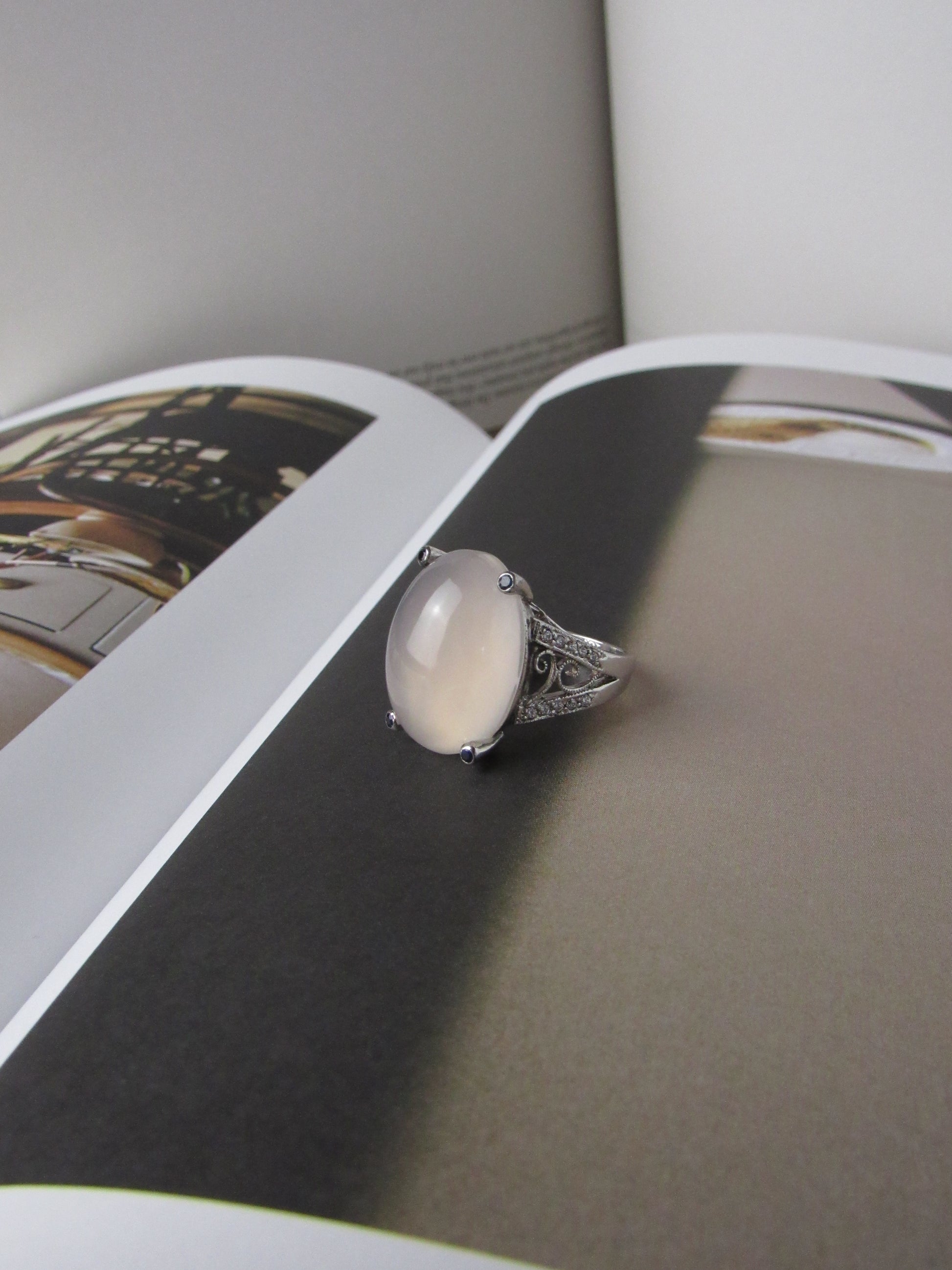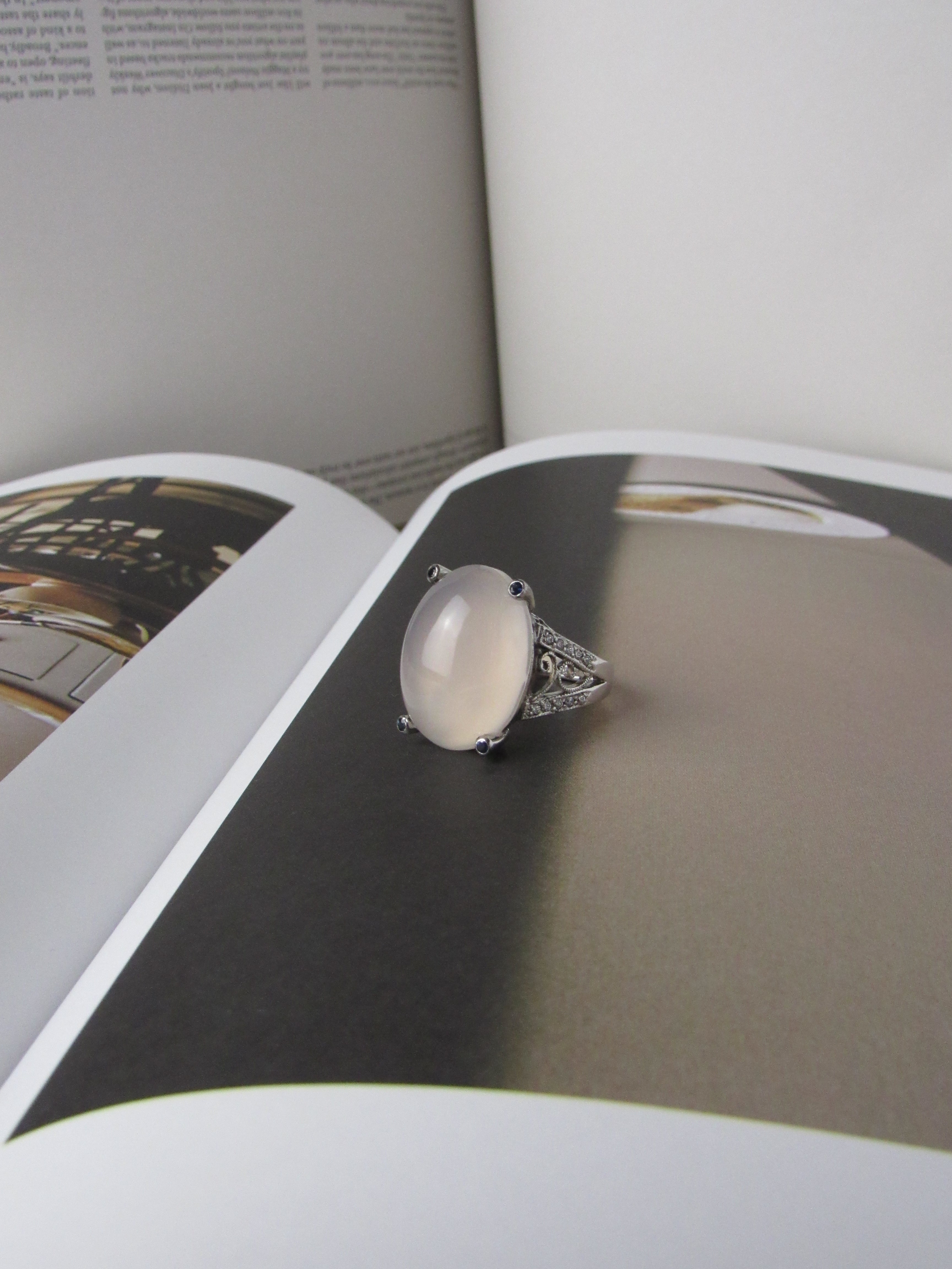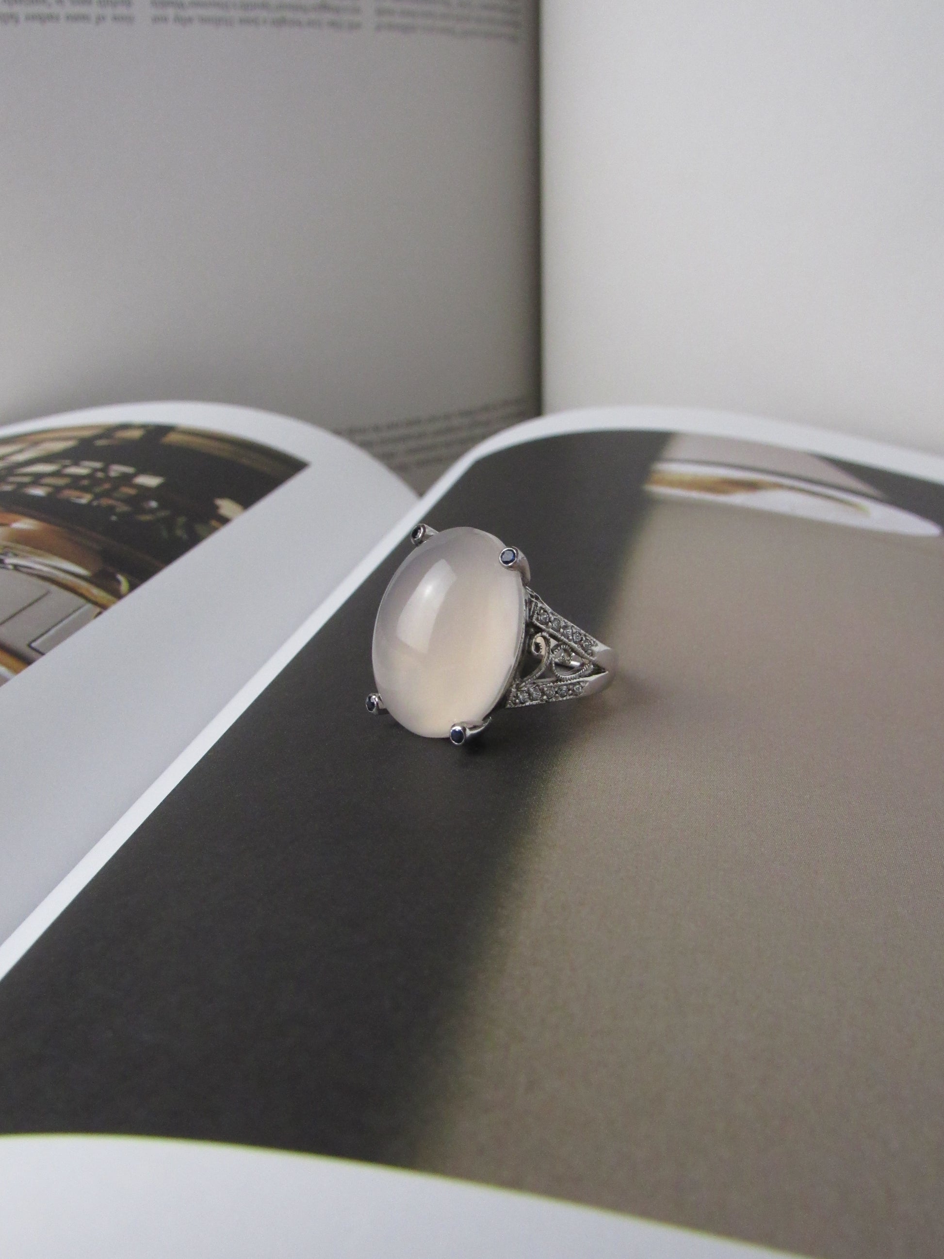 - Natural Cabochon Lavender Chalcedony with accent sapphires