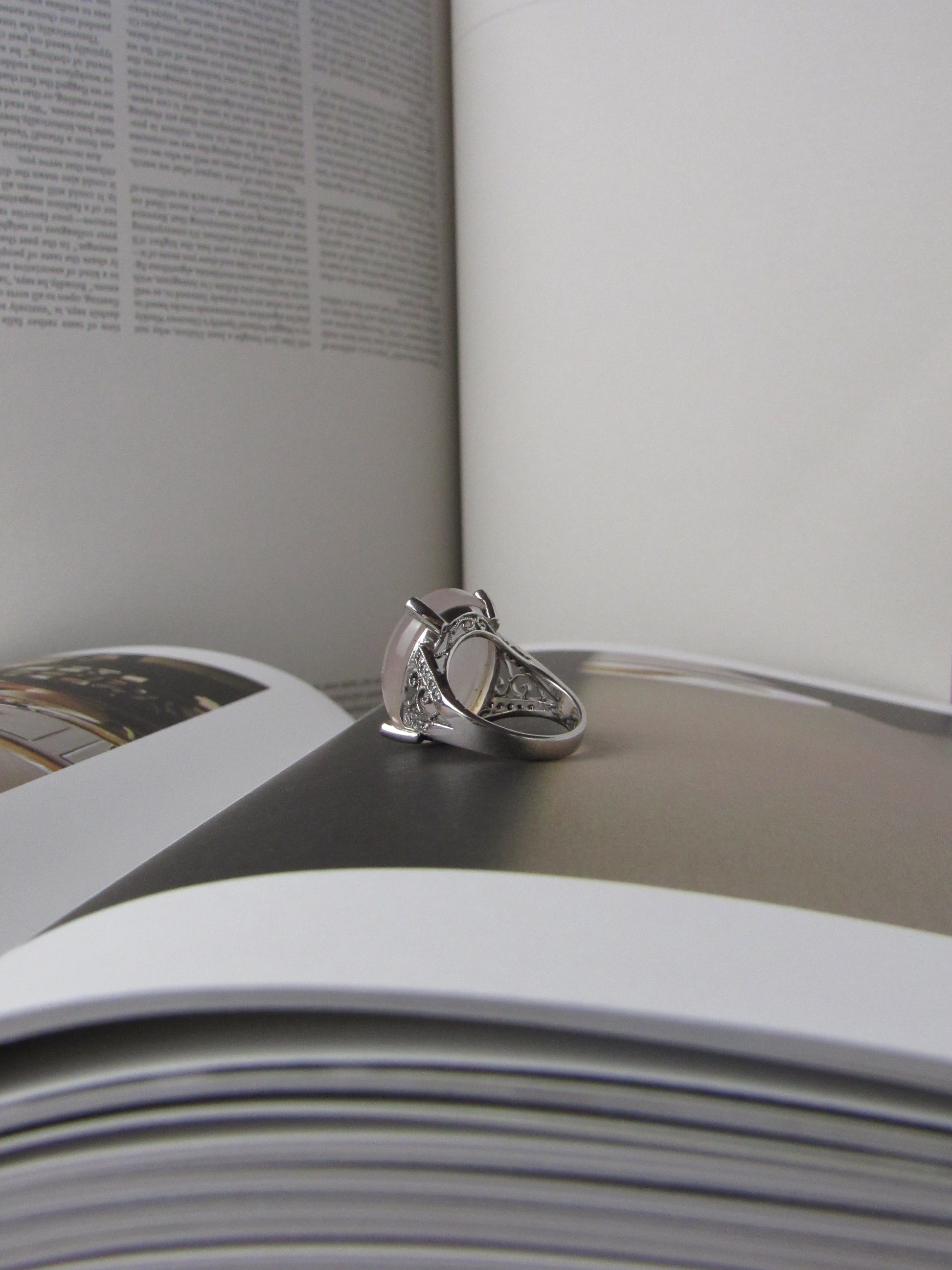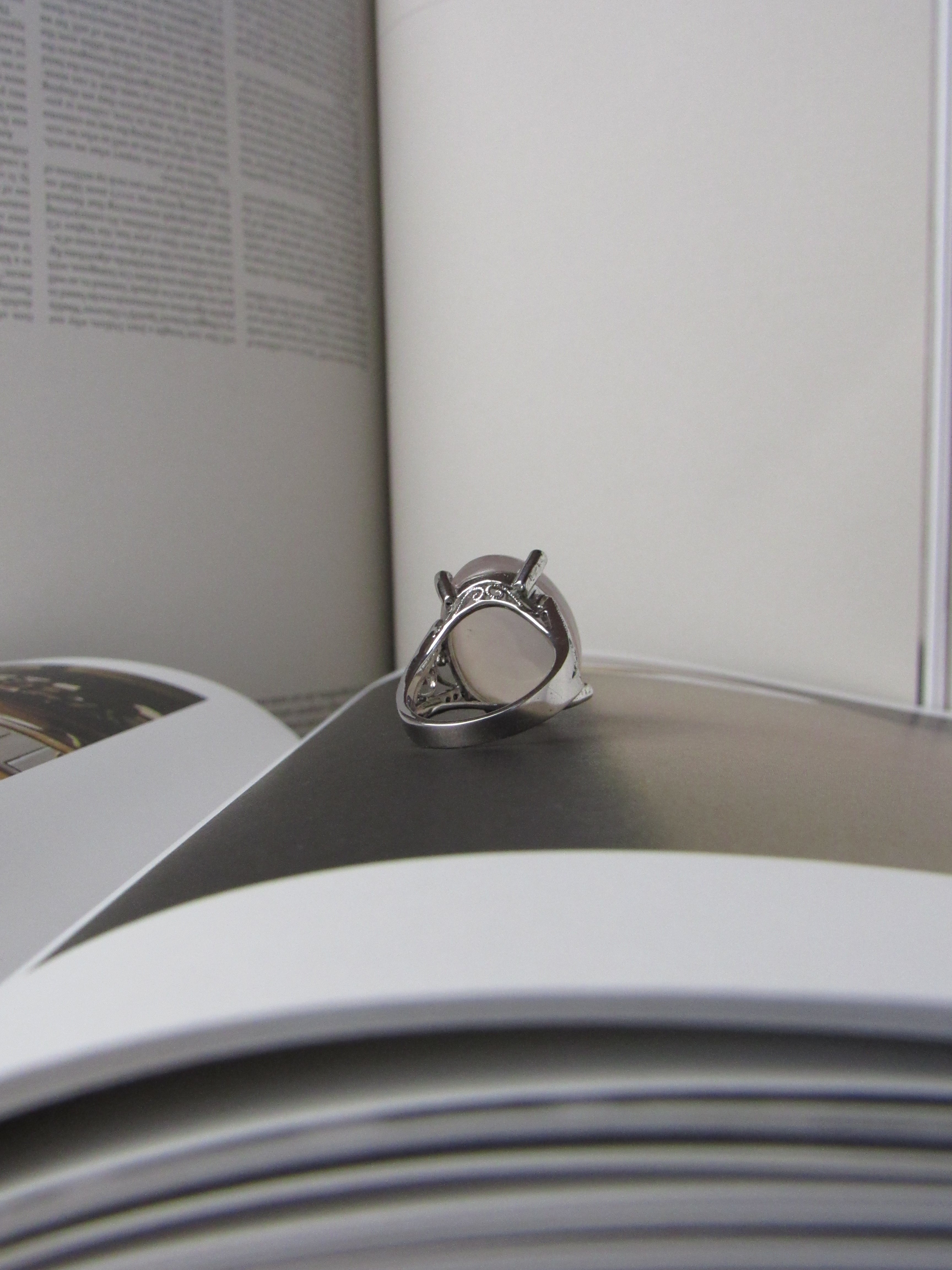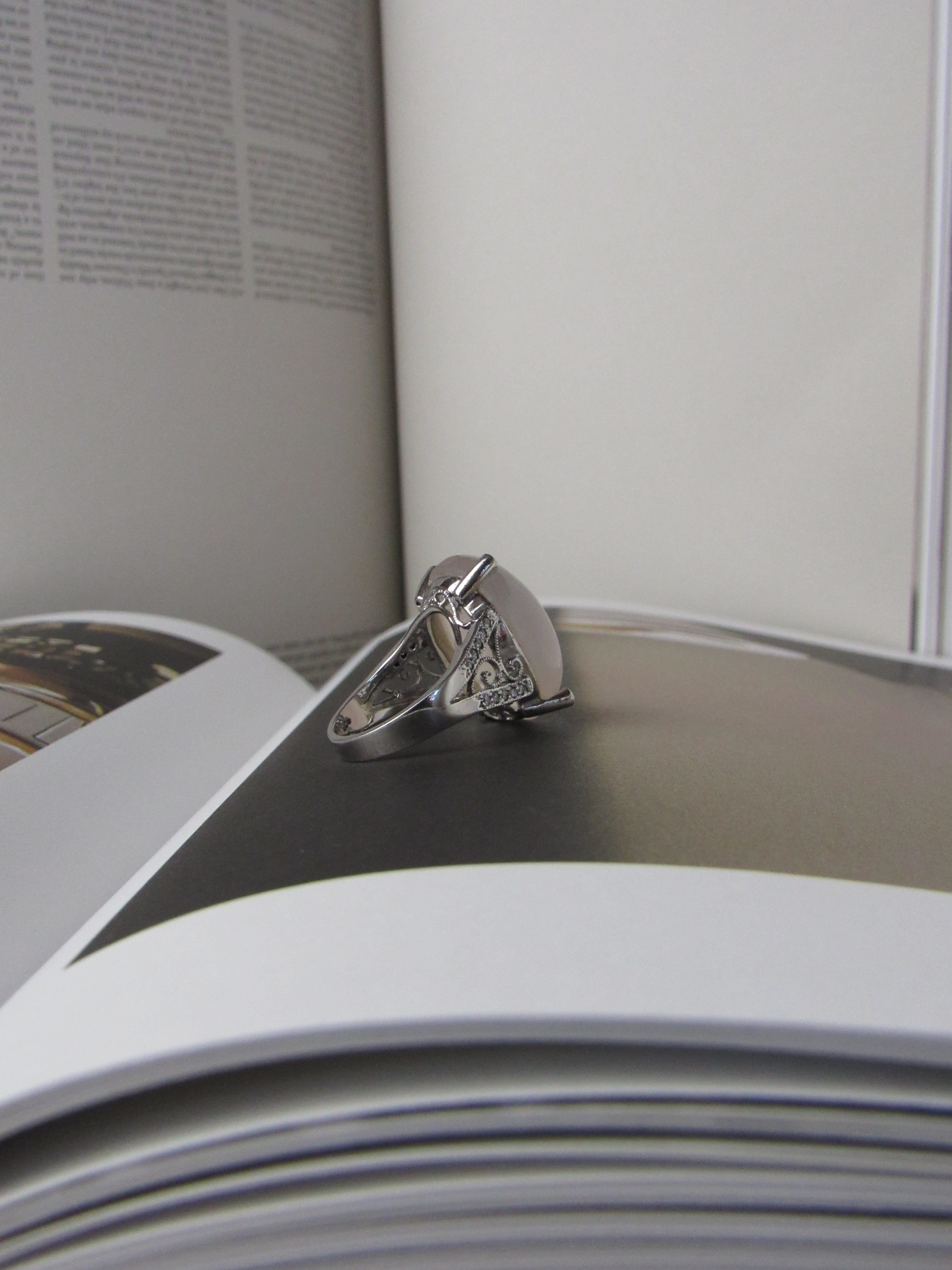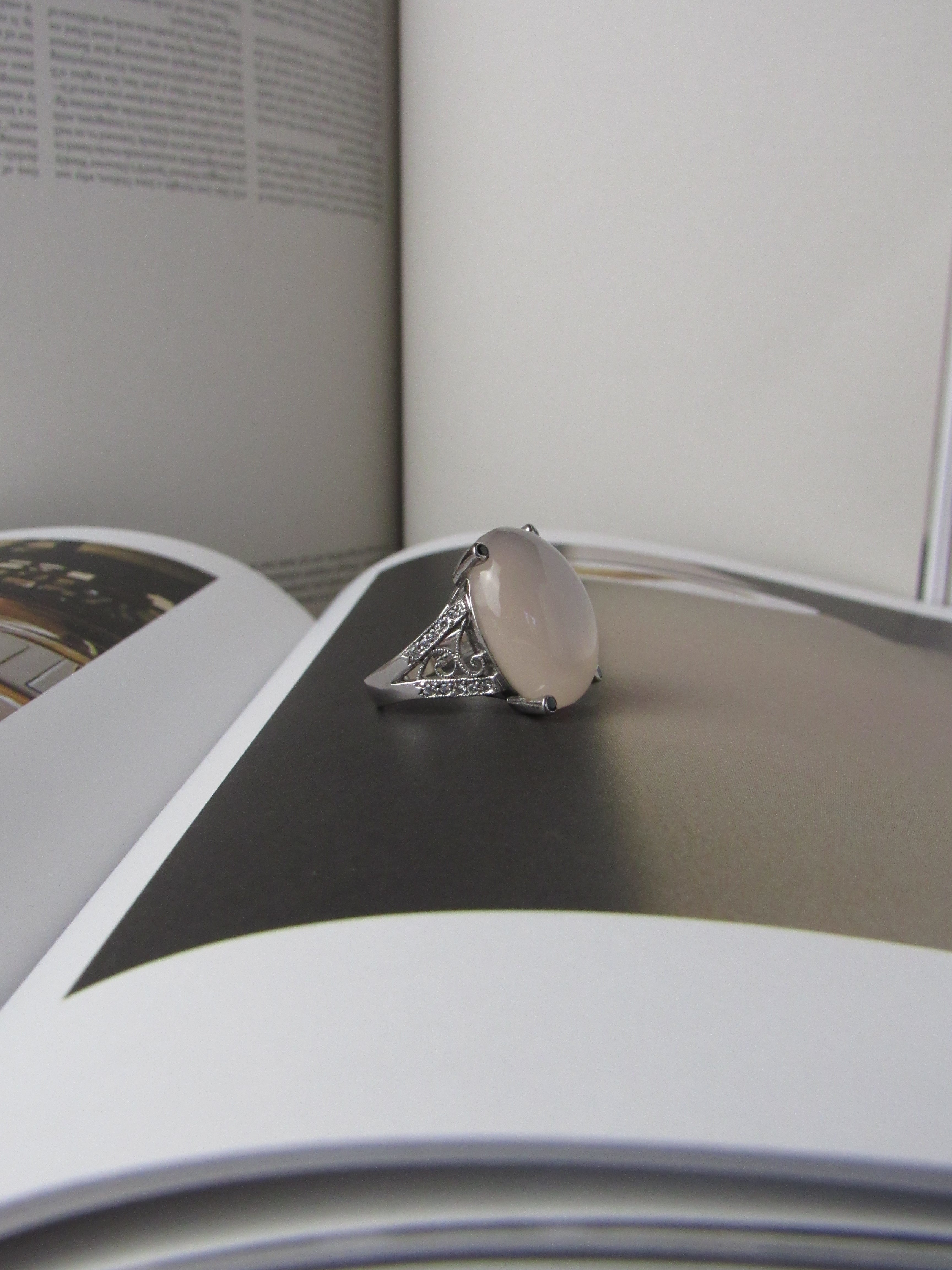 - Natural Cabochon Lavender Chalcedony with accent sapphires
