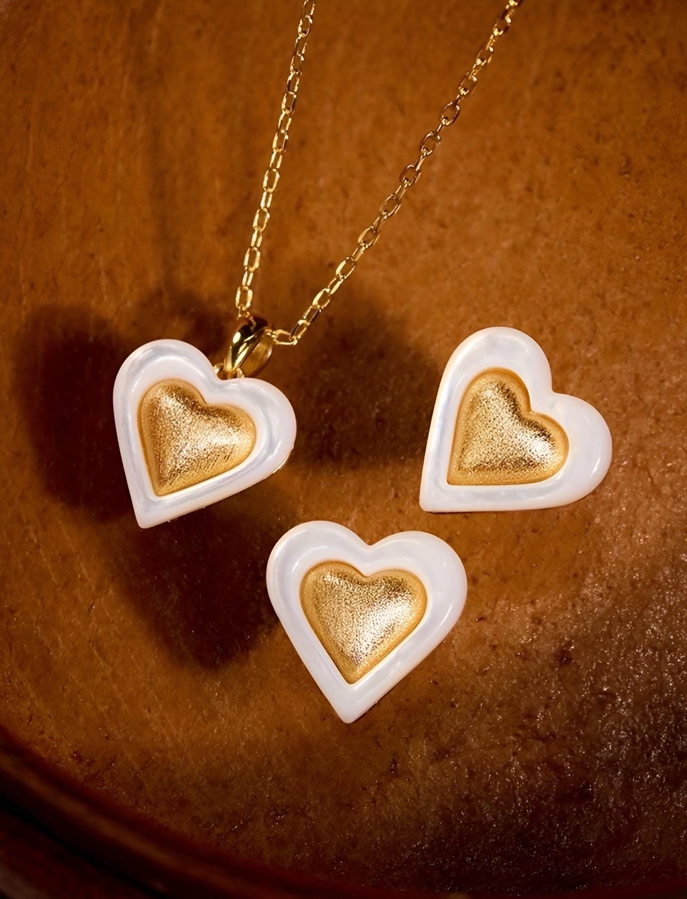 These elegant earrings feature a French-inspired design, combining 18k gold filled heart with brushed techniques with top grade mother of pearl. We adore how the soft, creamy white contrasts with the warm, radiant gold—it’s a bit of everyday opulence with a dash of whimsy. They’re as delightful as they look without the calories! Crafted with precision and attention to detail, the earrings showcase a luxurious and sophisticated aesthetic, perfect for those who appreciate jewelry with a touch of old-world charm. Each piece is crafted with love in small batches, ensuring that you receive something truly special and unique.
